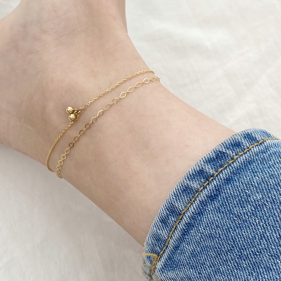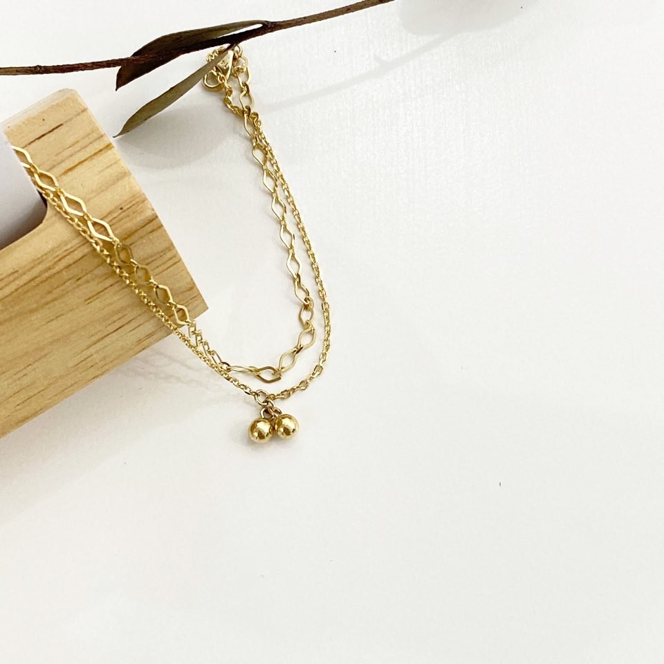 14K 18K 앵두 레이어드 두줄 체인 팔찌 발찌