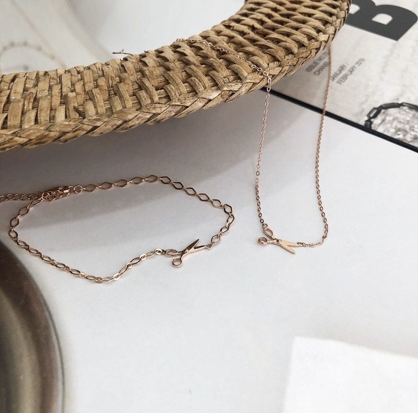 14K 18K 가위 슈가 체인 팔찌 발찌