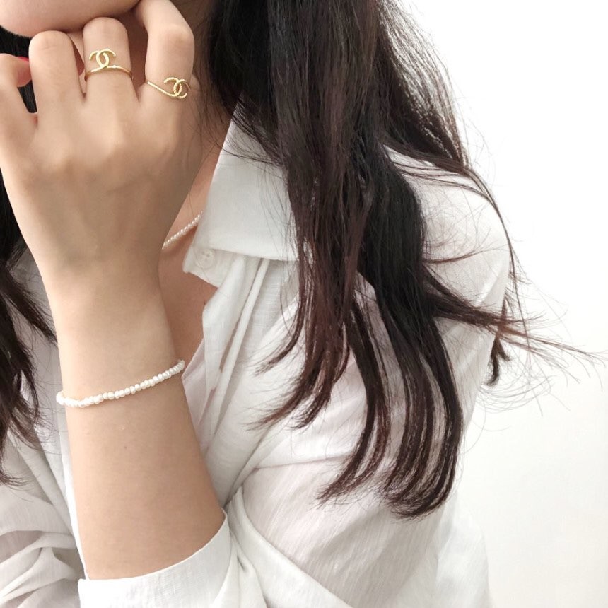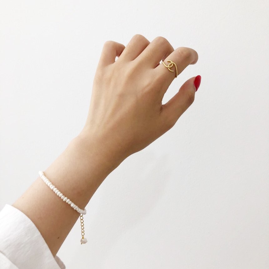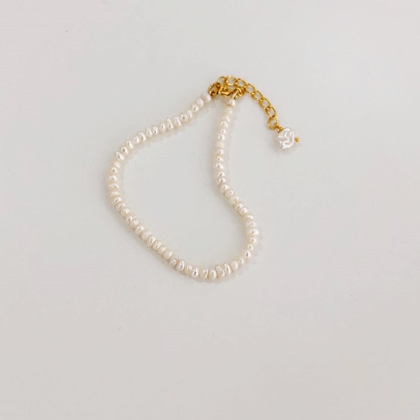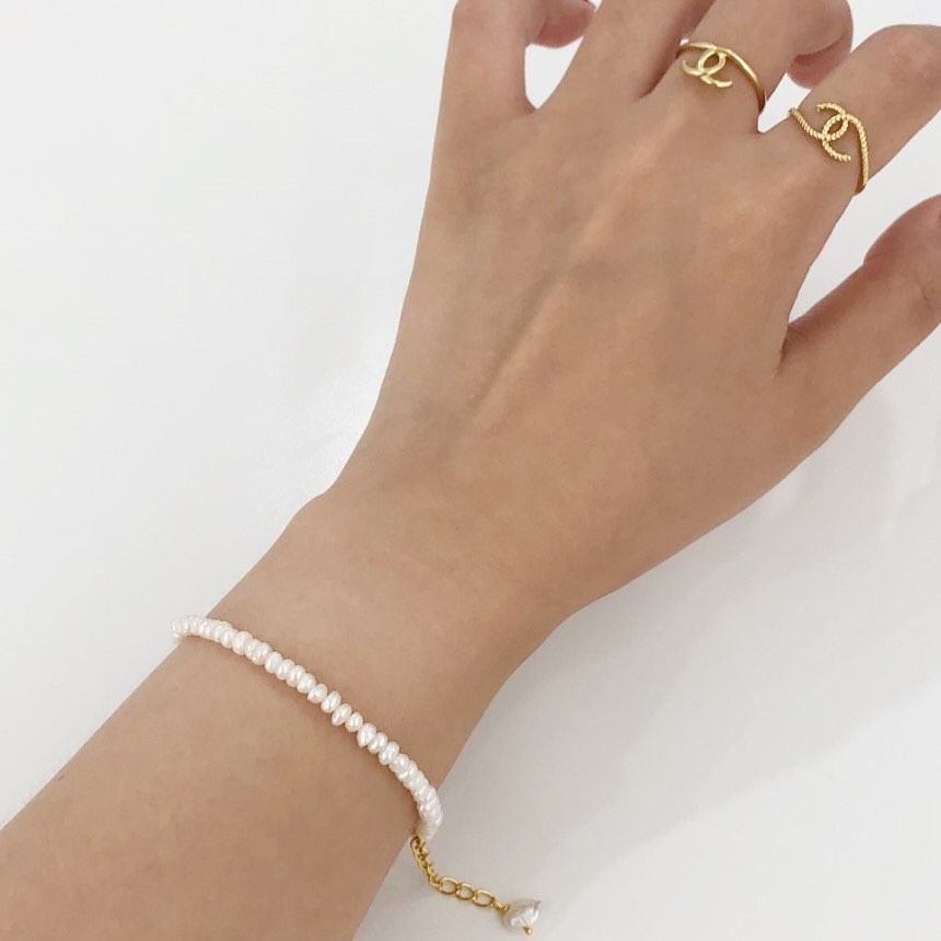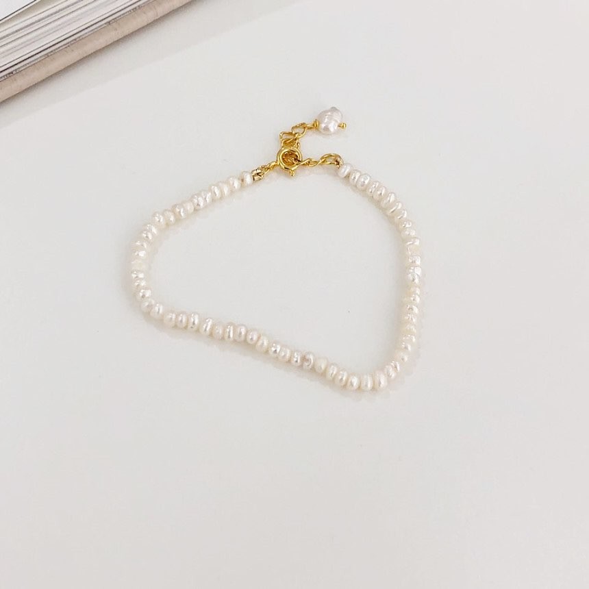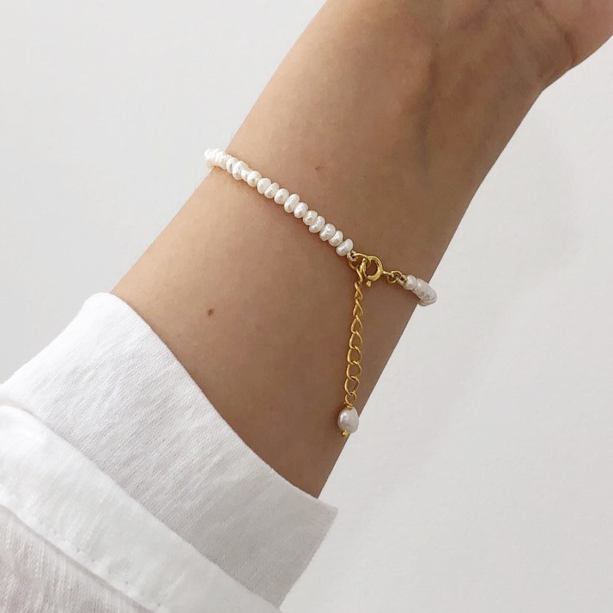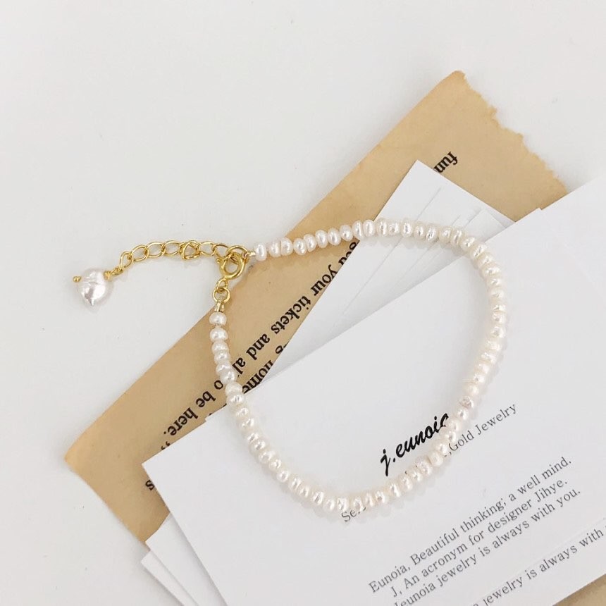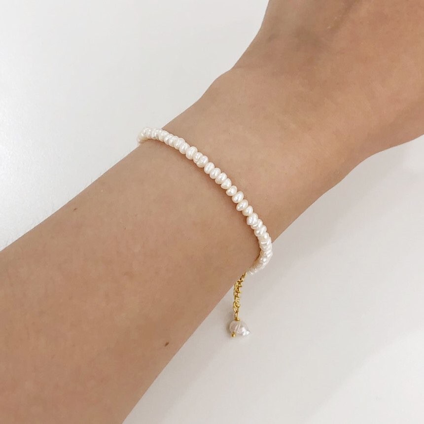 실버 슬림 바로크 담수 진주 비드 팔찌