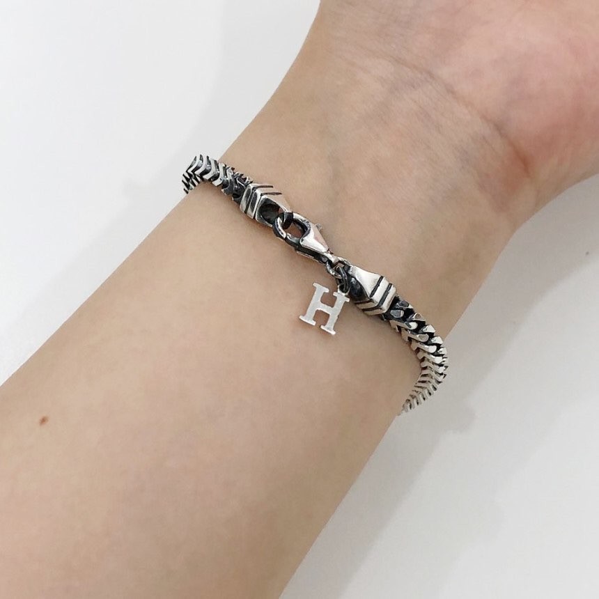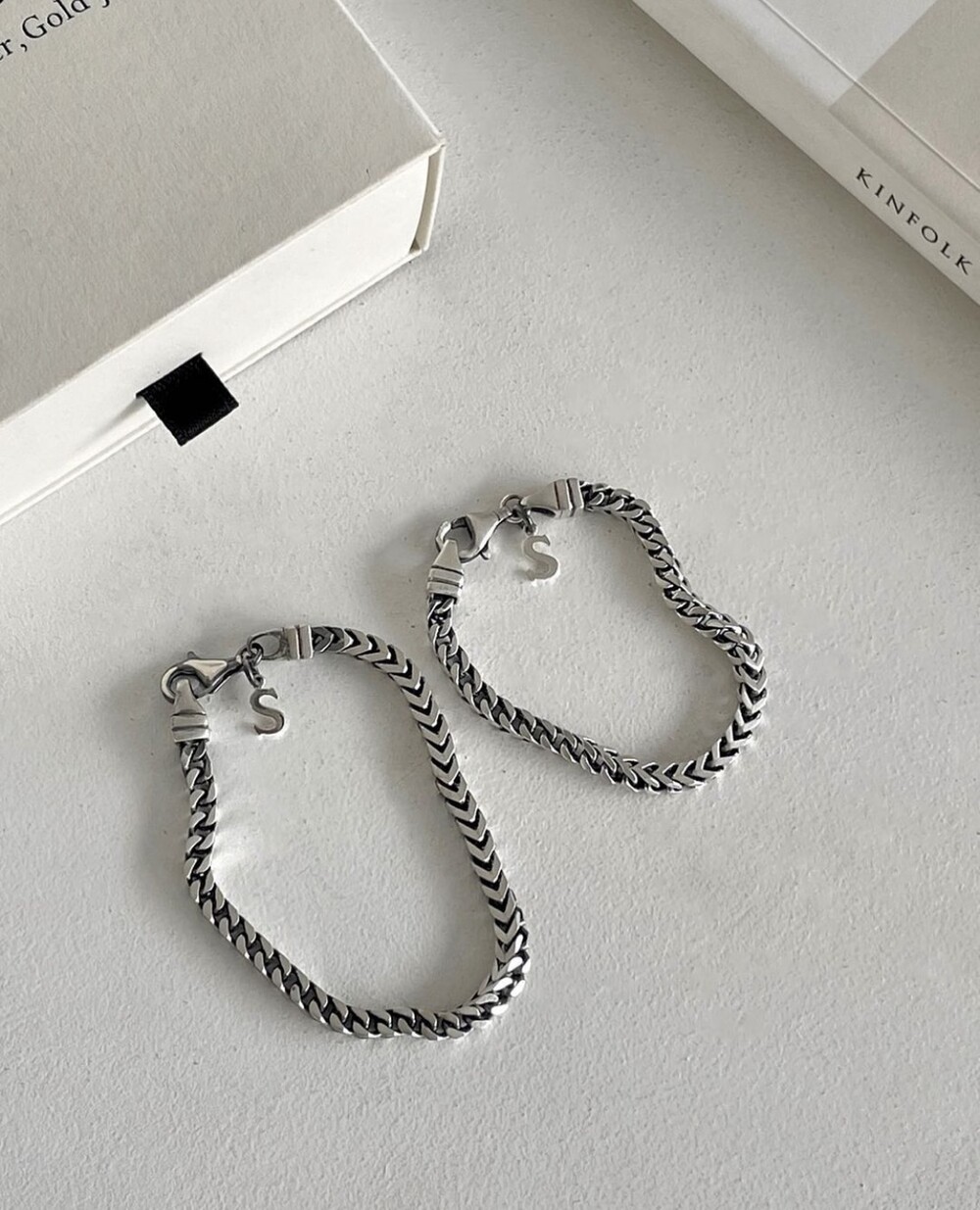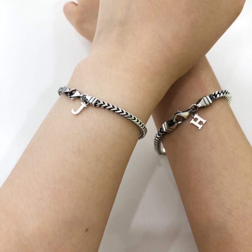 실버 라지 트위스트 유화 체인 이니셜 커플 우정 팔찌 발찌