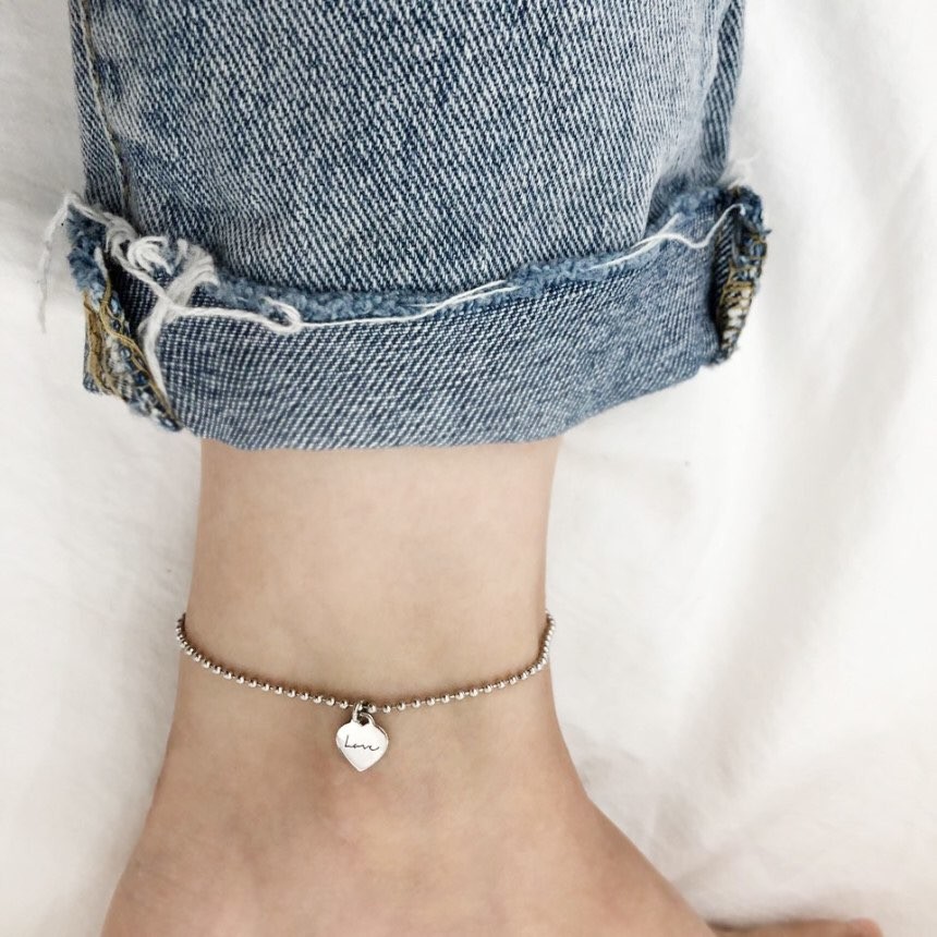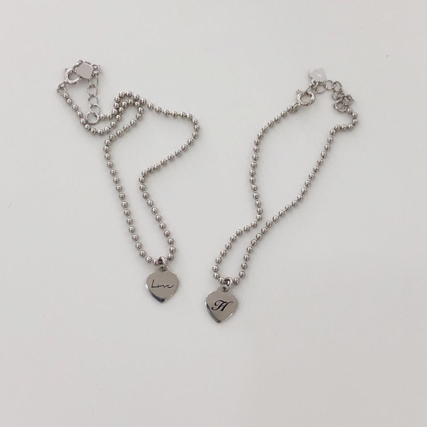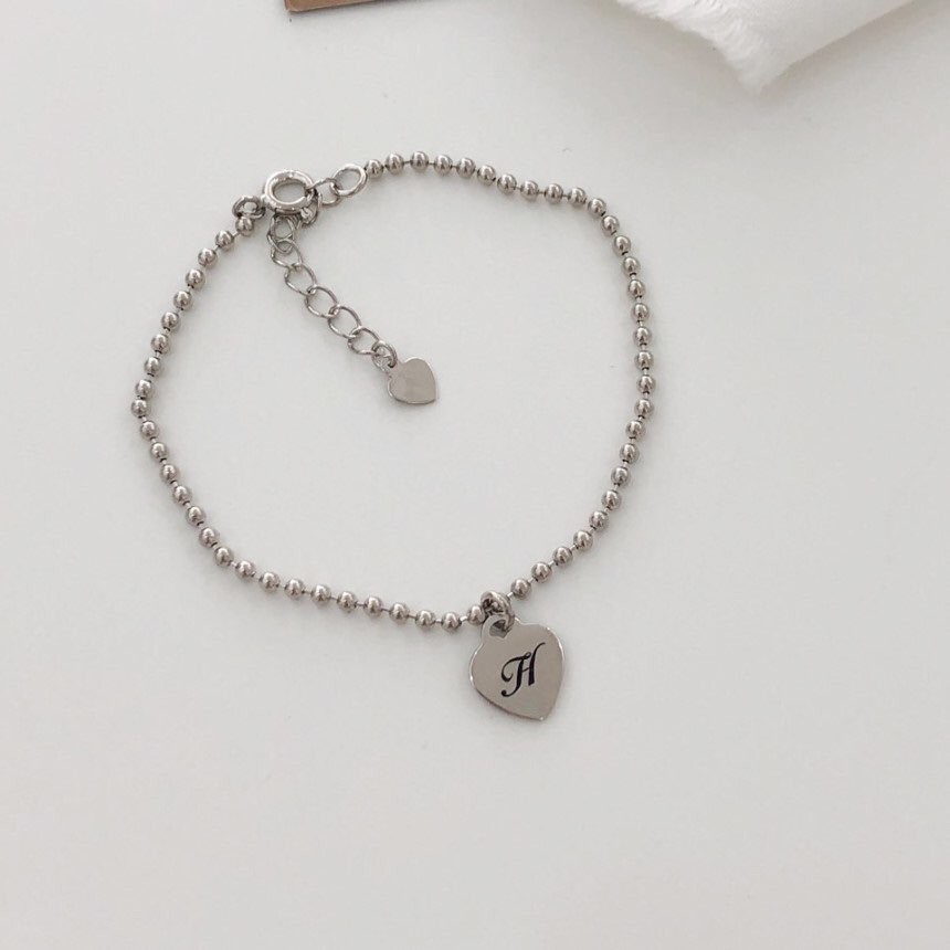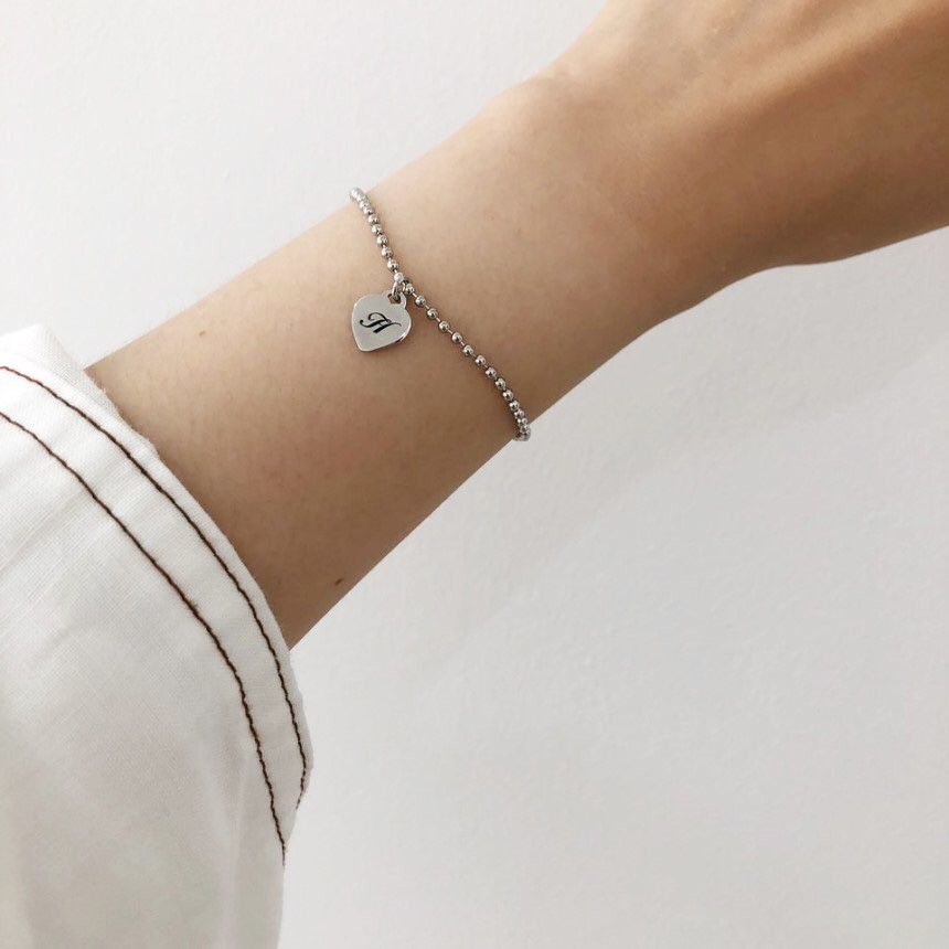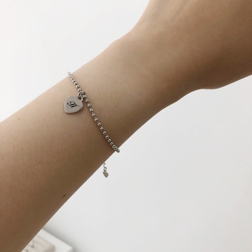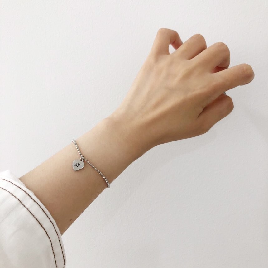 실버 2mm 러브 이니셜 각인 볼 팔찌 발찌