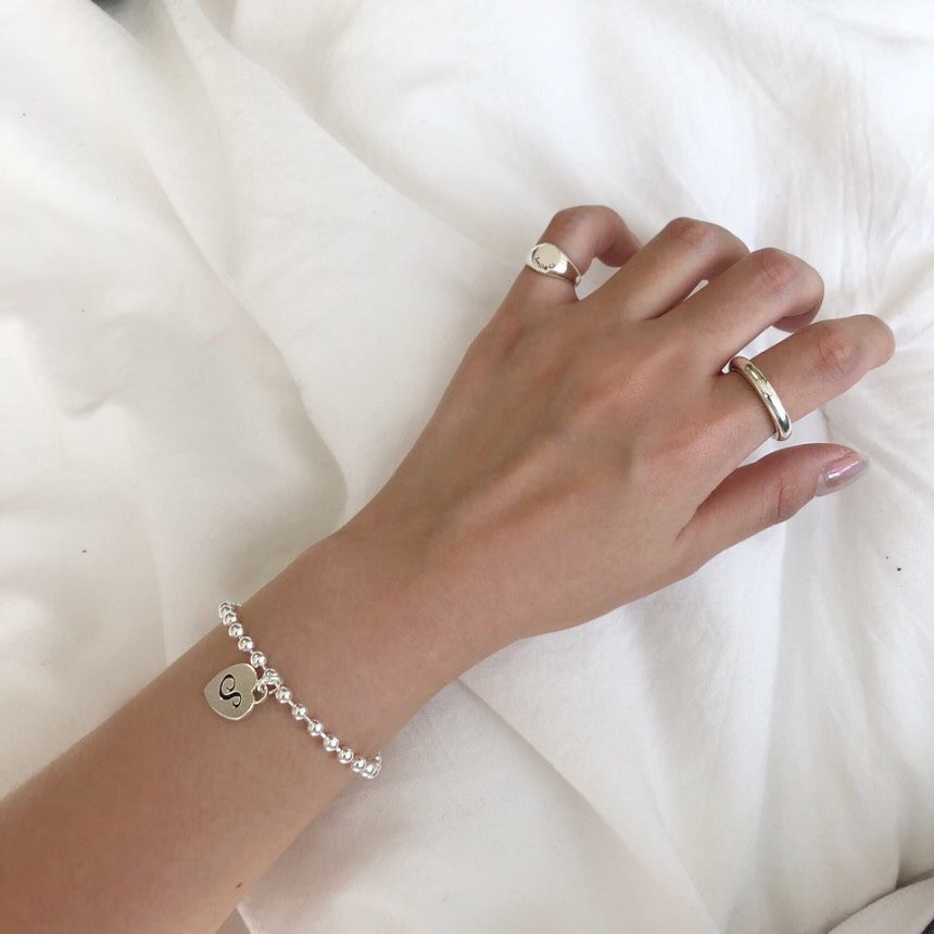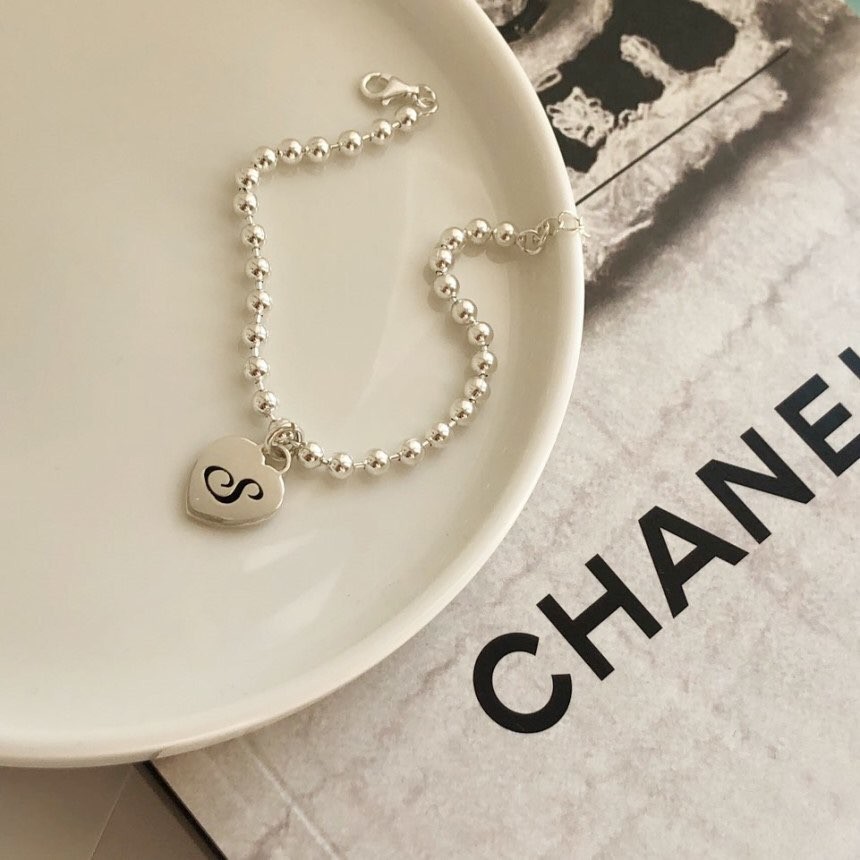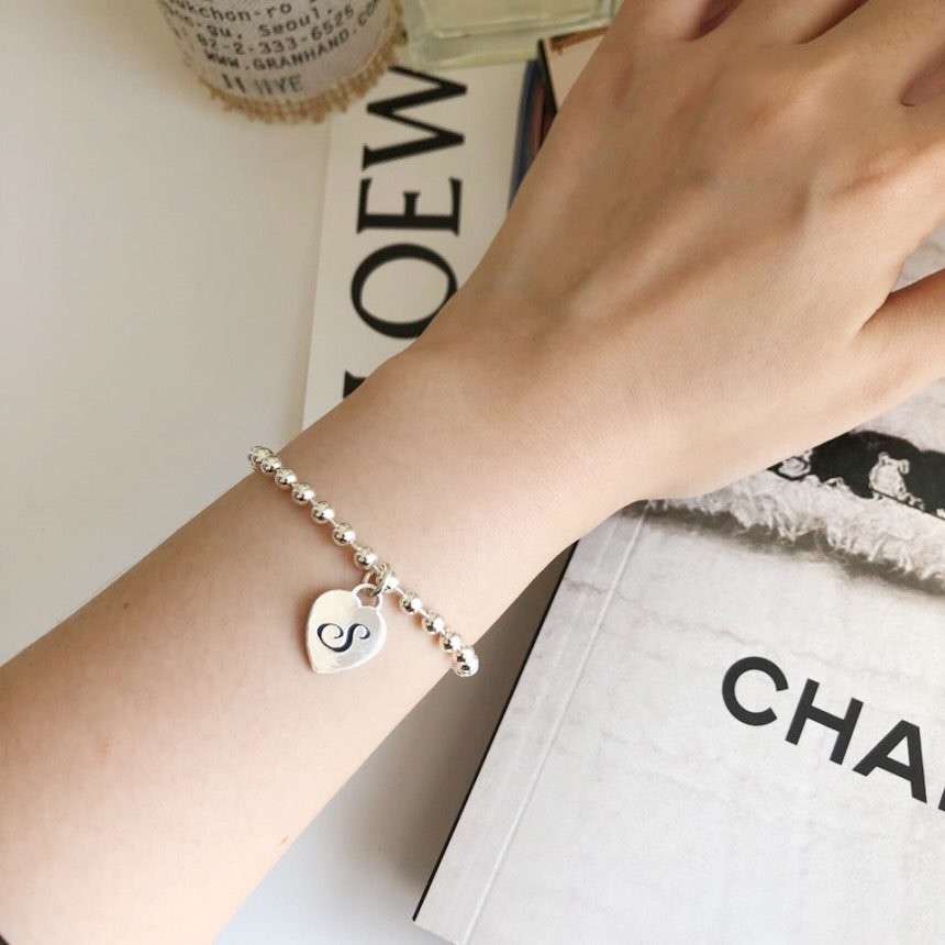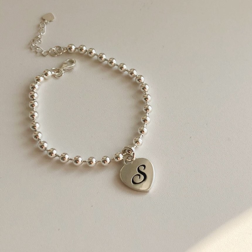 실버 4mm 하트 이니셜 각인 레터링 볼 팔찌