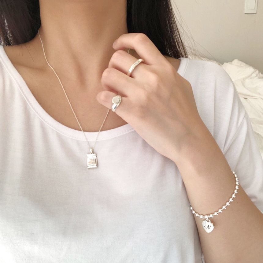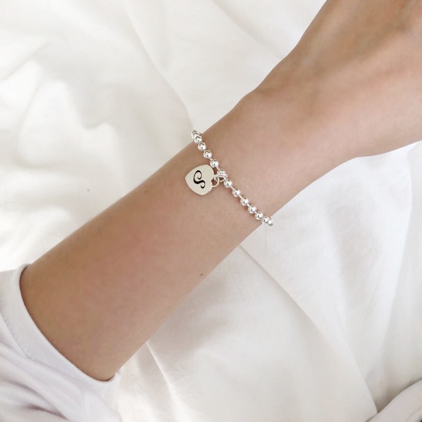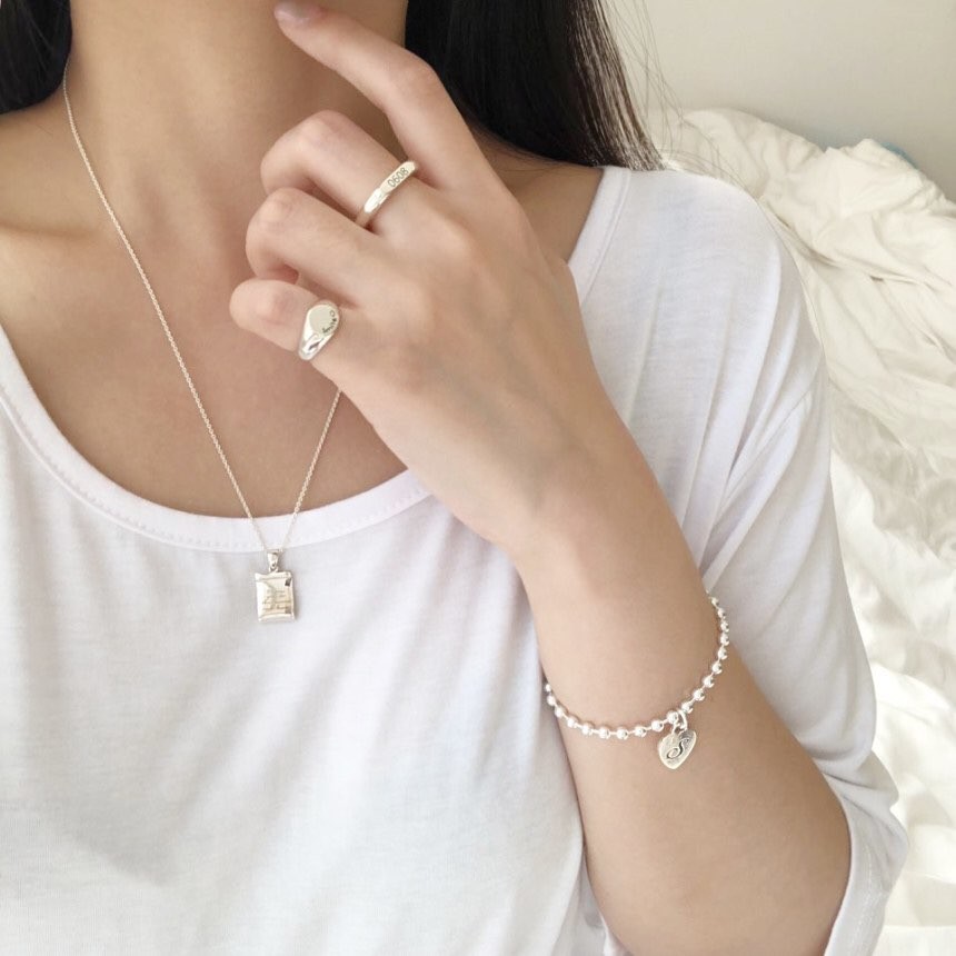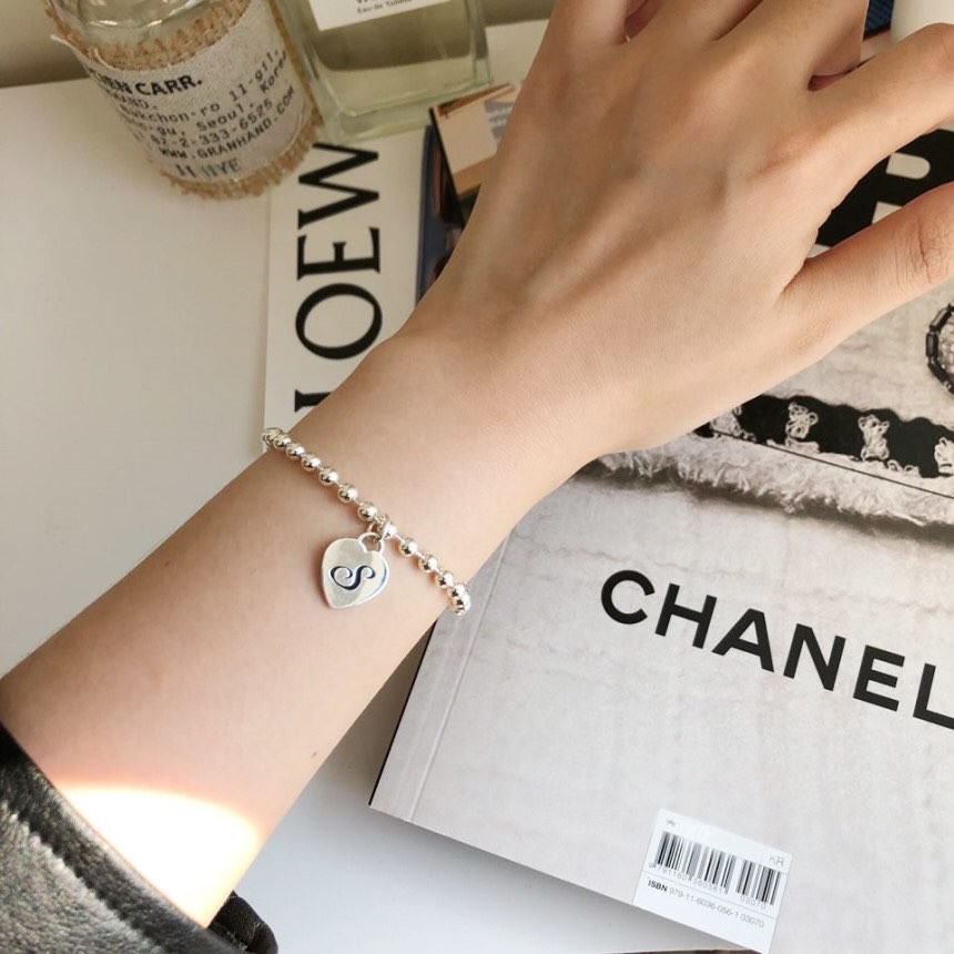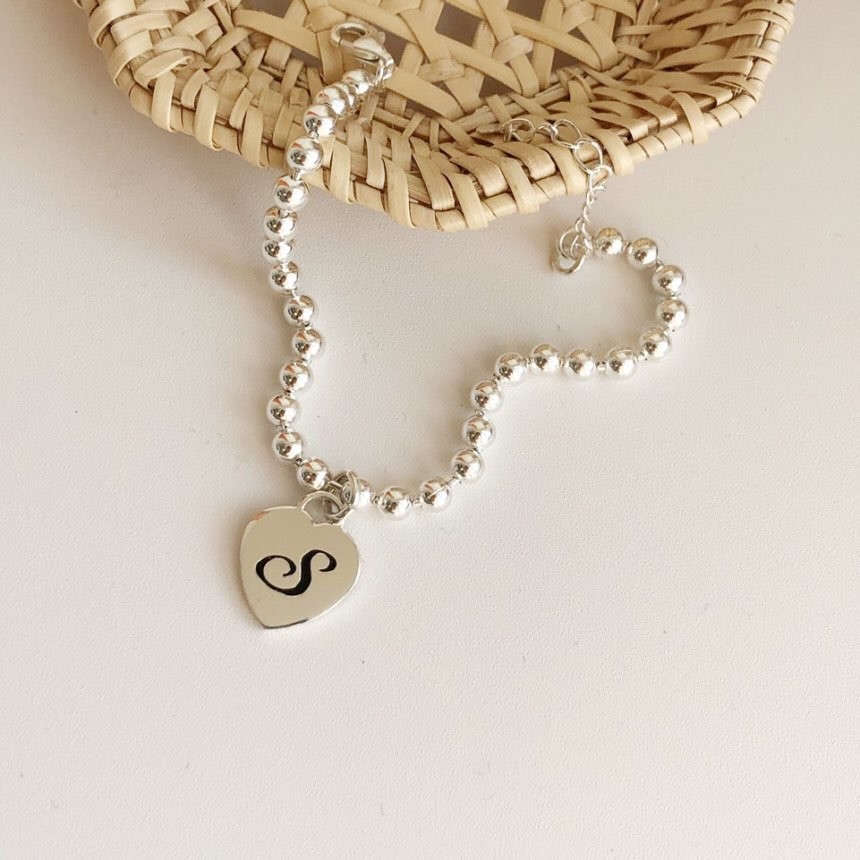 실버 4mm 하트 이니셜 각인 레터링 볼 팔찌