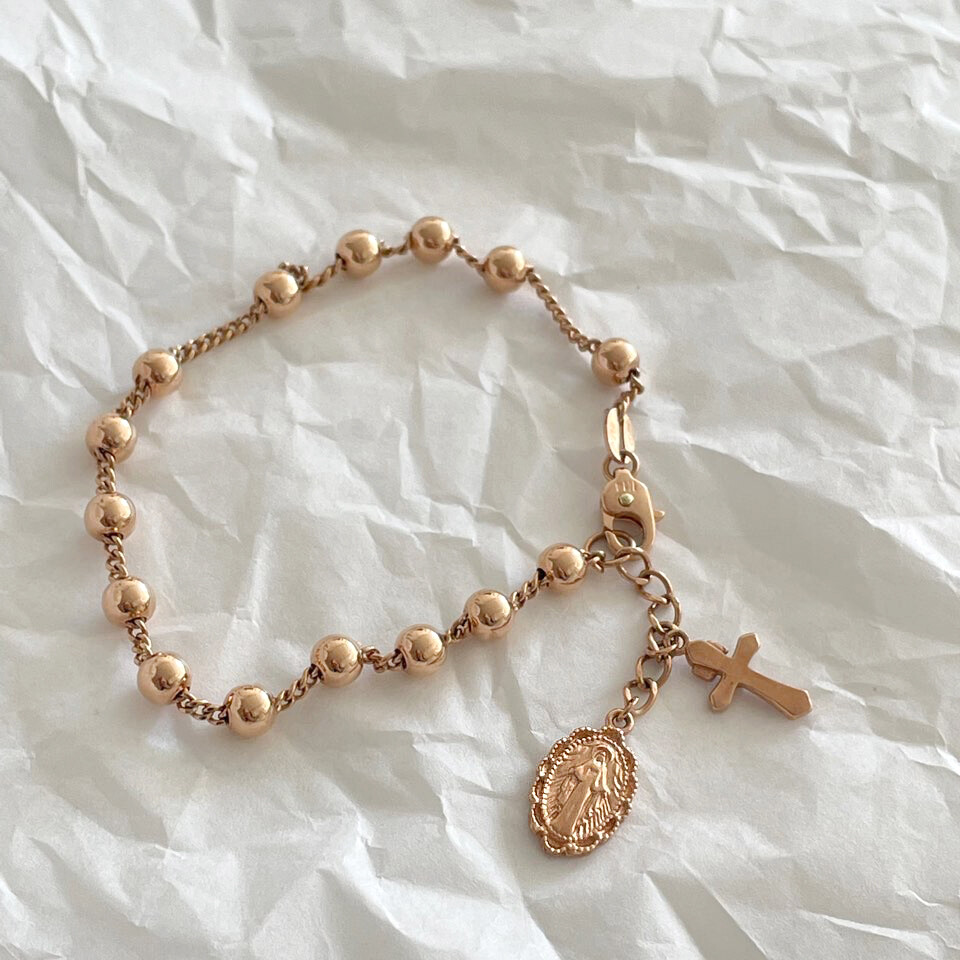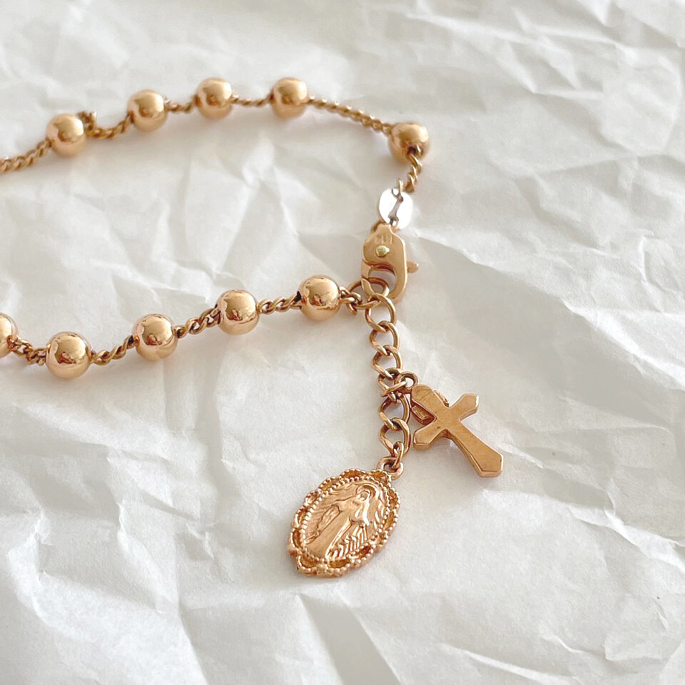 14K 18K 천주교 교회 종교 십자가 묵주 볼 팔찌
