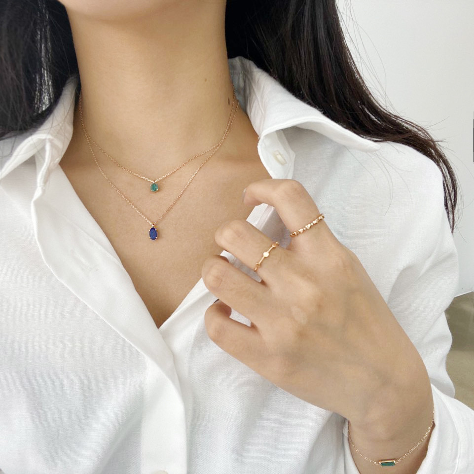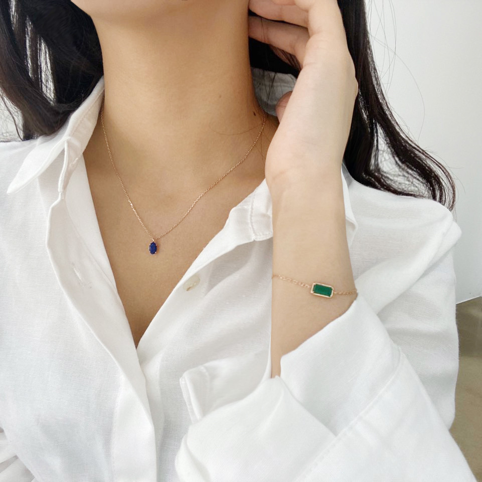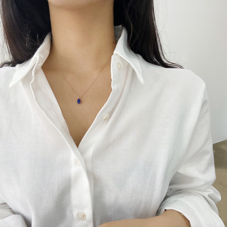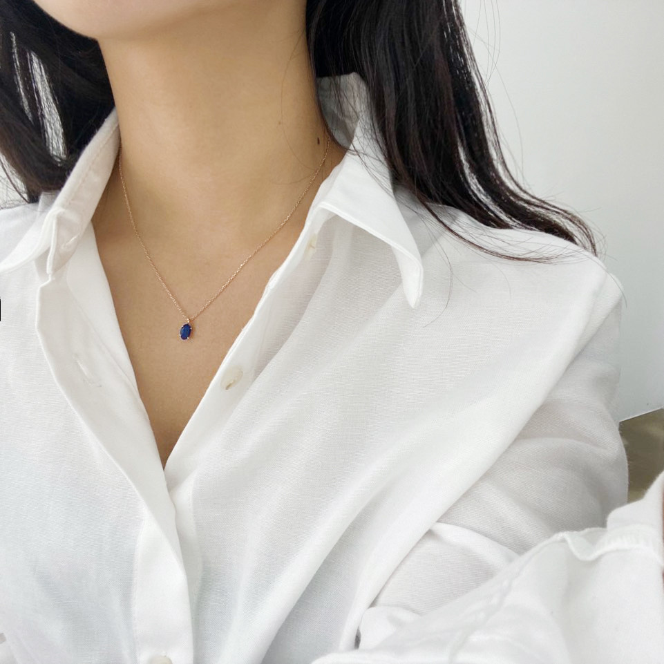 14K 18K 오벌 라피스라줄리 원석 목걸이
