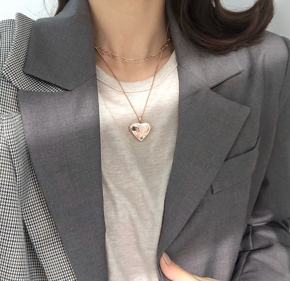 하트 앨범 이니셜 각인 체인 목걸이와 함께