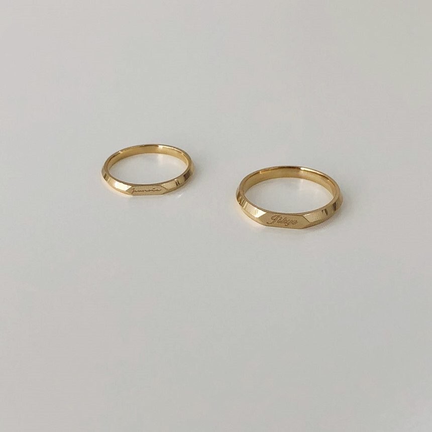 14K 18K 라지 코너 이니셜 각인 스탬프 링 반지