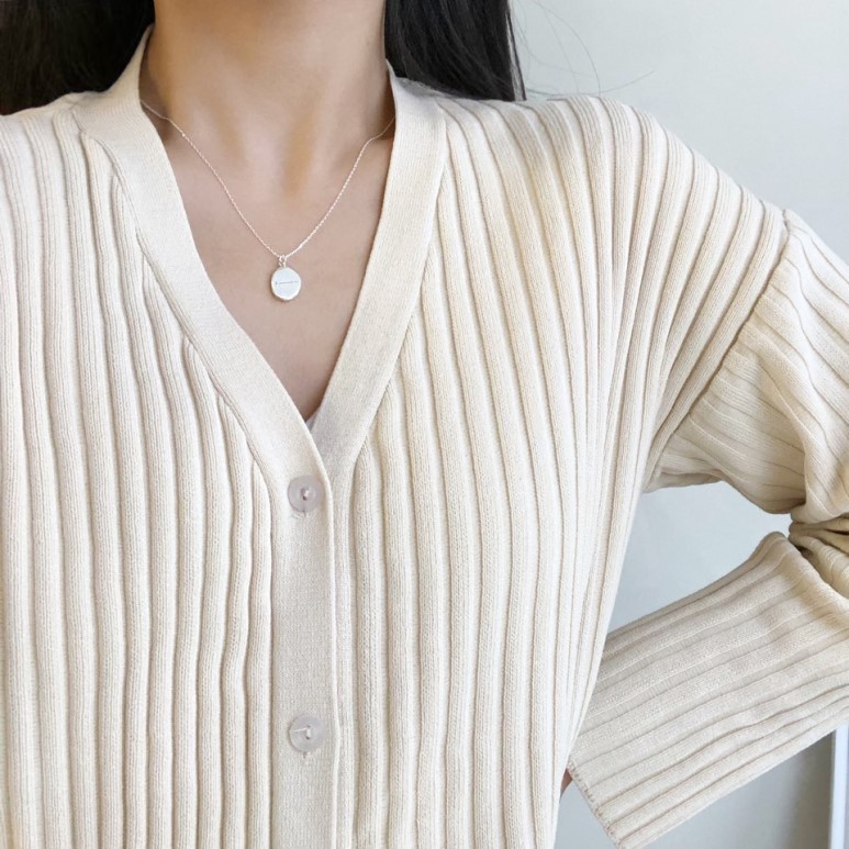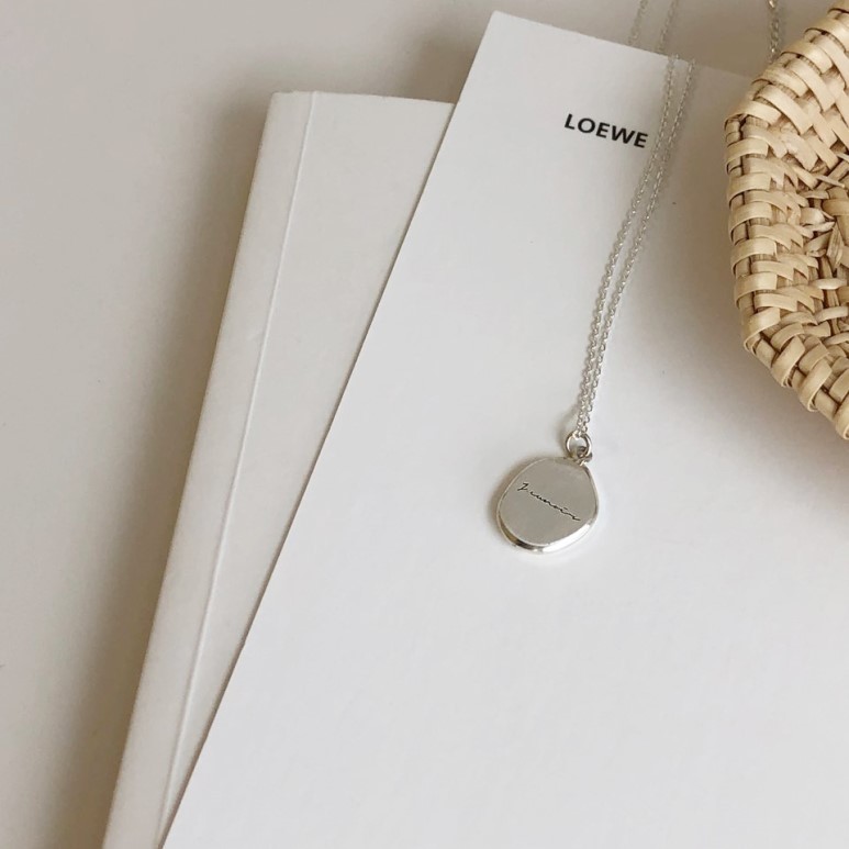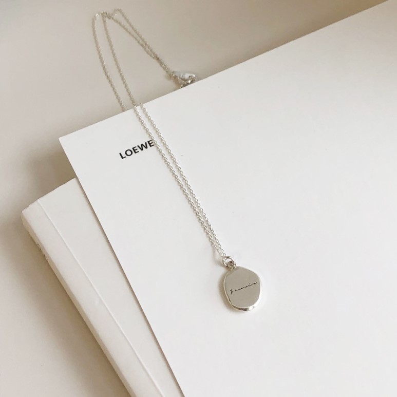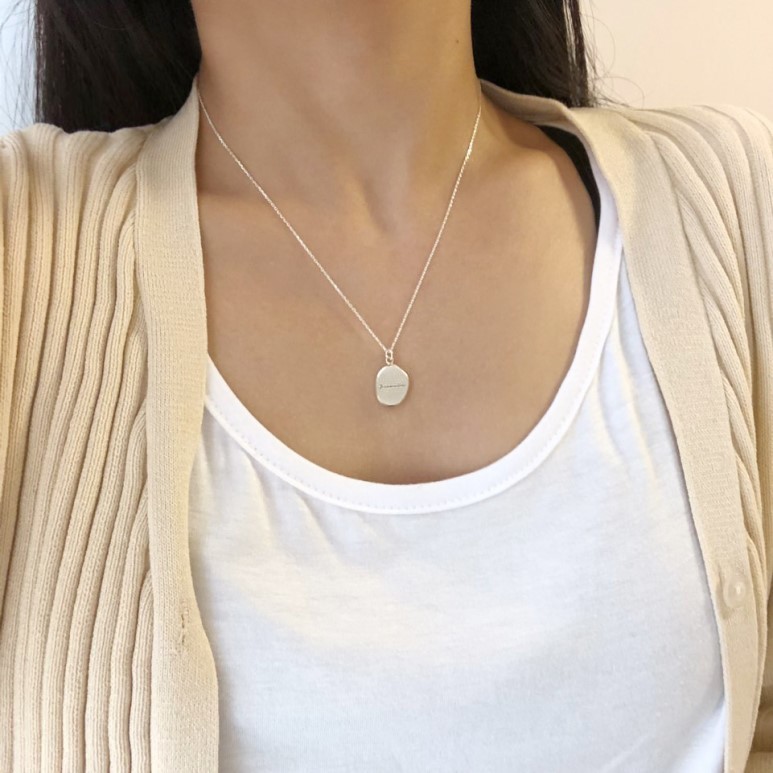 실버 조약돌 이니셜 각인 코인 체인 목걸이