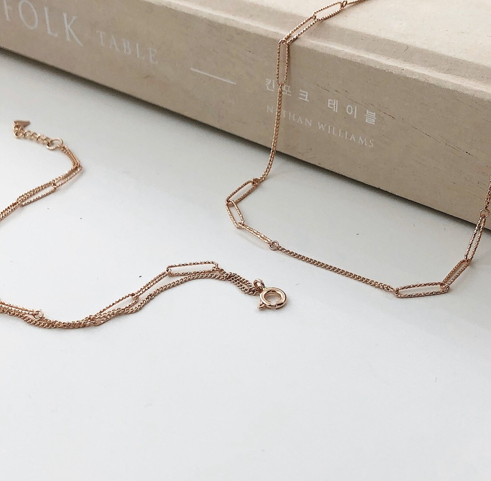 민줄 체인을 레이어드하여 무난하게 오래 착용할 수 있는 제품이랍니다 :)