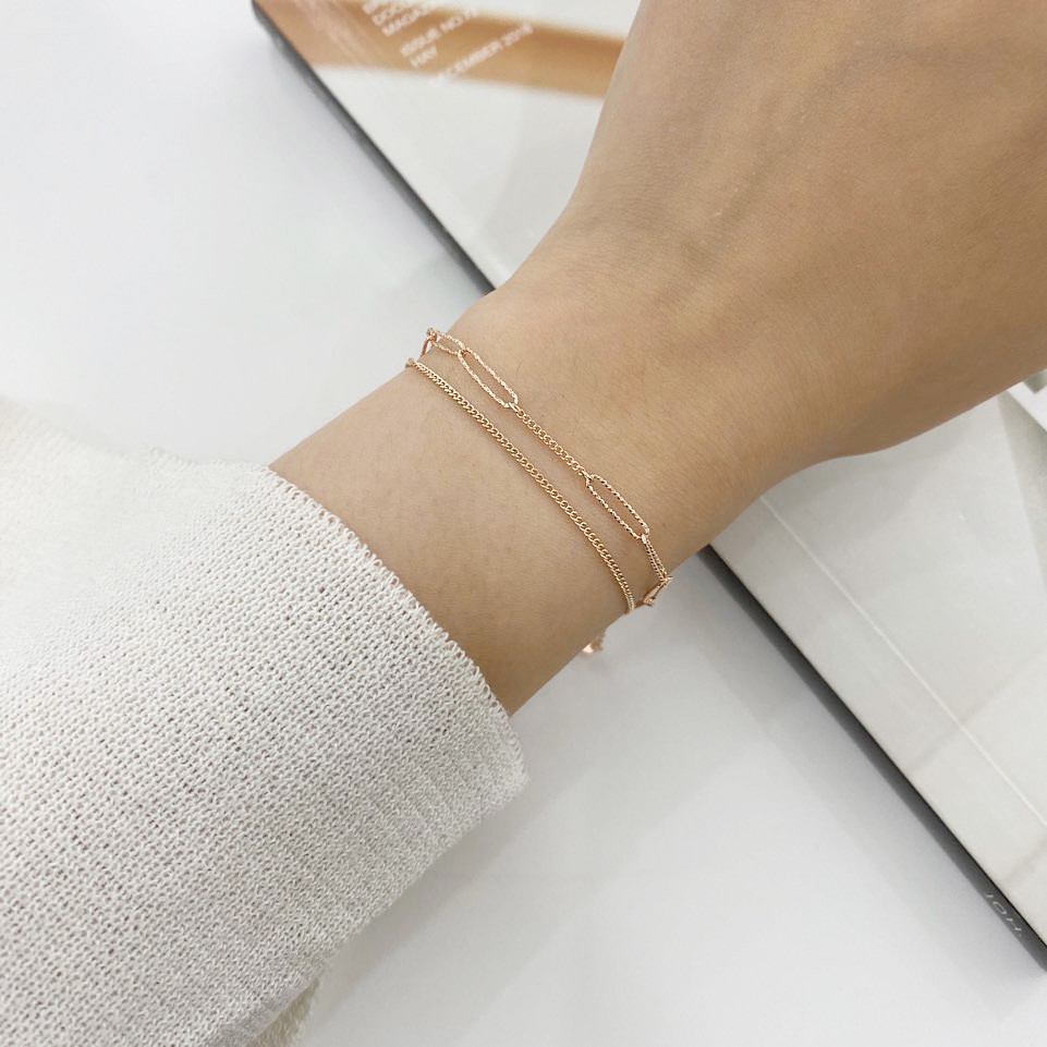 14K 18K 트리플 커팅 두줄 레이어드 체인 팔찌 발찌 발찌