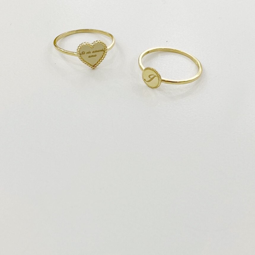 14K 18K 도트 러브 이니셜 각인 코인 링 반지
