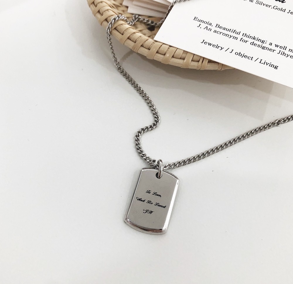 실버 스몰 스퀘어 이니셜 각인 커브체인 목걸이