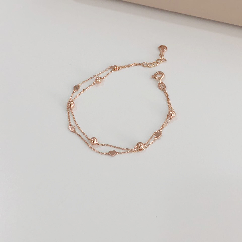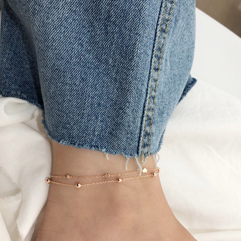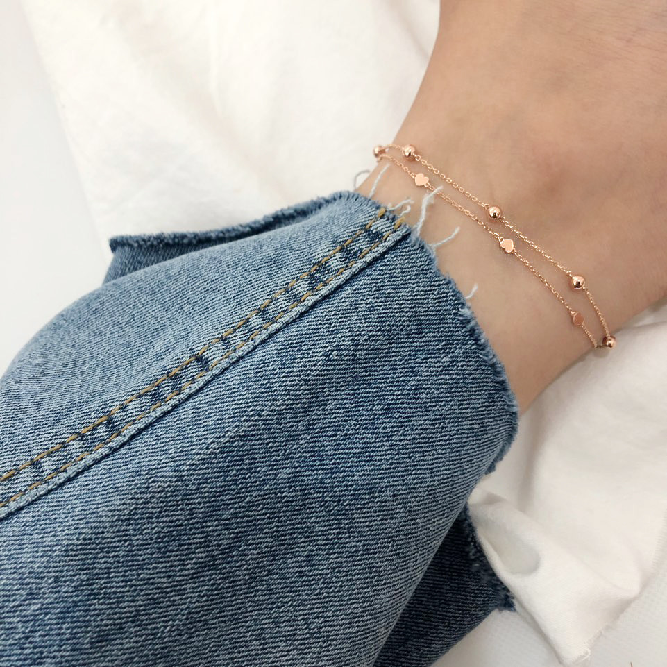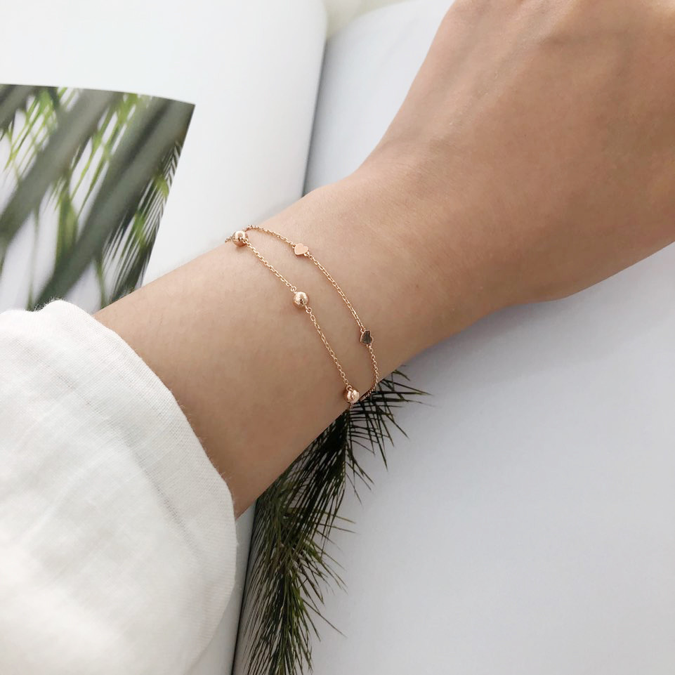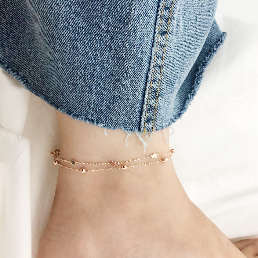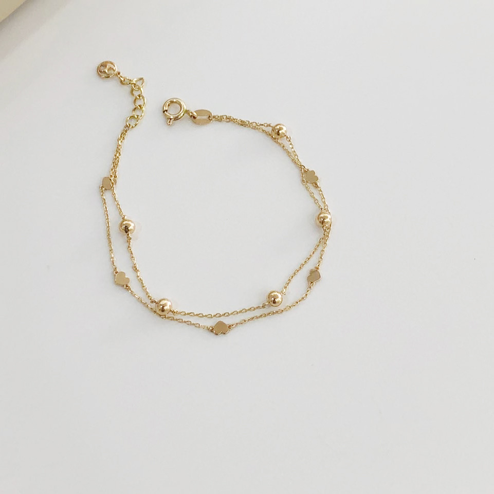 14K 18K 구슬 하트 두줄 레이어드 체인 발찌 팔찌