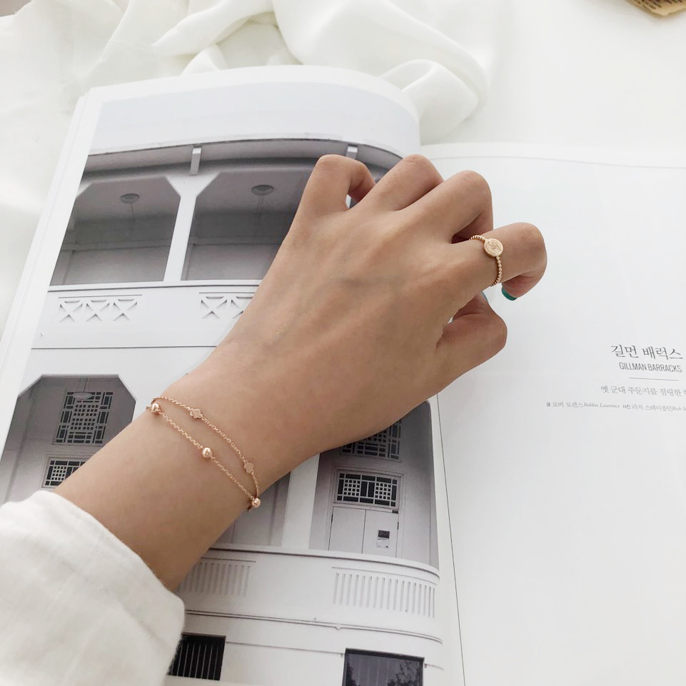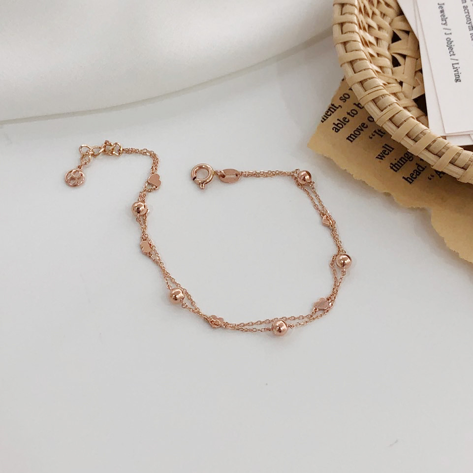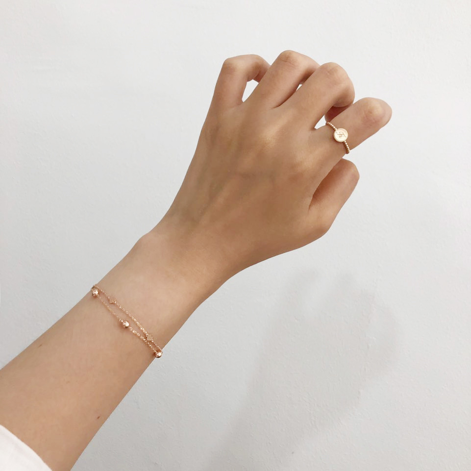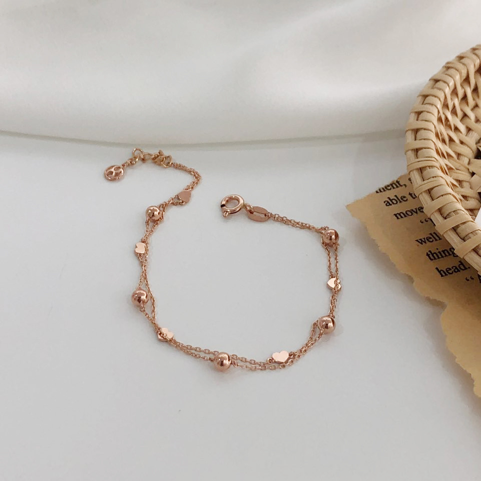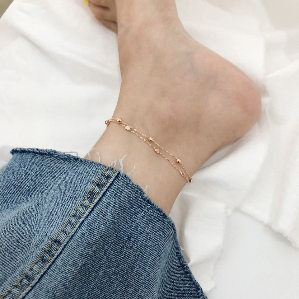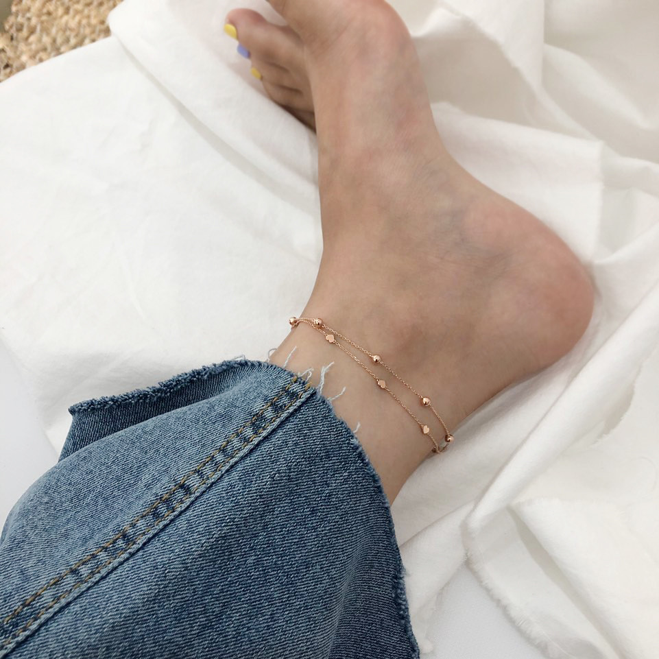 14K 18K 구슬 하트 두줄 레이어드 체인 발찌 팔찌