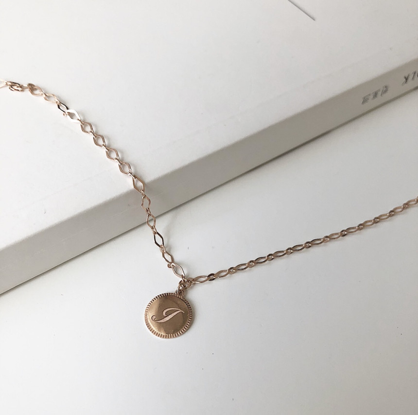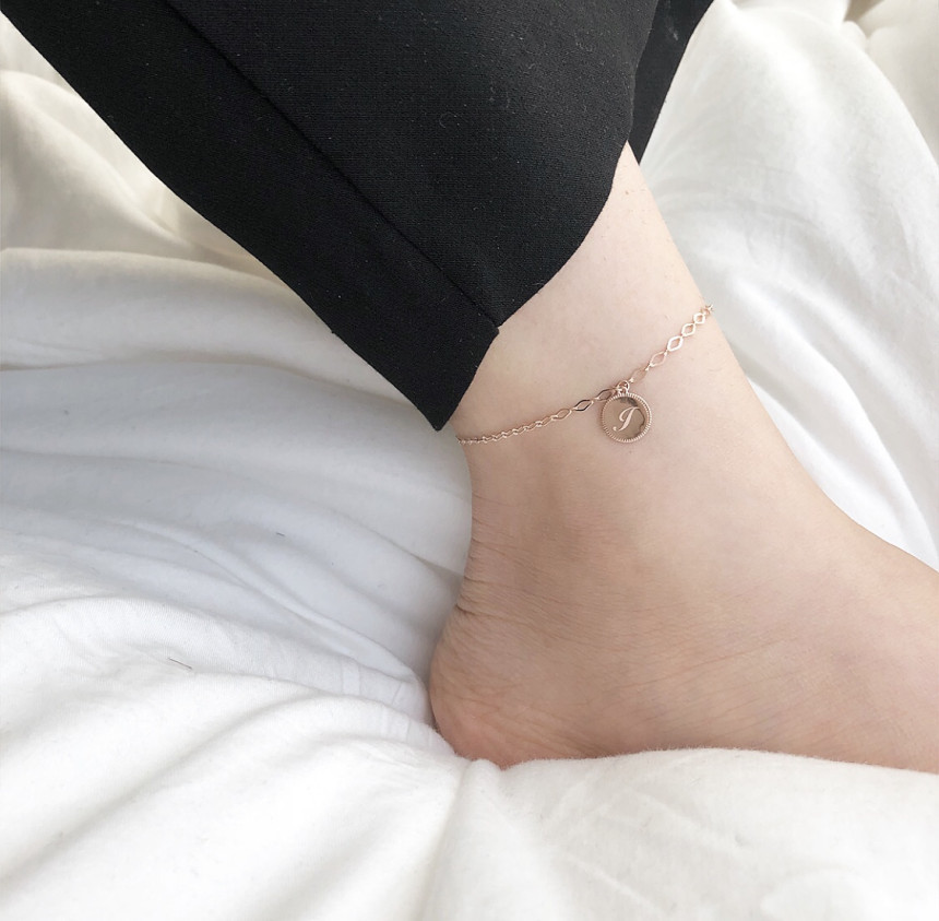 14K 18K 라운드 이니셜 각인 슈가 체인 발찌 팔찌