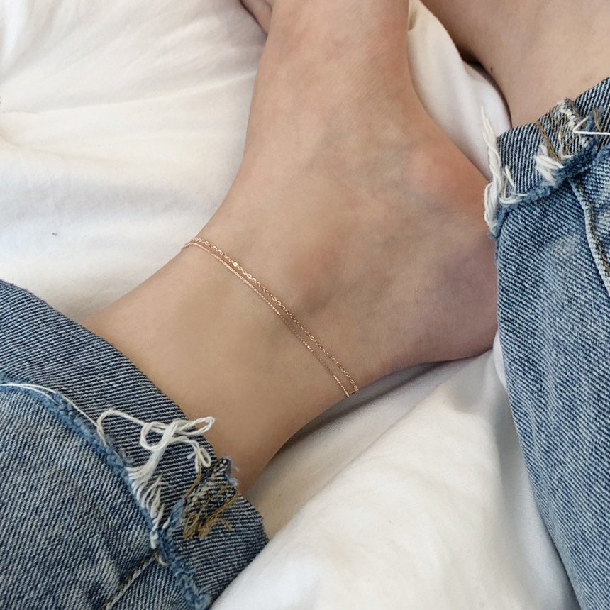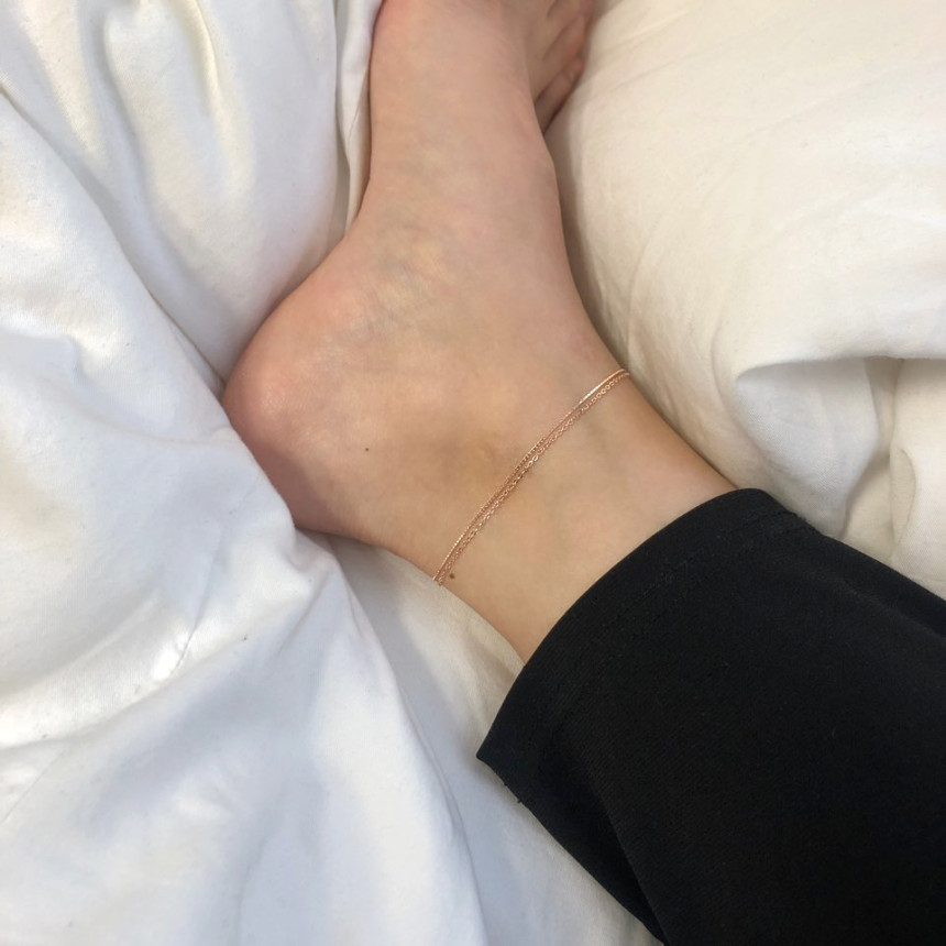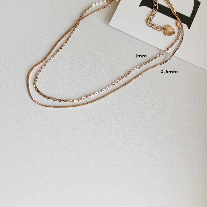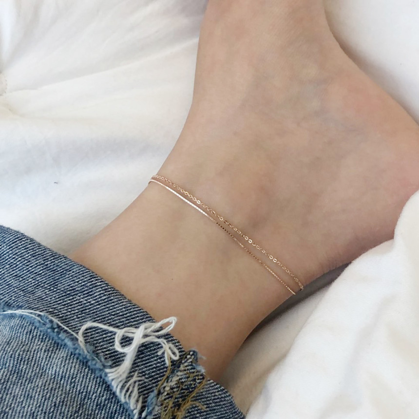14K 18K 박스 레이어드 두줄 체인 발찌