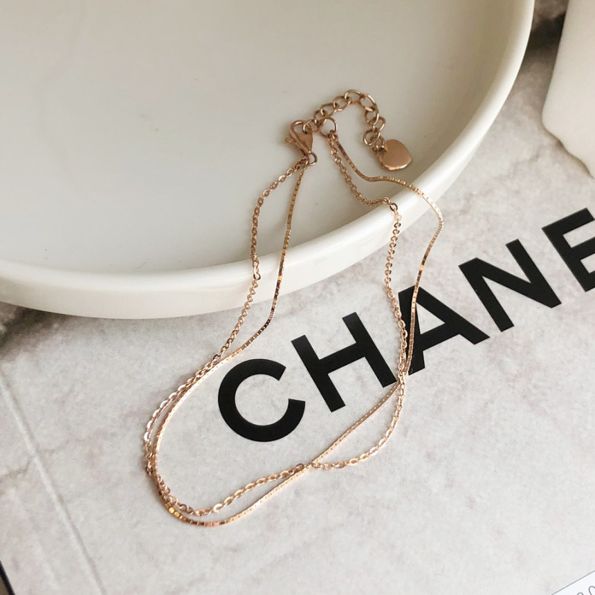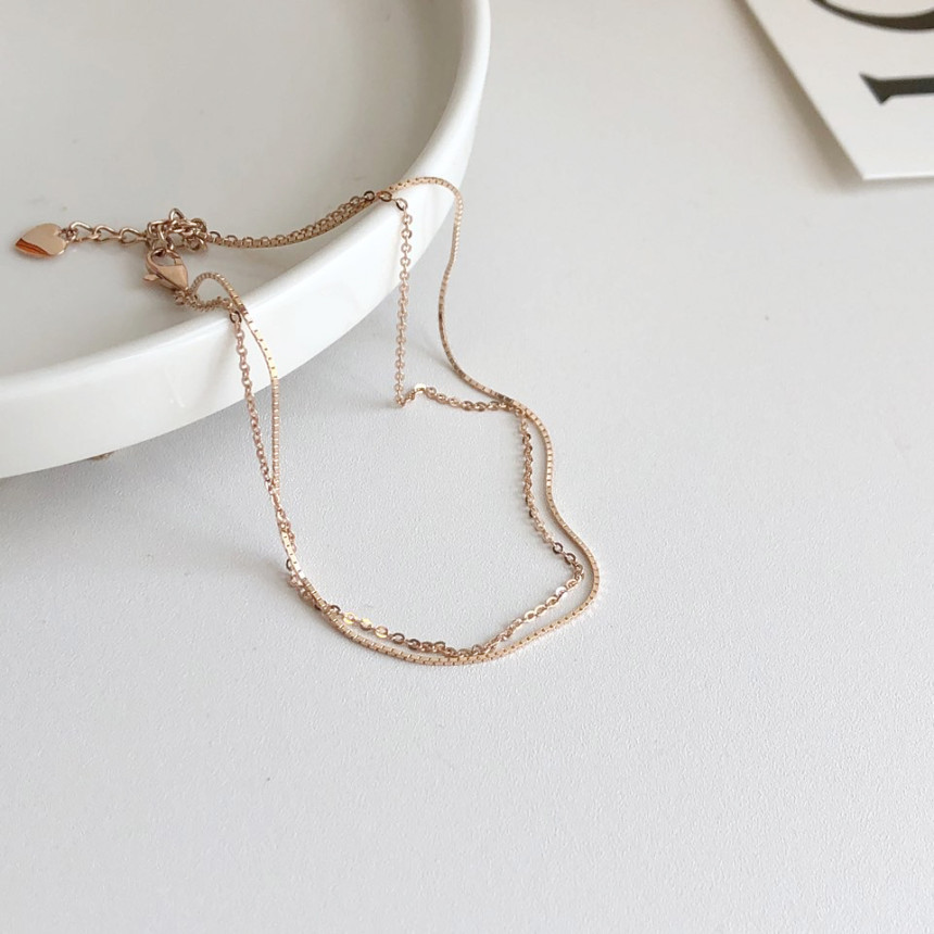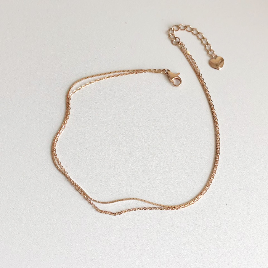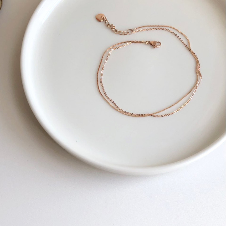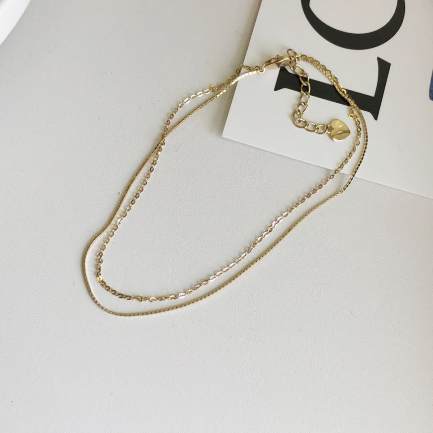 14K 18K 박스 레이어드 두줄 체인 발찌