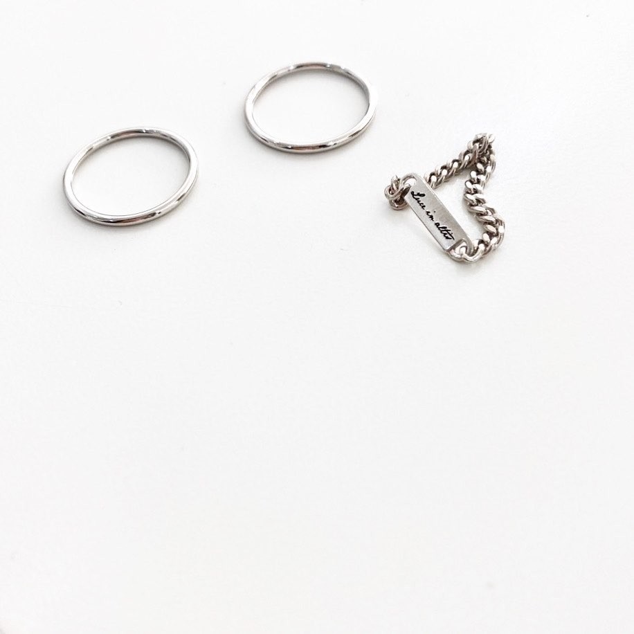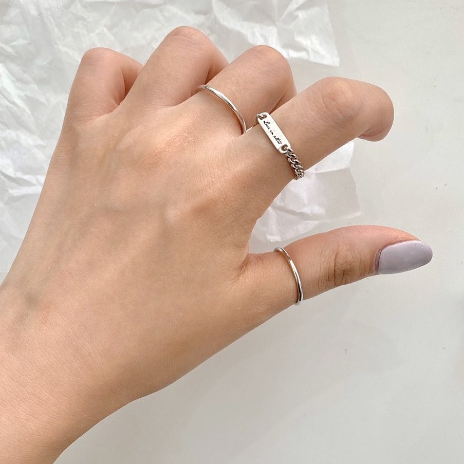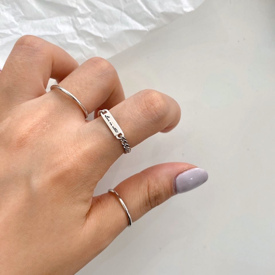 실버 스틱 소프트 체인 이니셜 각인 반지 링