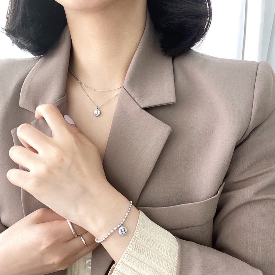 쥬노이아 [ 실버 3mm 콩 이니셜 각인 볼팔찌 ]