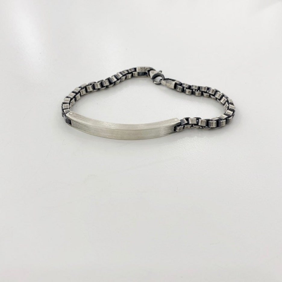 실버 4mm 스틱 이니셜 각인 유화 박스체인 팔찌