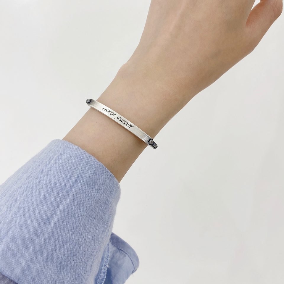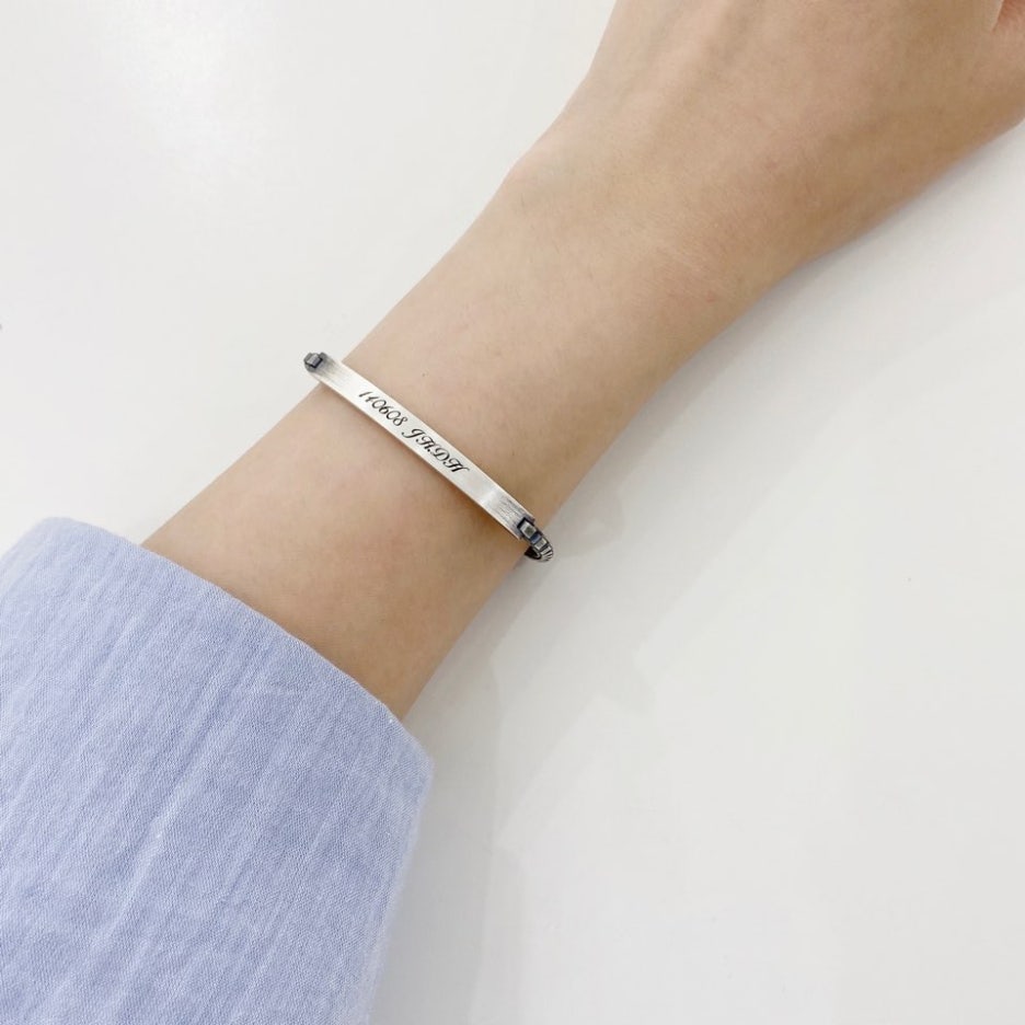 4mm 스틱 이니셜 각인 유화 박스체인 팔찌