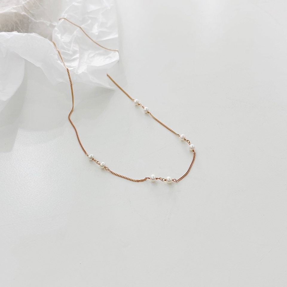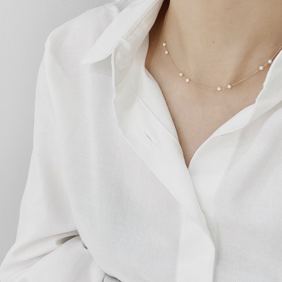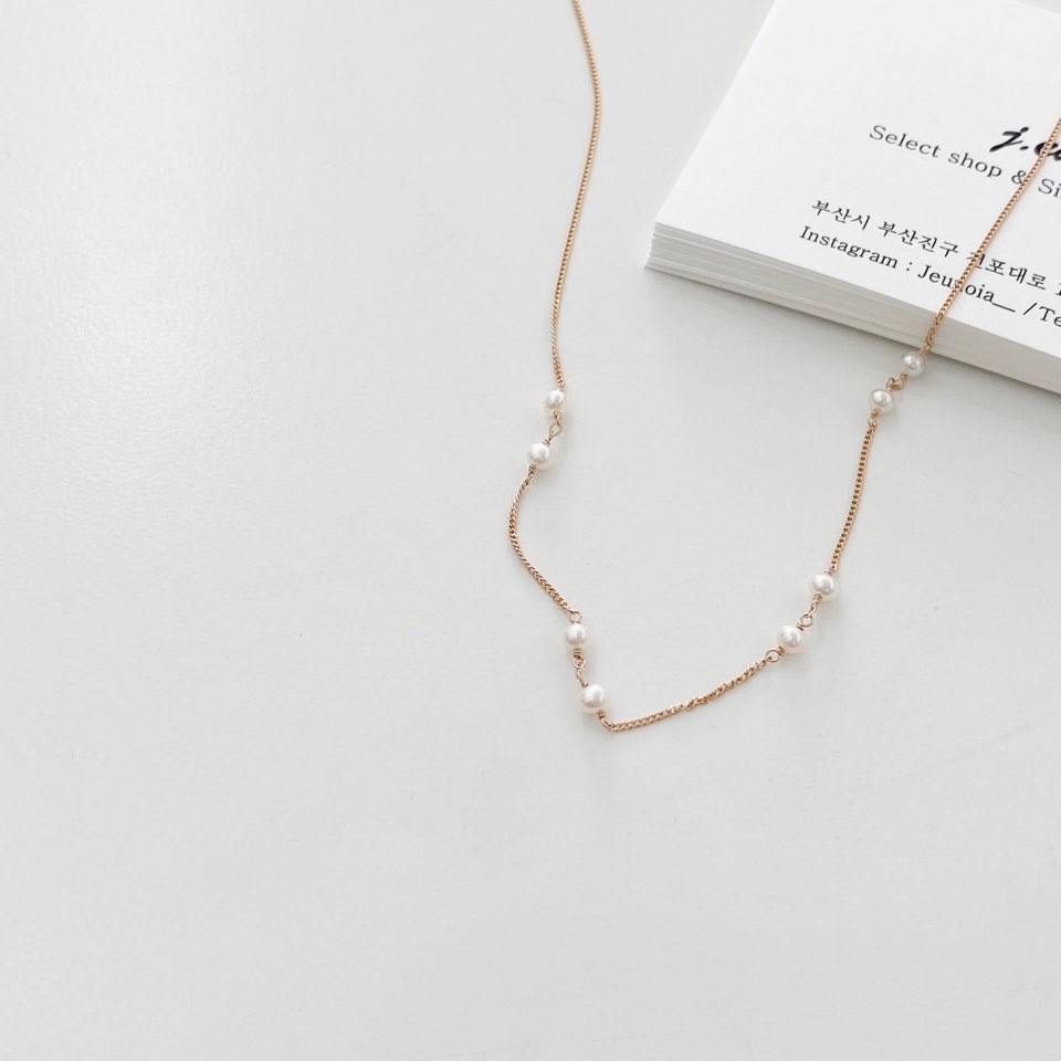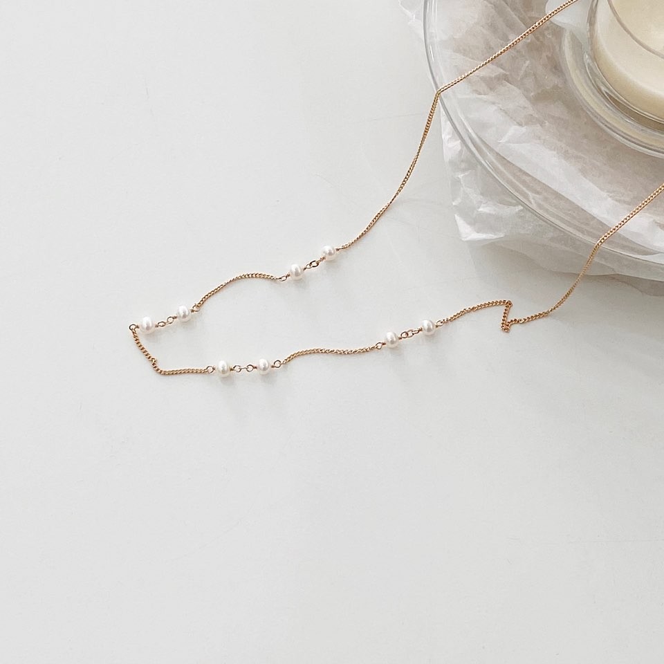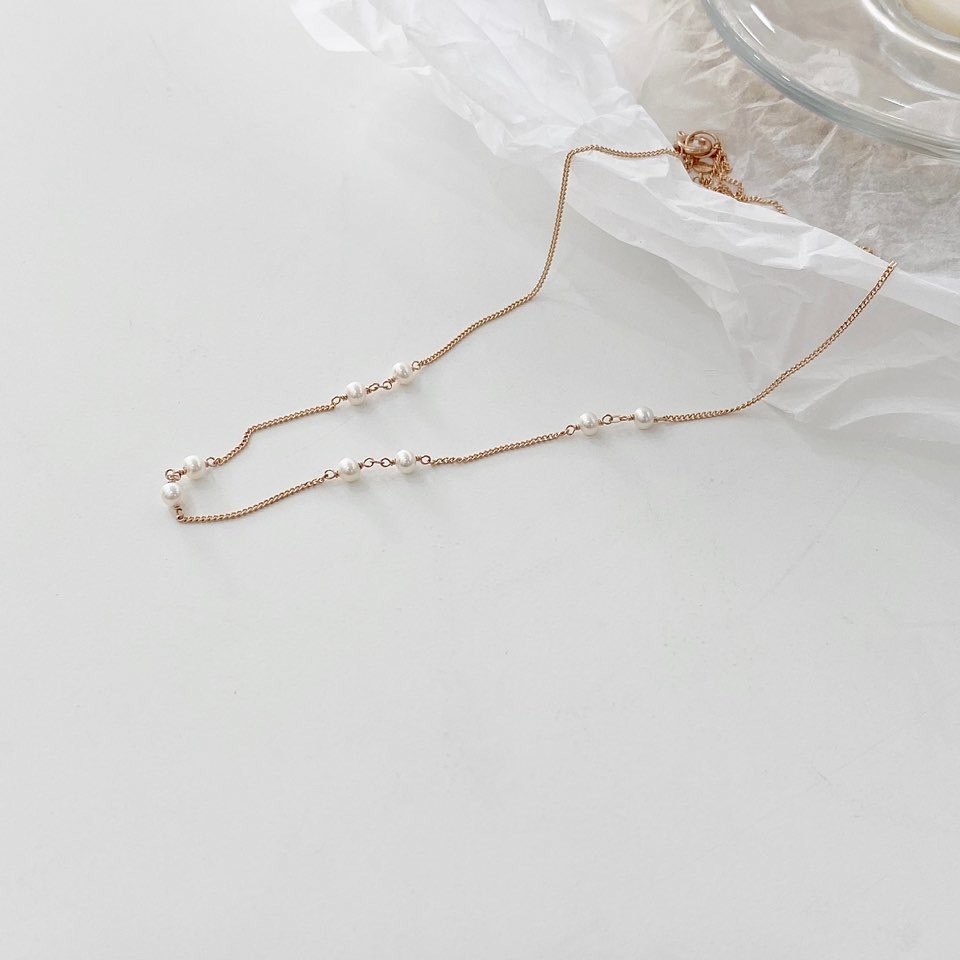 포인트 담수 진주 초커 체인 목걸이