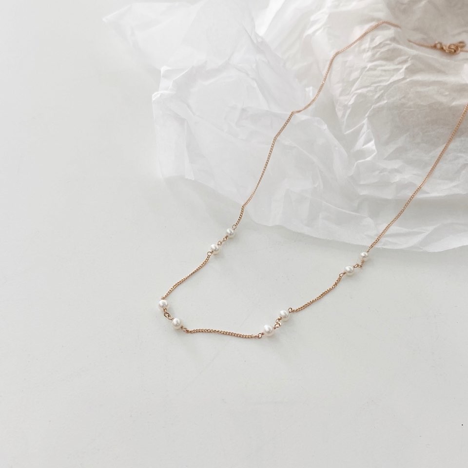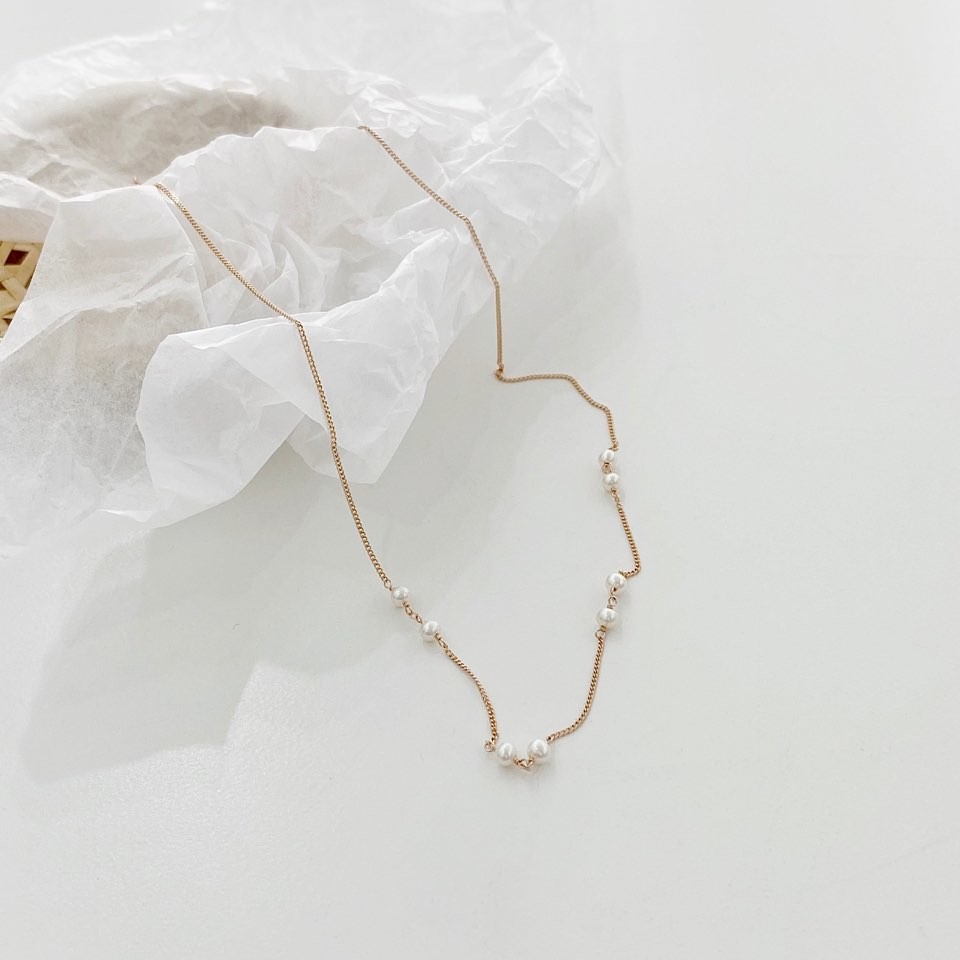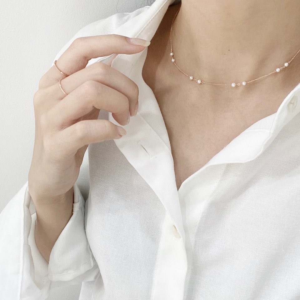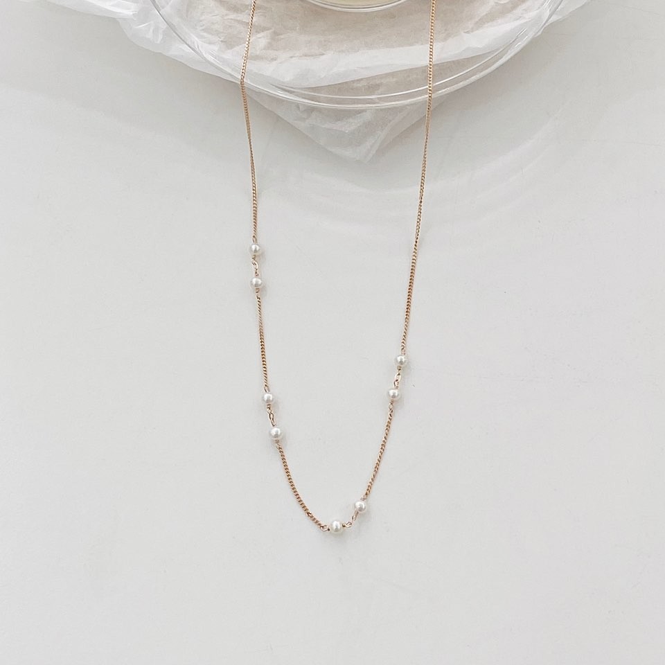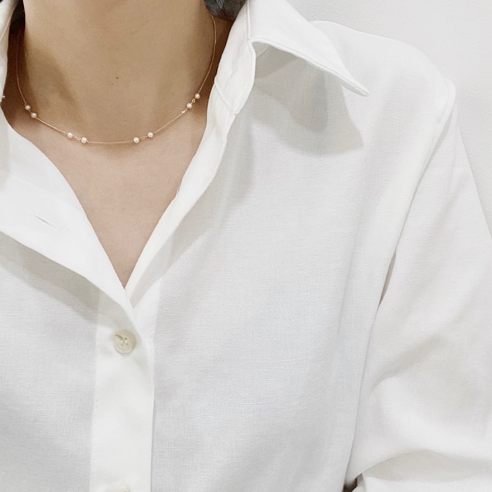 포인트 담수 진주 초커 체인 목걸이