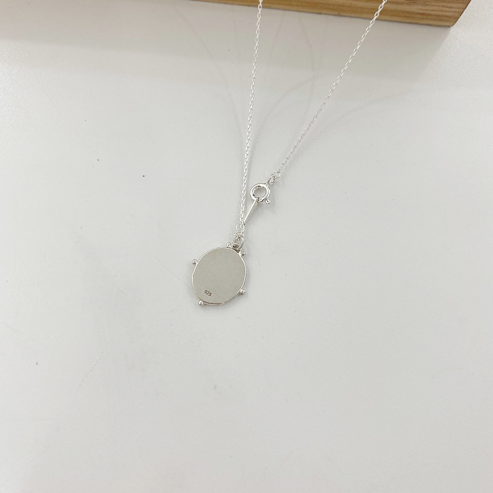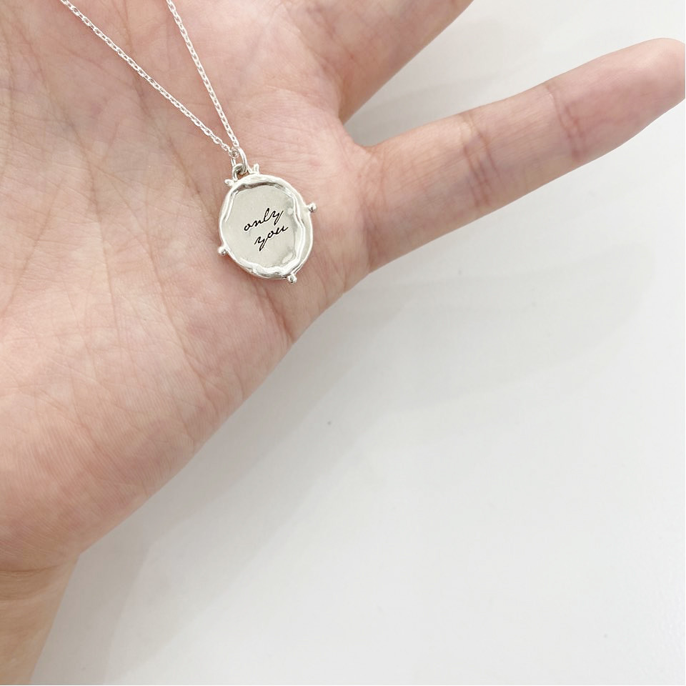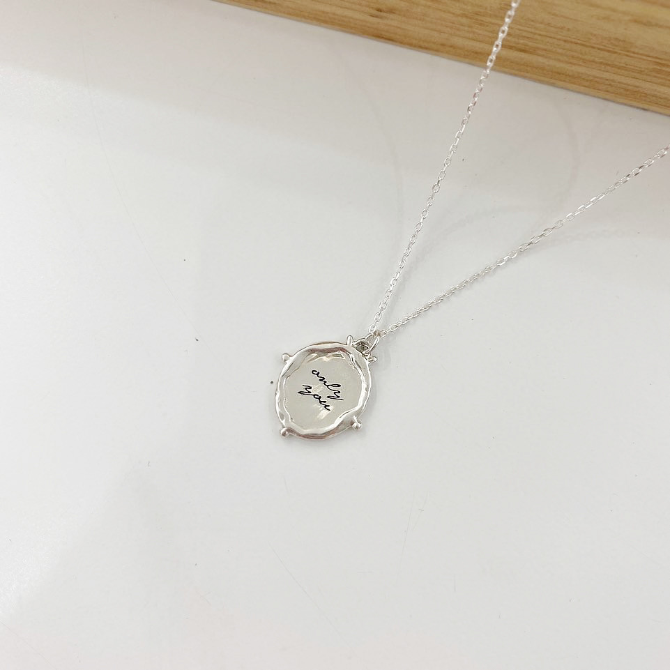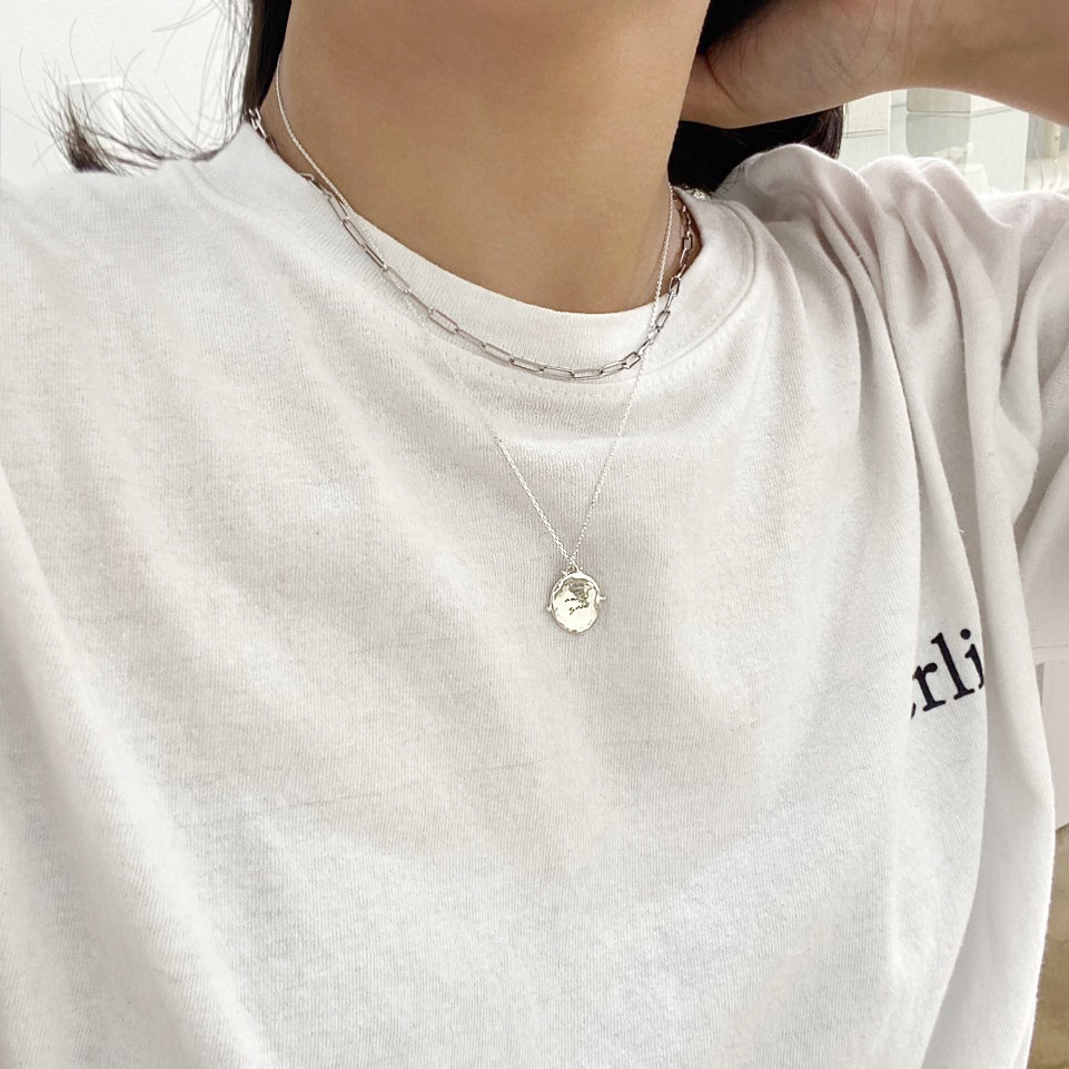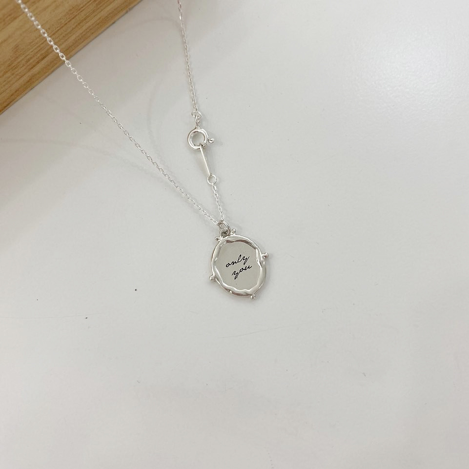 실버 라운드 프레임 이니셜 각인 목걸이