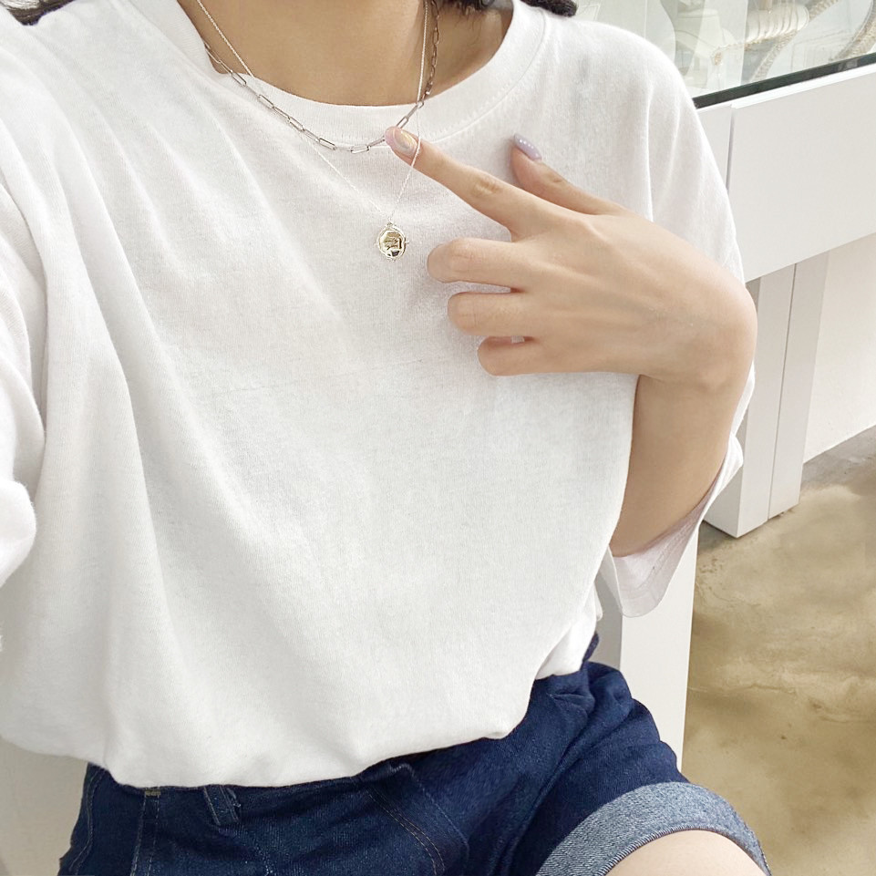 함께 착용한 클립 체인은 관련 상품에 추가해두었습니다.