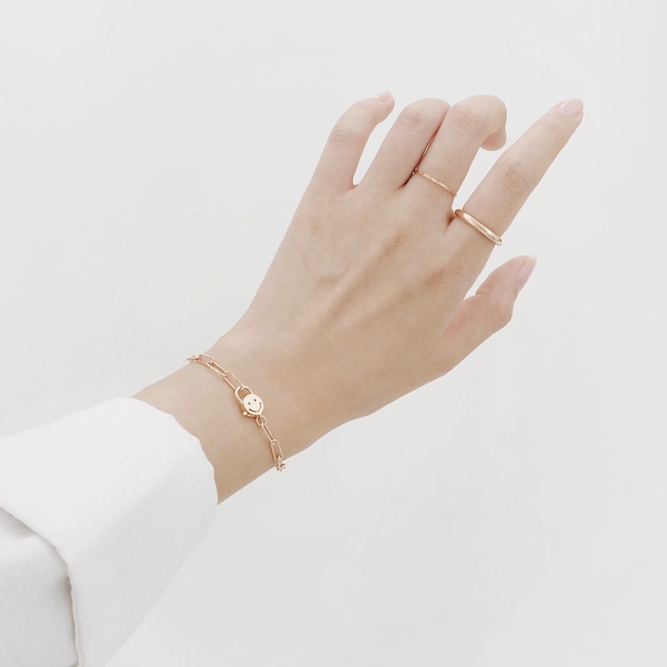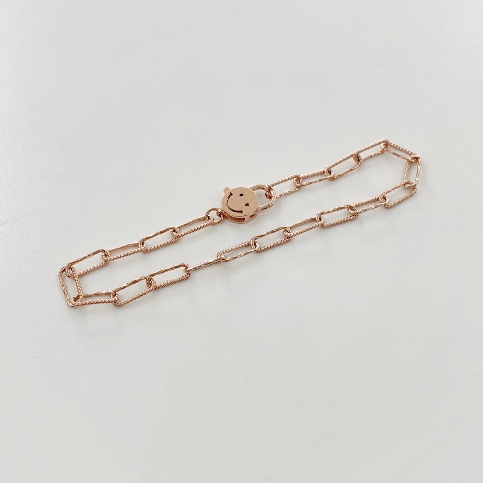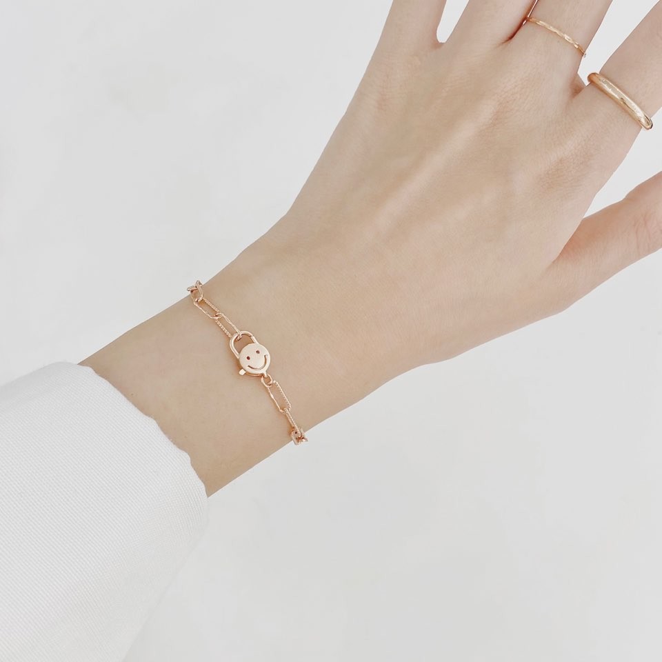 14K 18K 락 스마일 클립 체인 팔찌
