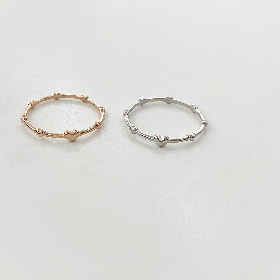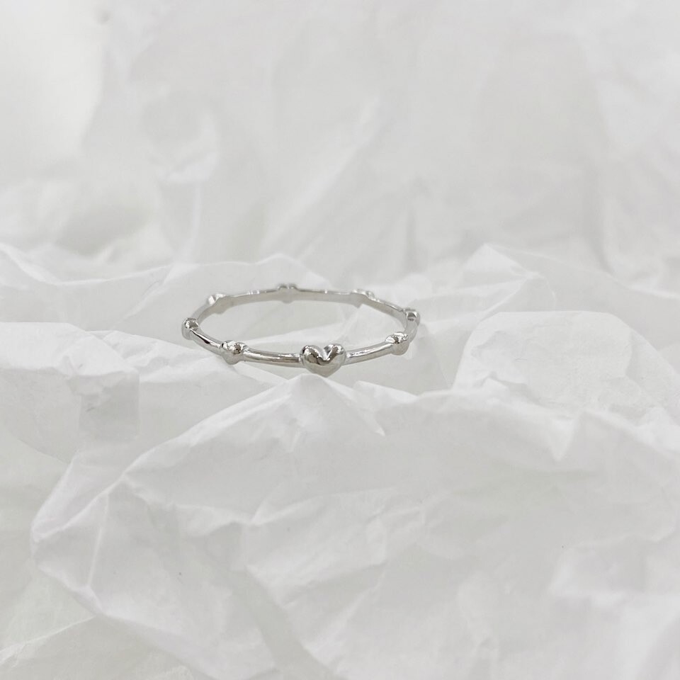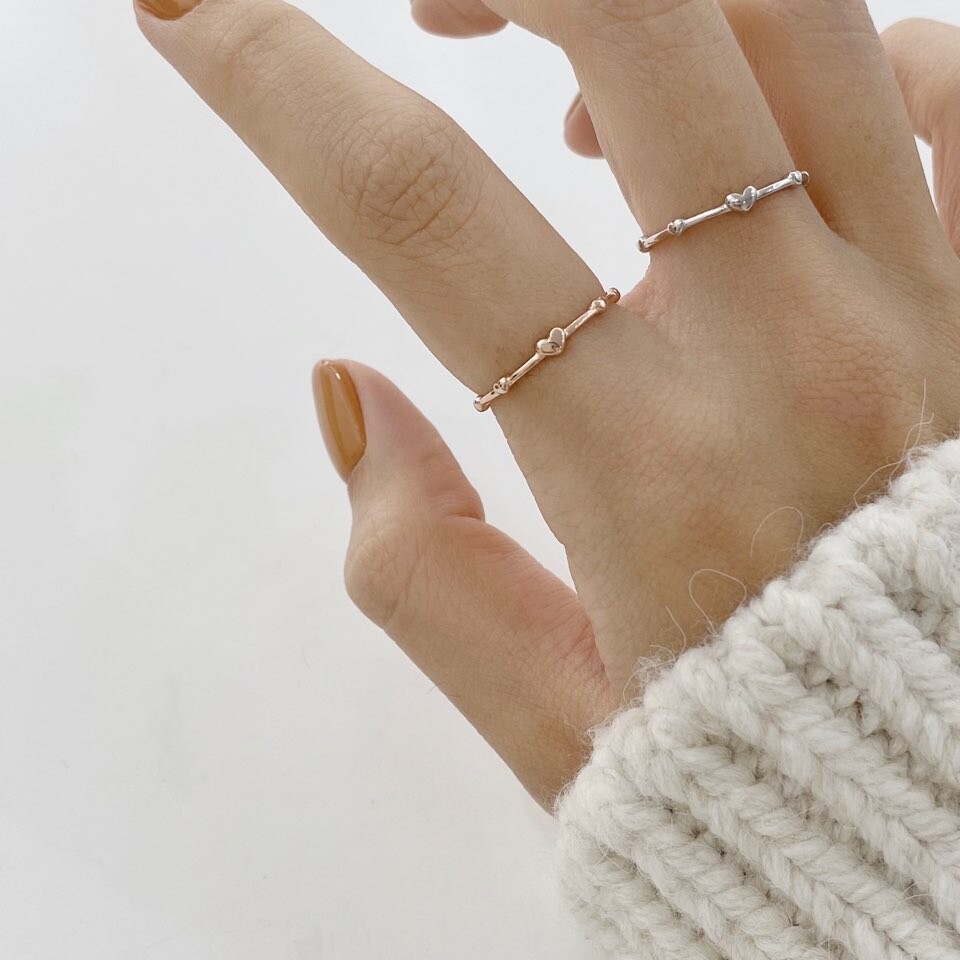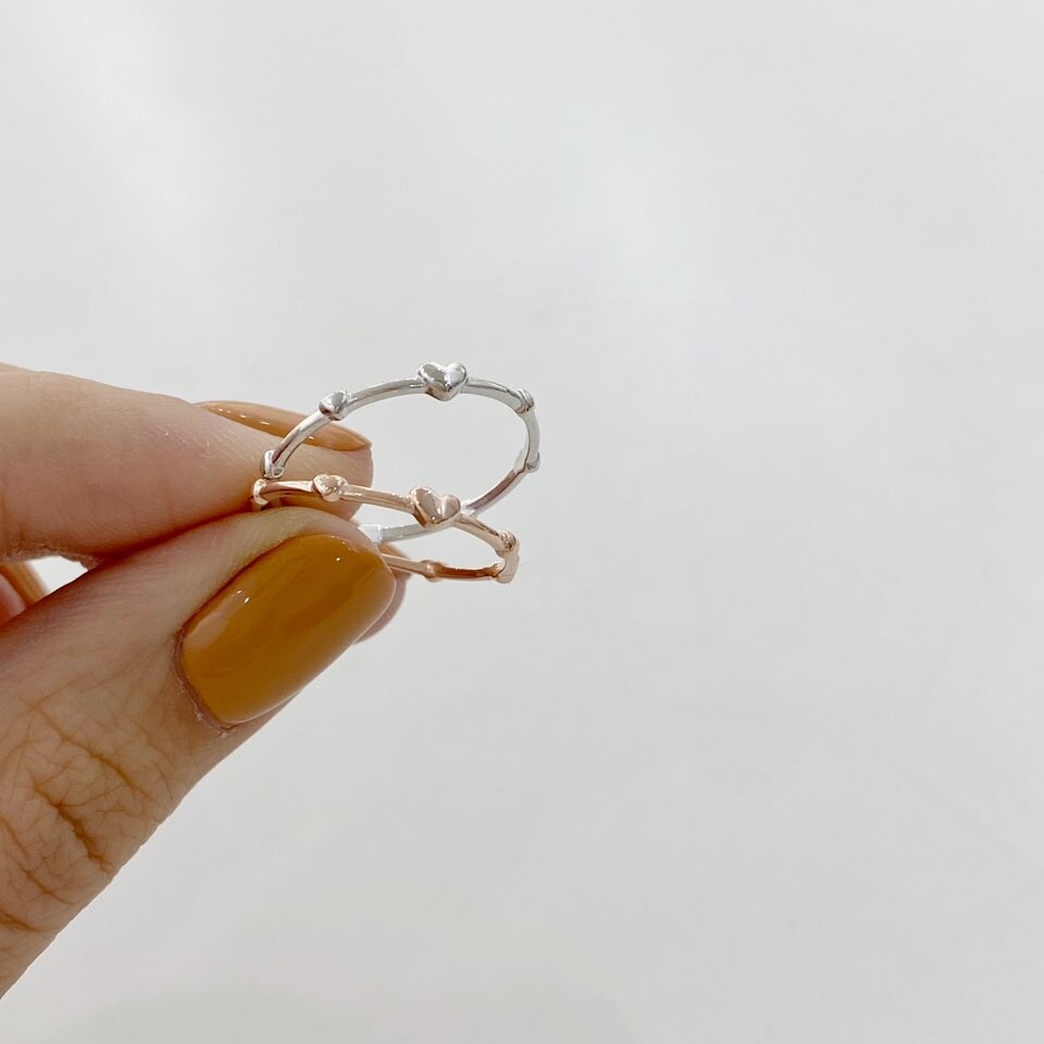 작은 하트들로 둘러싸여진 슬림링 디자인이에요.