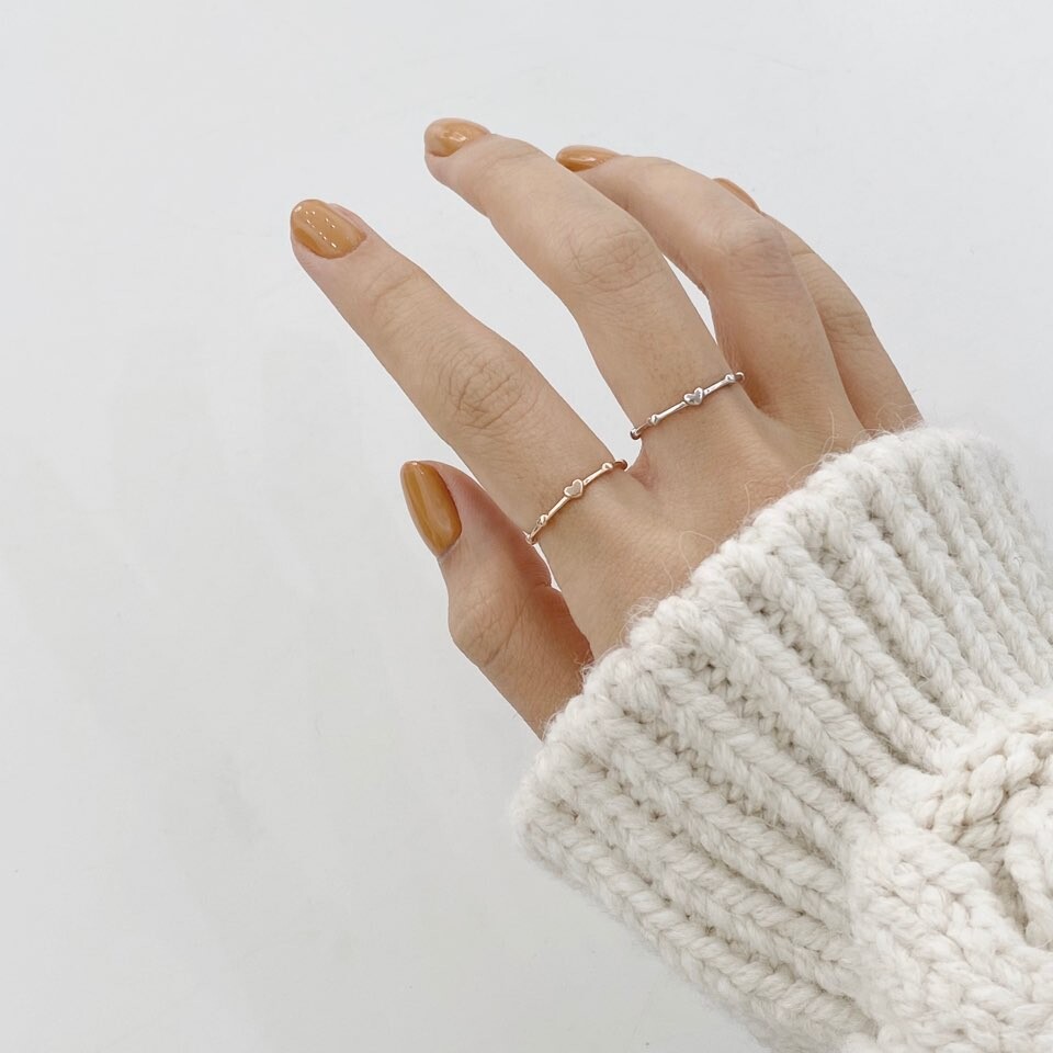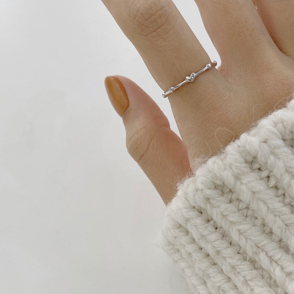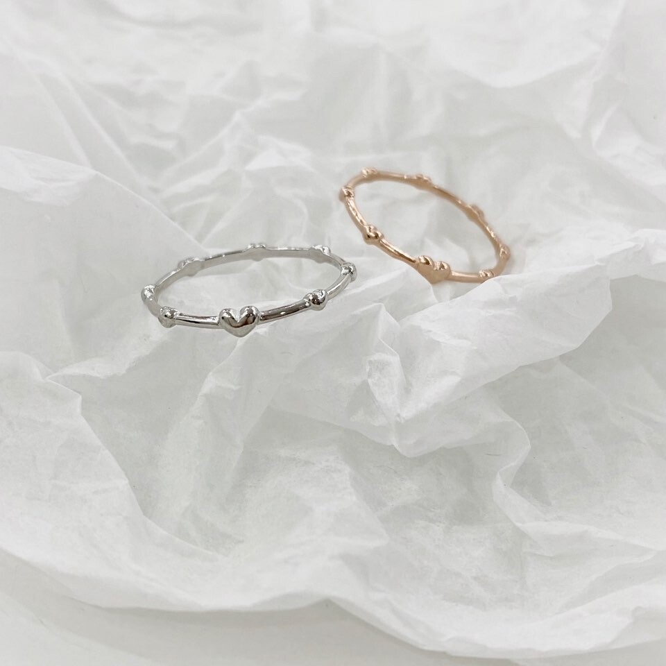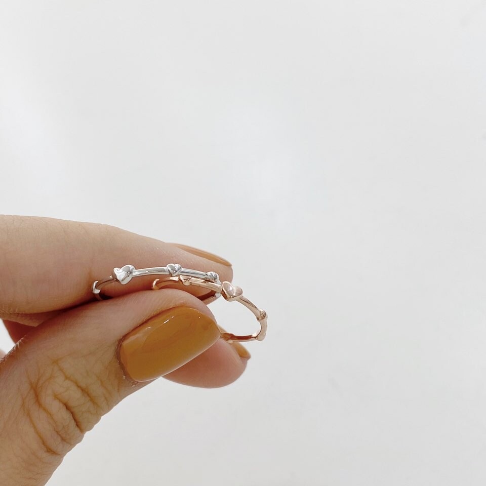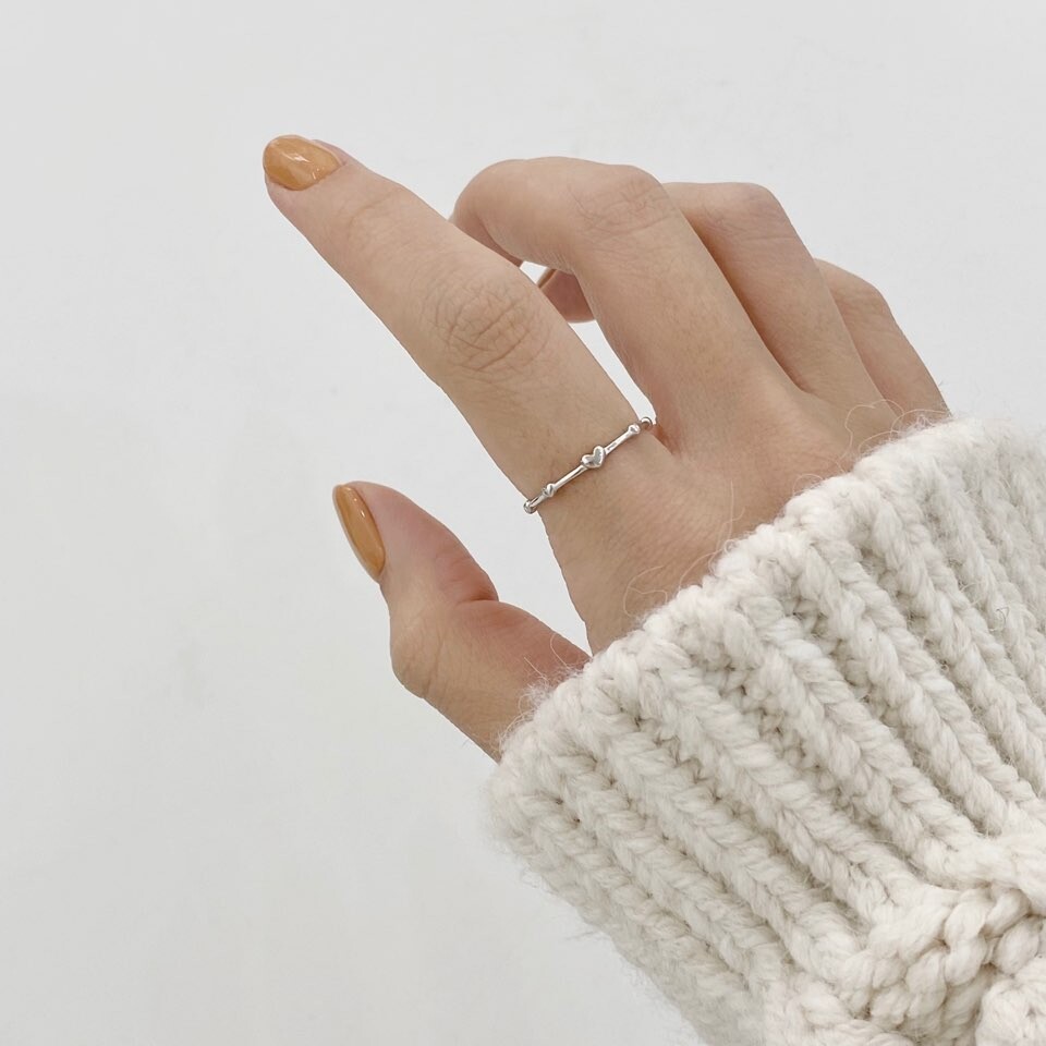 작은 하트들로 둘러싸여진 슬림링 디자인이에요.