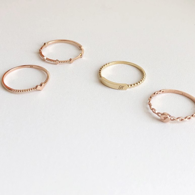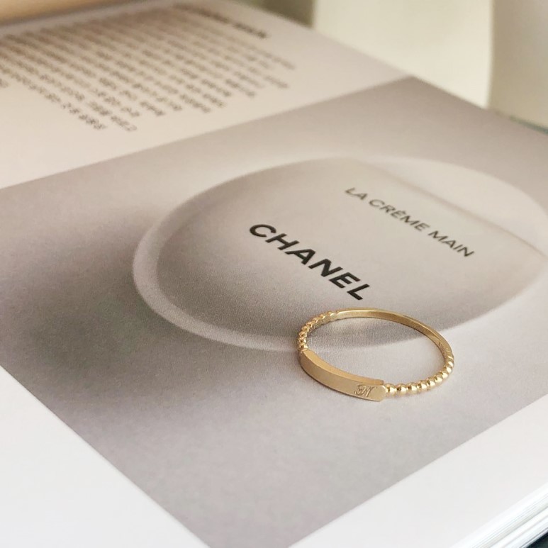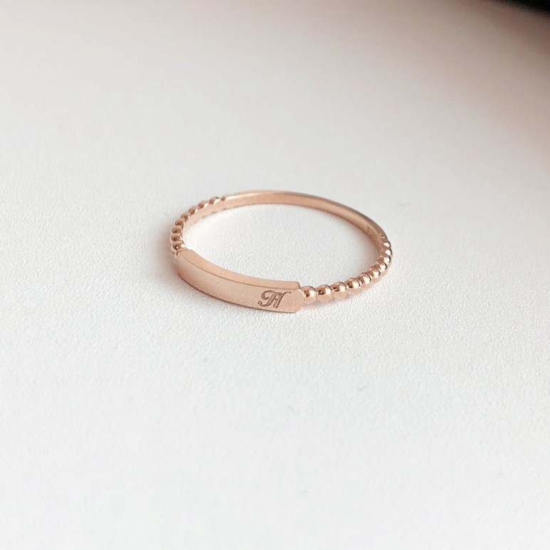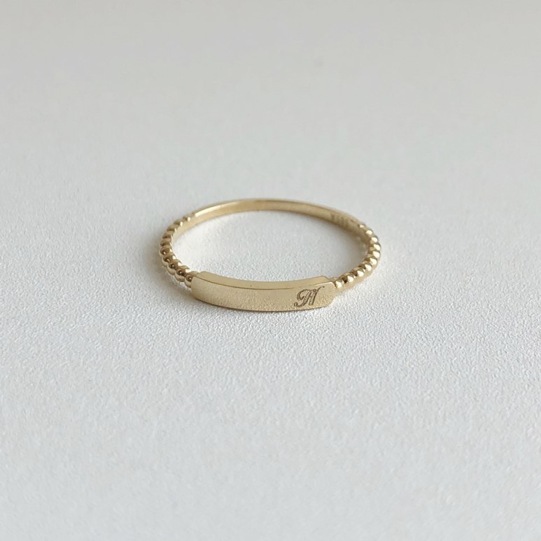 14K 18K 스틱 이니셜 각인 볼 반지