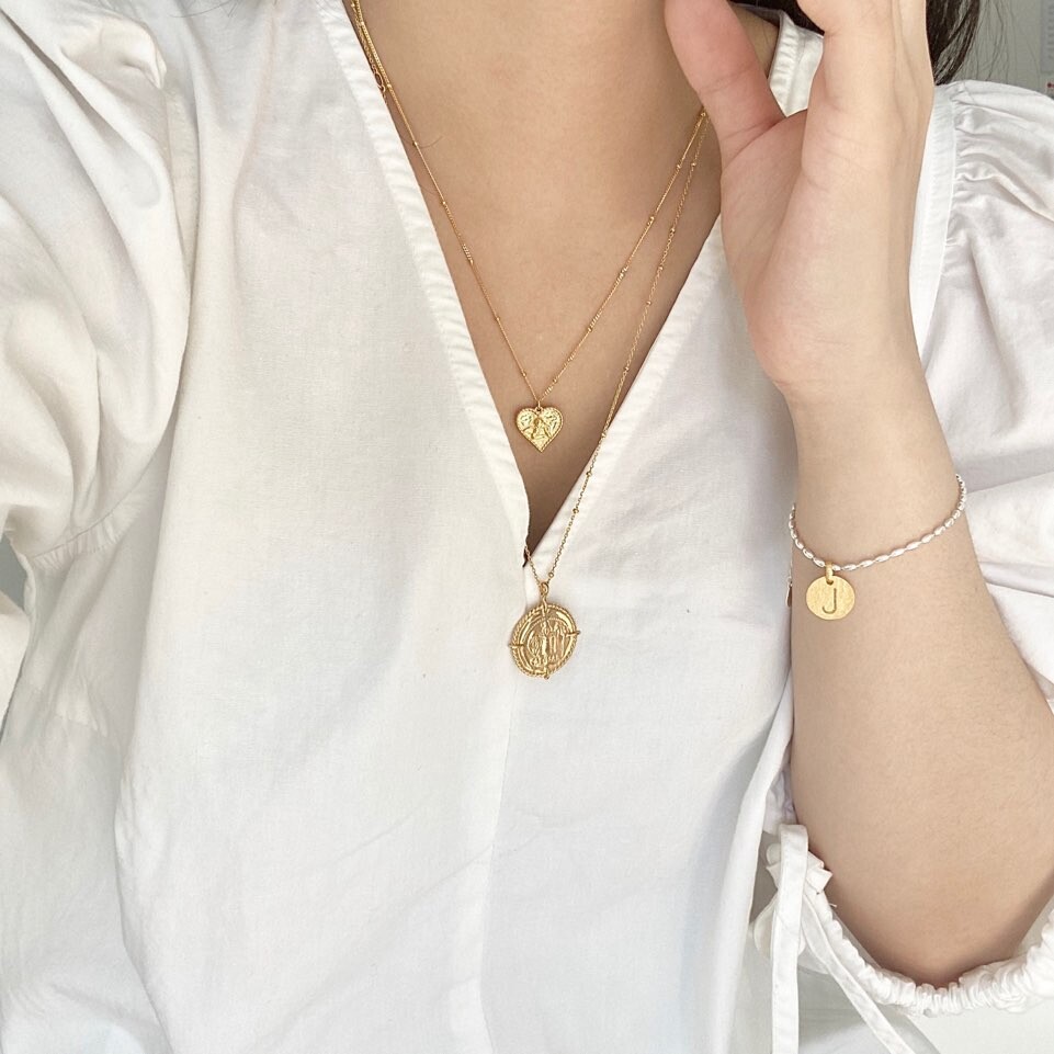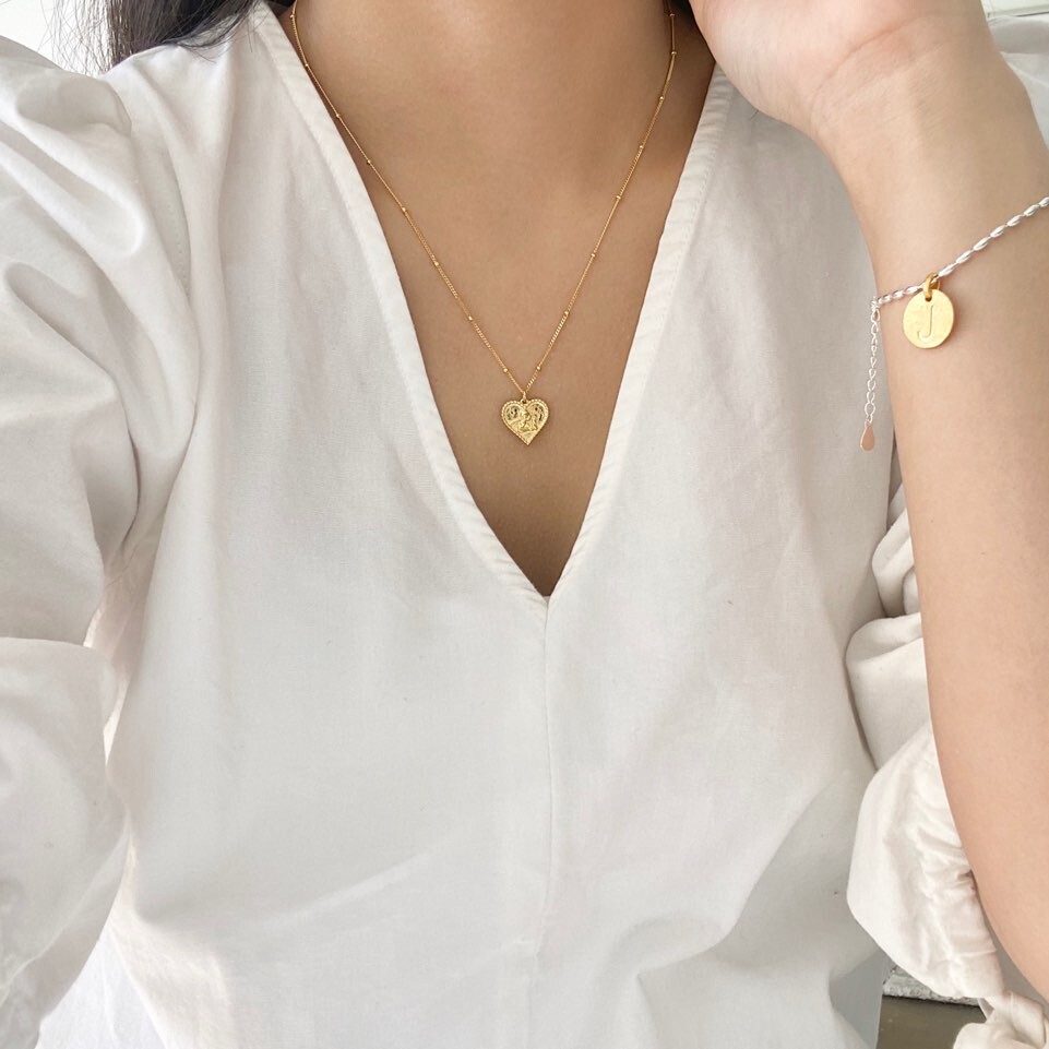 뒤집혀도 예쁜 디자인이랍니다. 다른 짧은 체인과 함께 레이어드하는걸 추천드릴게요.
