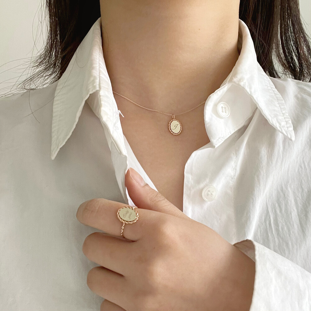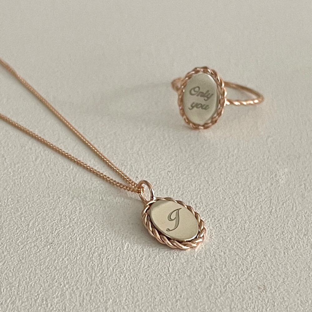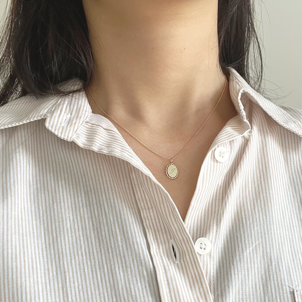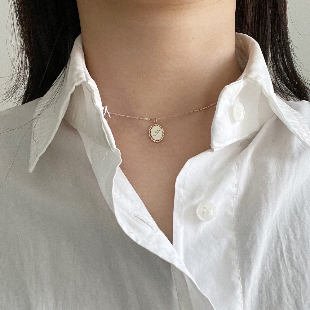 14K 18K 오벌 로프 이니셜 각인 목걸이