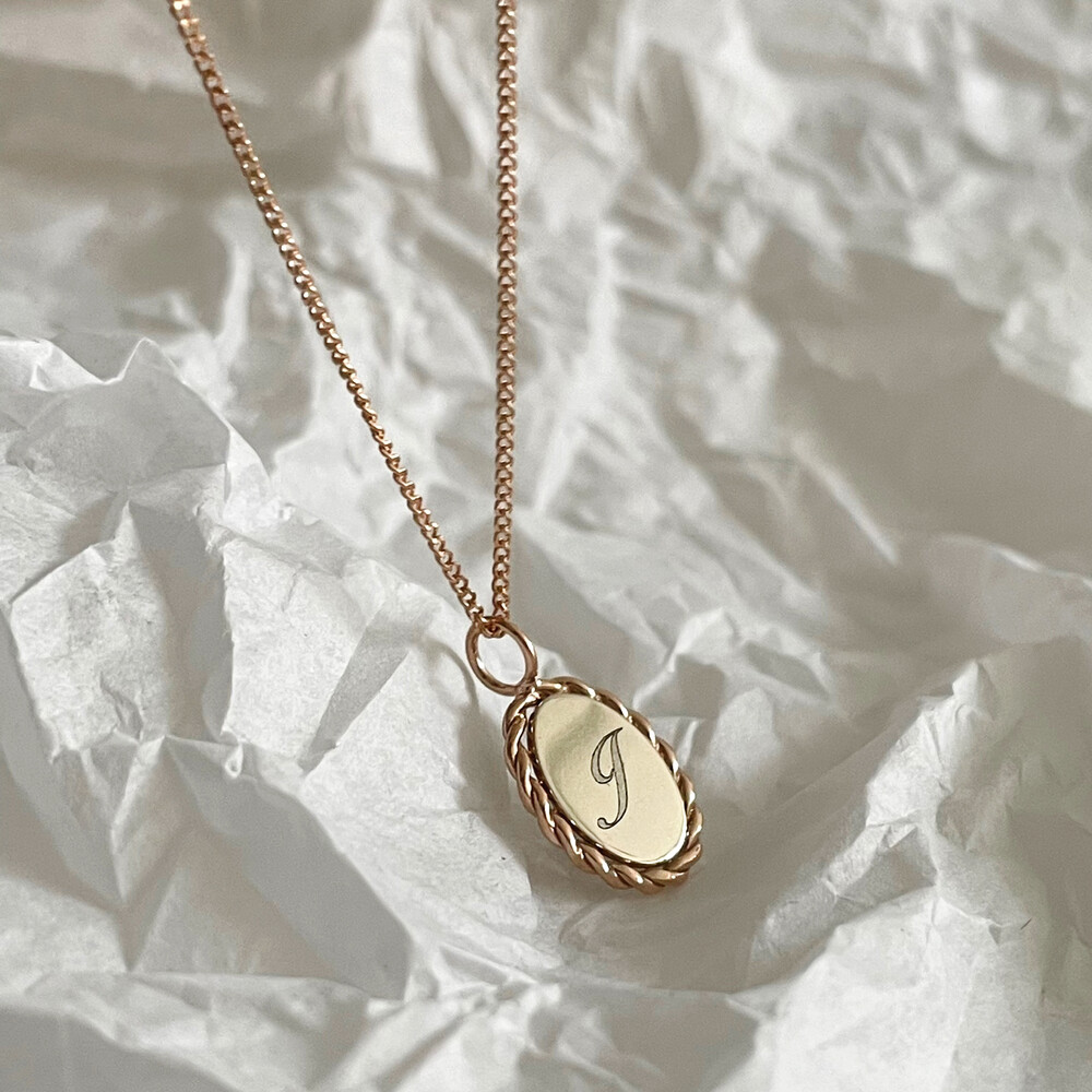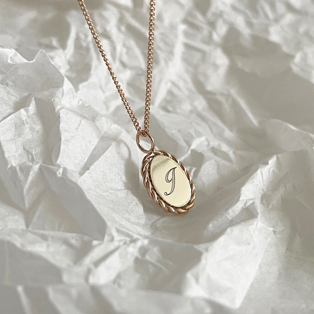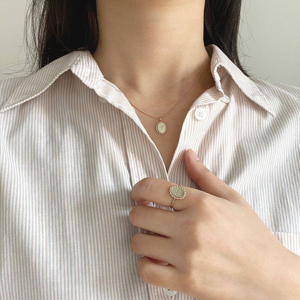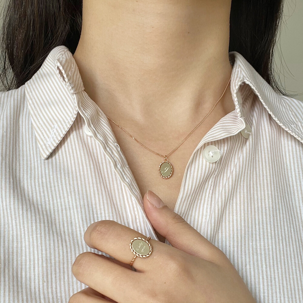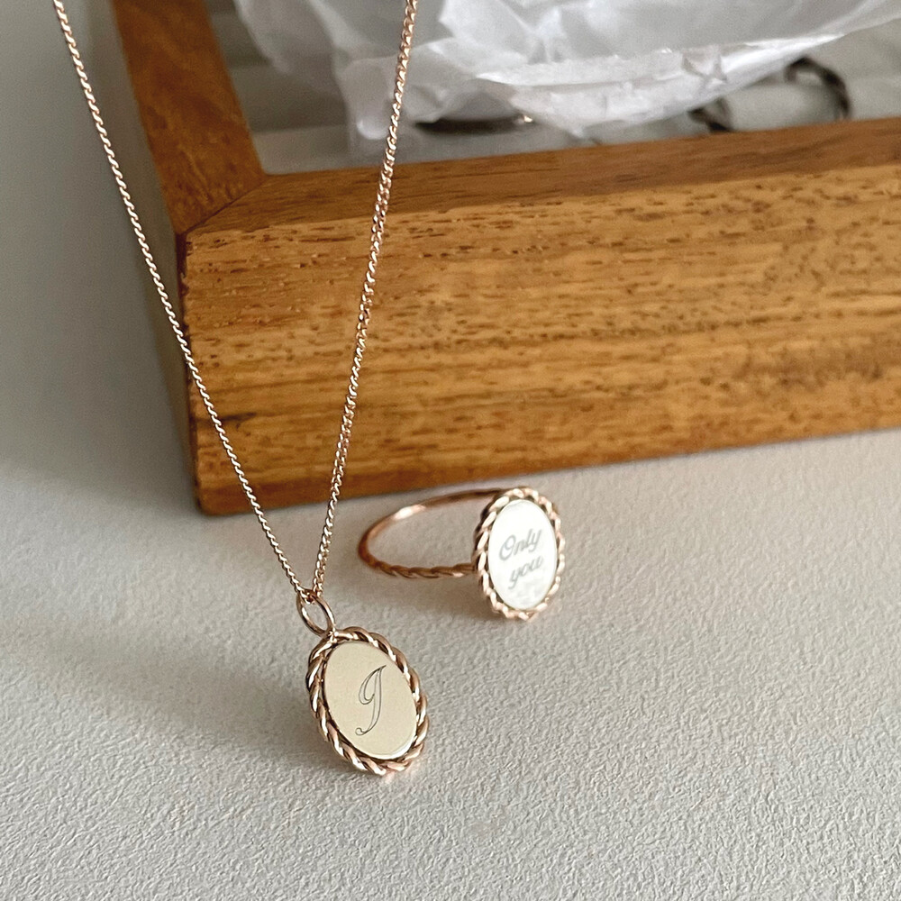 14K 18K 오벌 로프 이니셜 각인 목걸이
