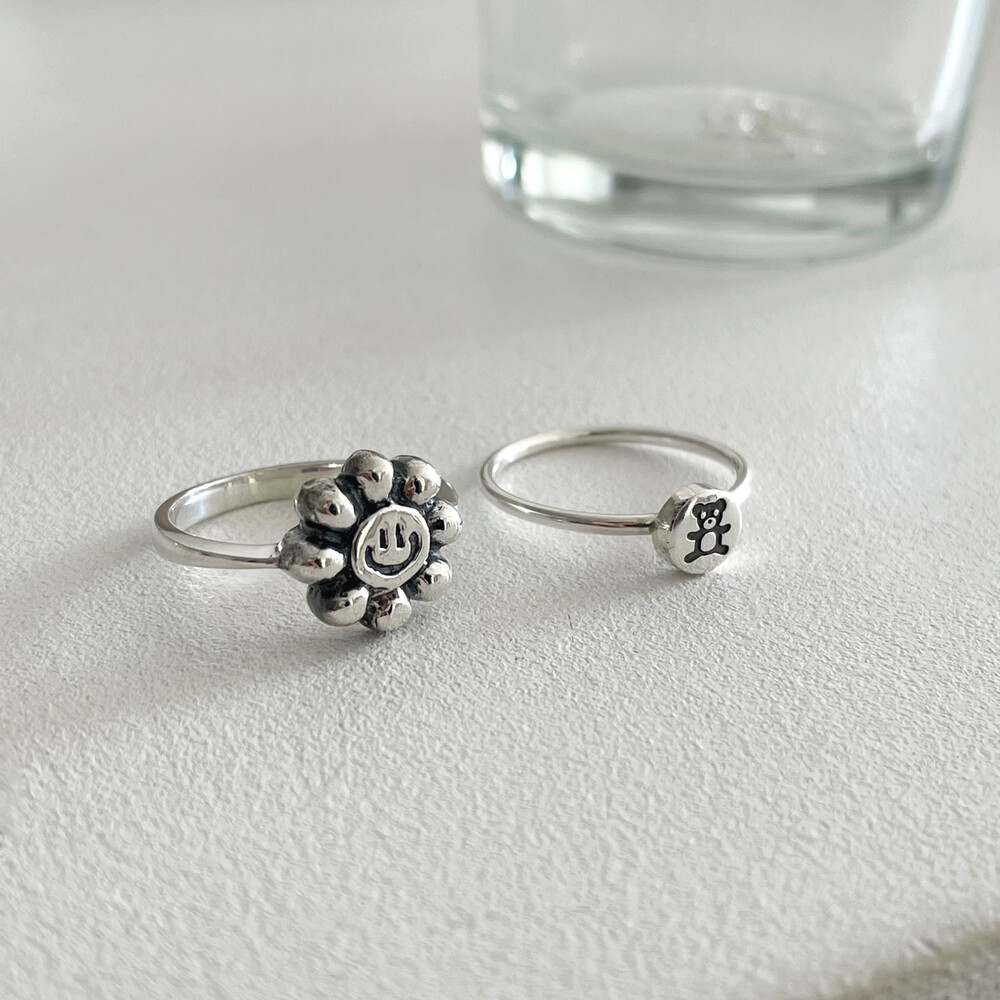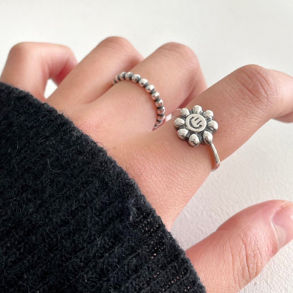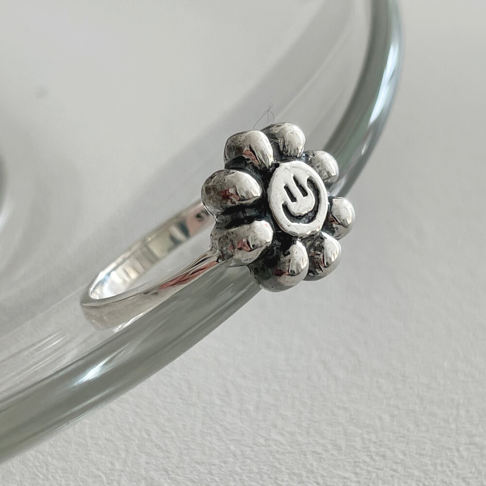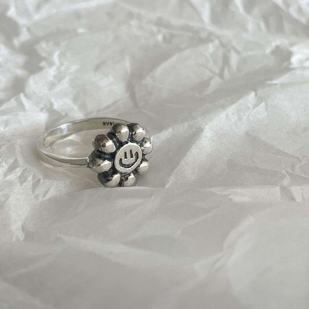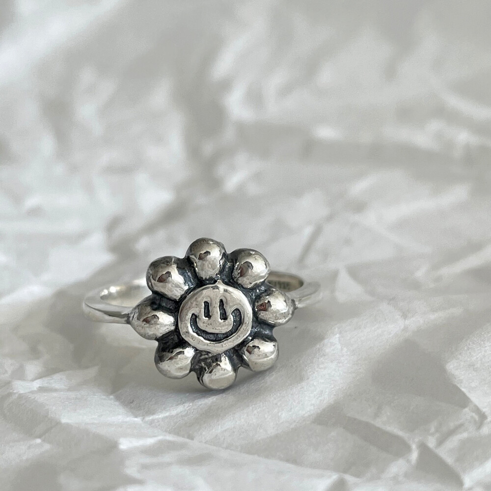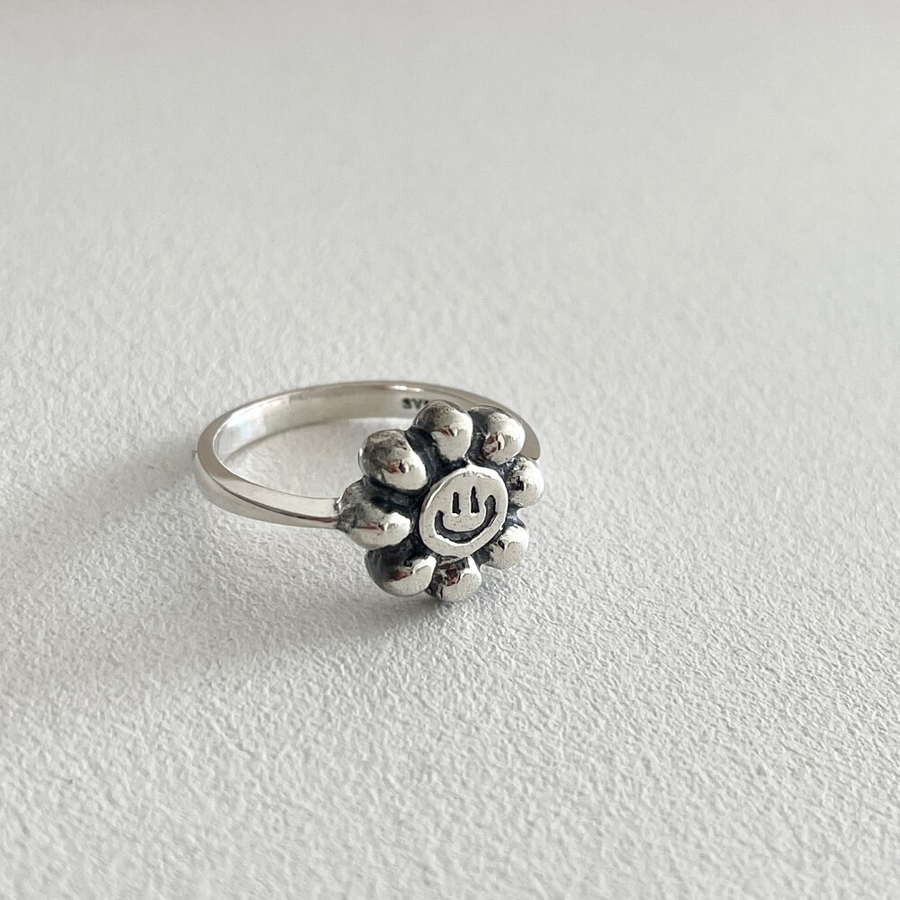 실버 해바라기 스마일 반지