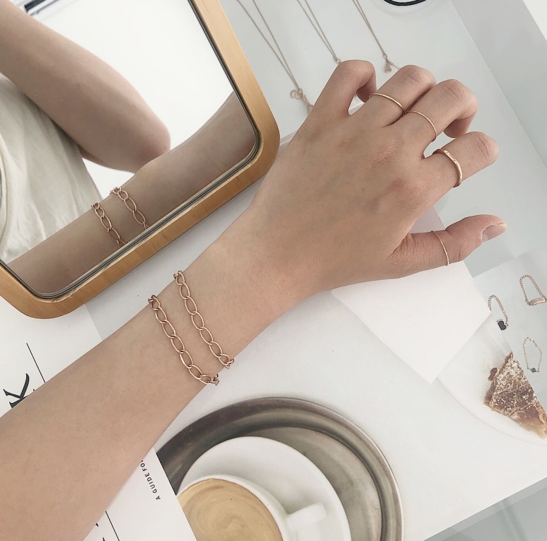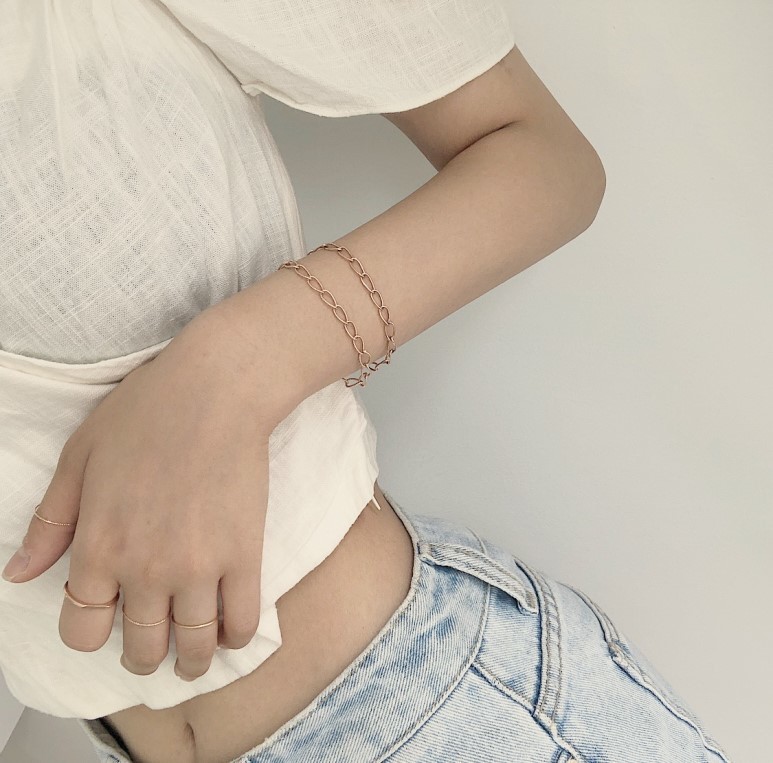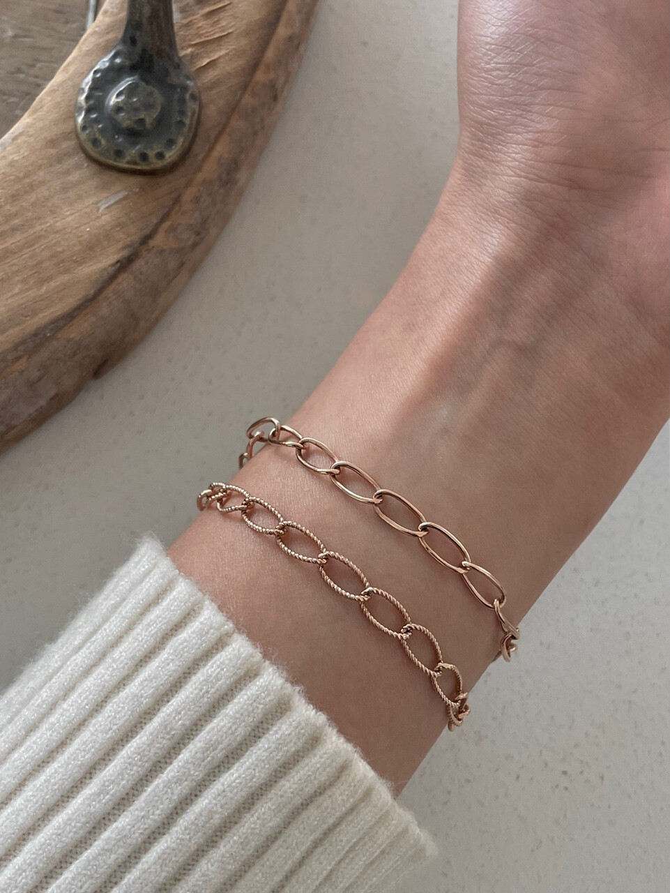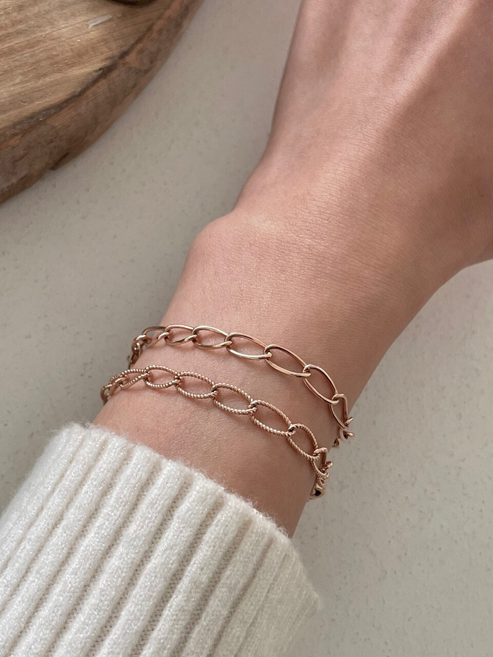 심플한 커브체인과 커브체인에 꽈배기 포인트를 준 팔찌 두개가