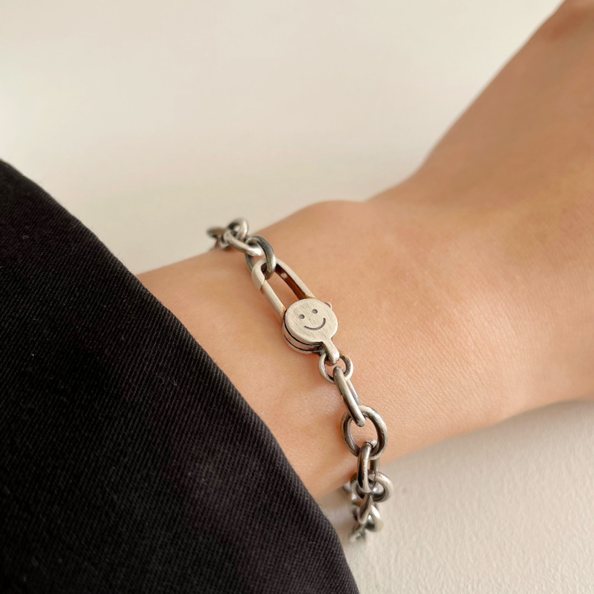 귀여운 스마일이 함께 있는 유화 체인 팔찌예요!
