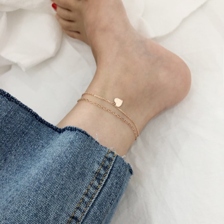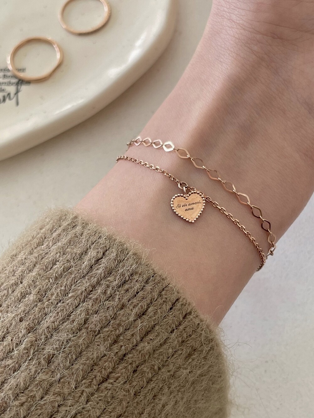 14K 18K 슬림 더블 아모르 이니셜 각인 발찌 팔찌