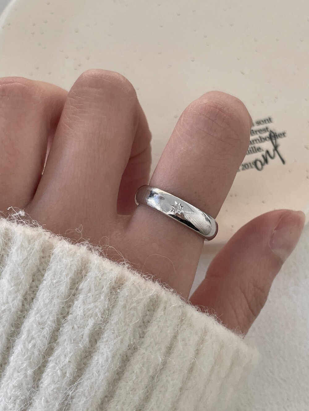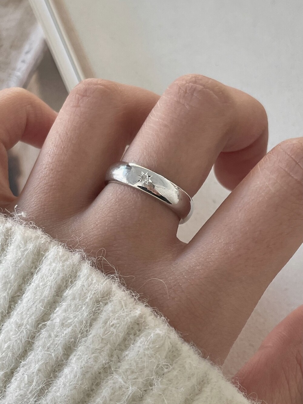실버 5mm 별조각 라운드링