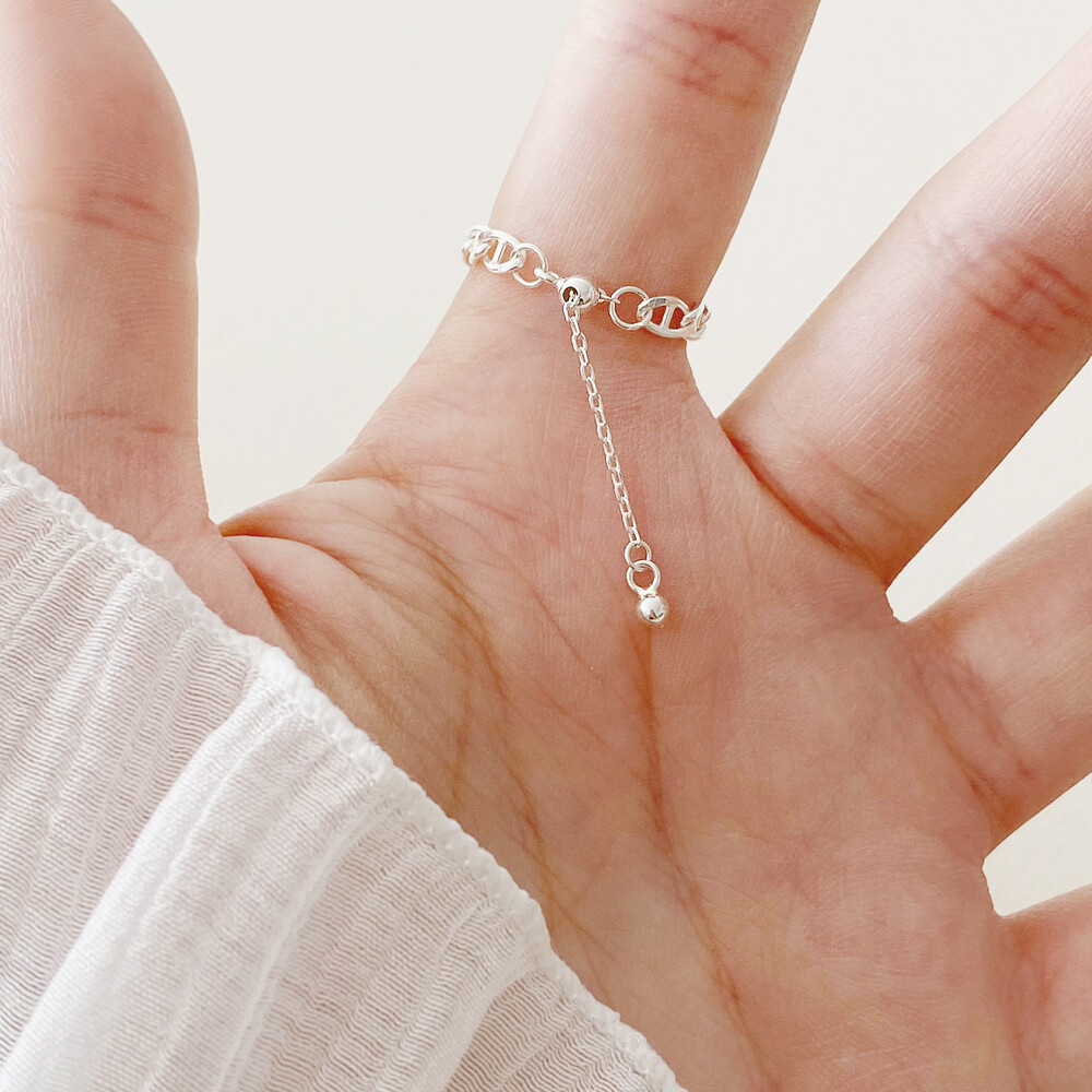 볼 장식을 당기면 쭉 ~ 늘어나서 사이즈 조절을 하며 착용 가능하답니다 :)