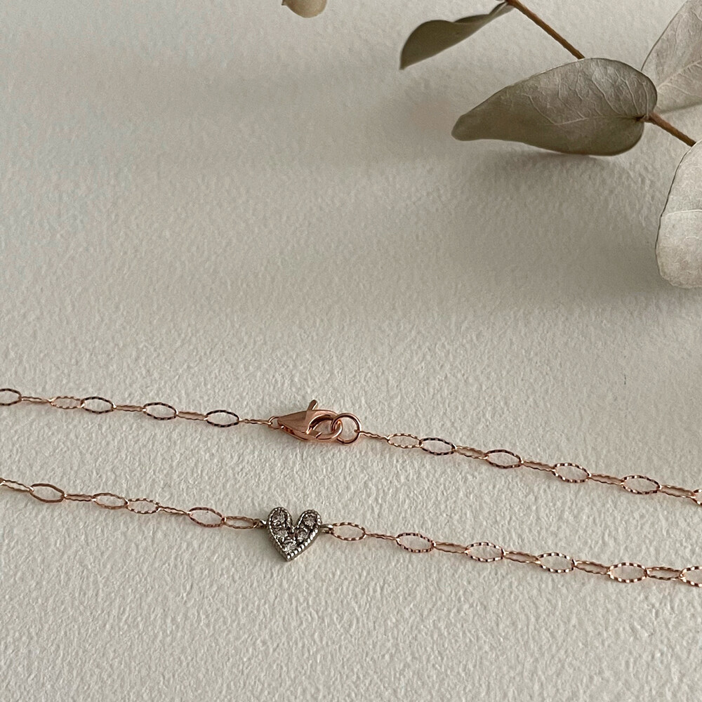 내추럴골드+핑크골드 옵션 선택시, 샘플 색상 처럼 하트는 내추럴, 체인은 핑크골드로 제작됩니다