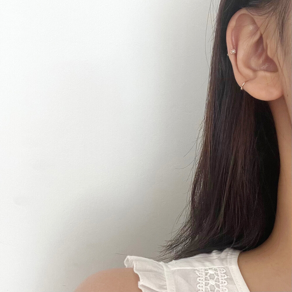 14K 18K 그레이 러프 다이아몬드 피어싱