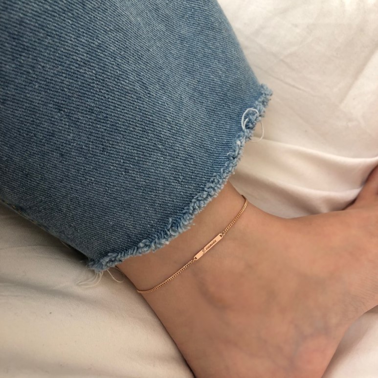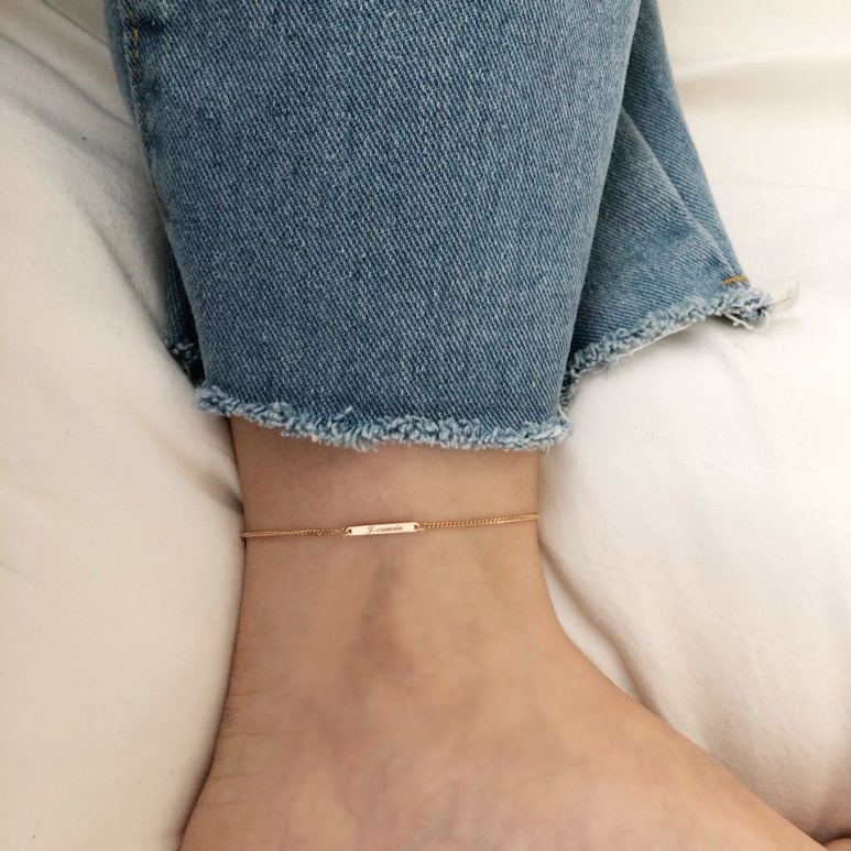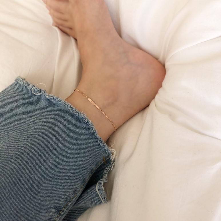 14K 18K 스틱 레터링 체인 팔찌 발찌