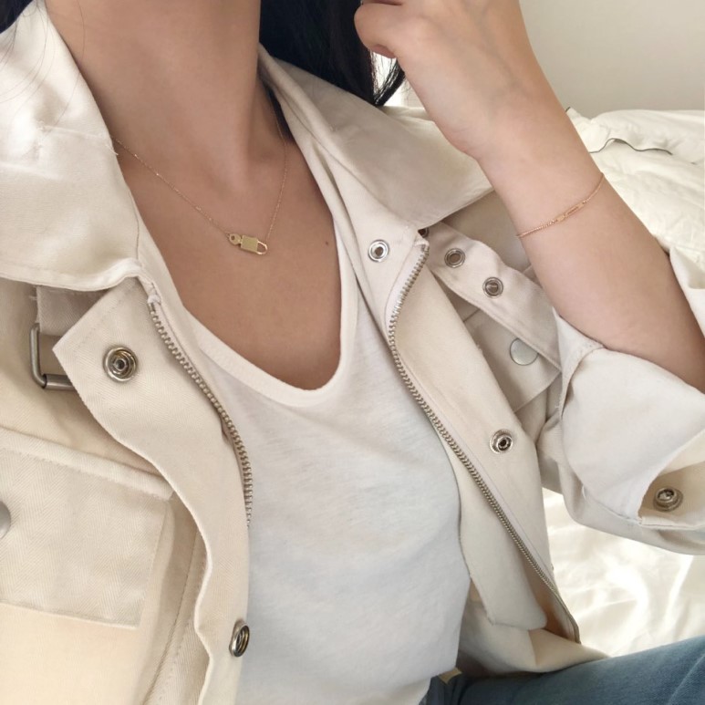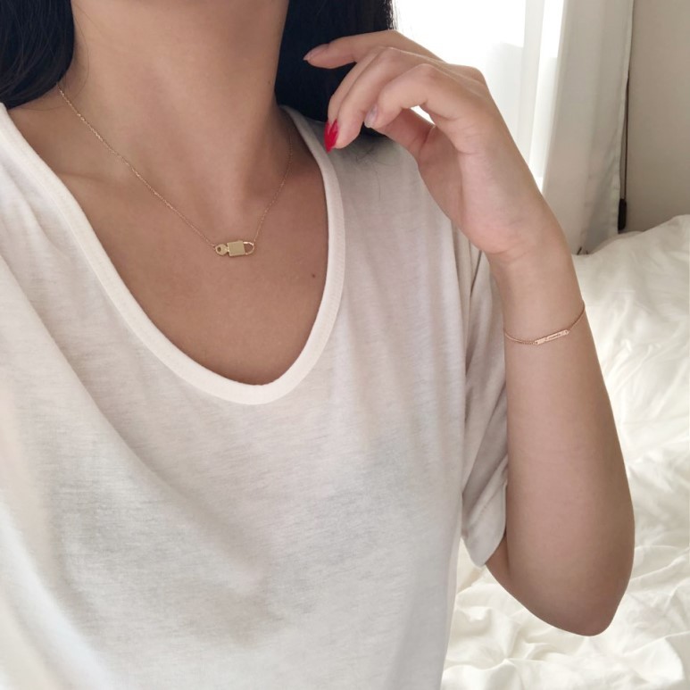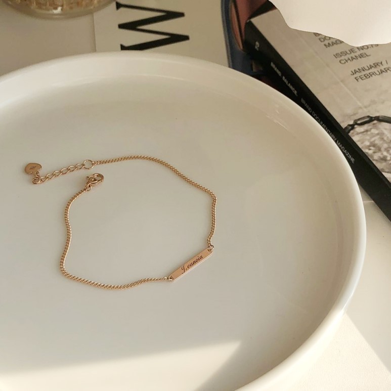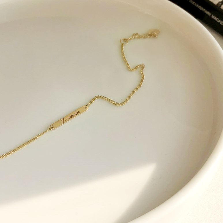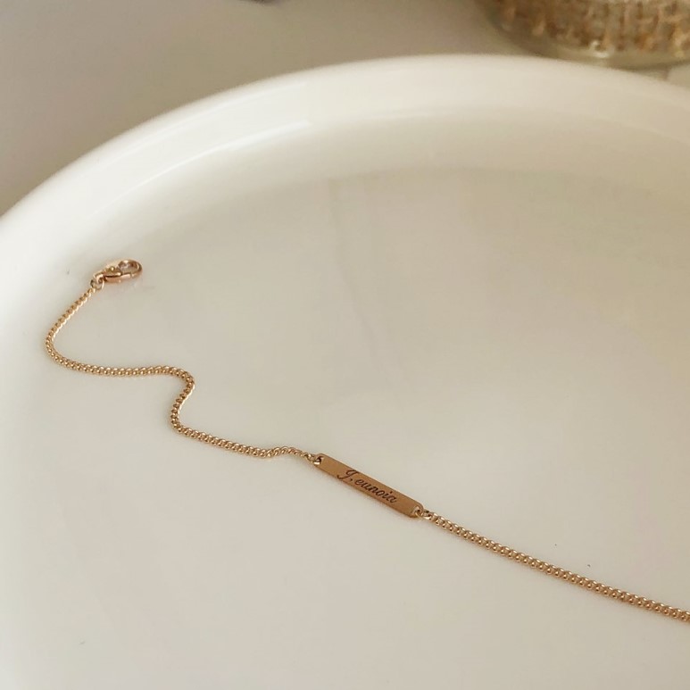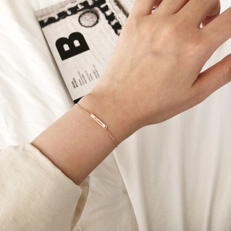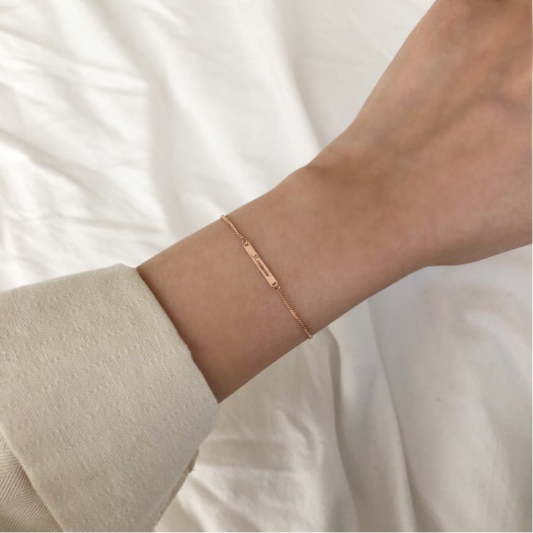 14K 18K 스틱 이니셜 각인 체인 팔찌