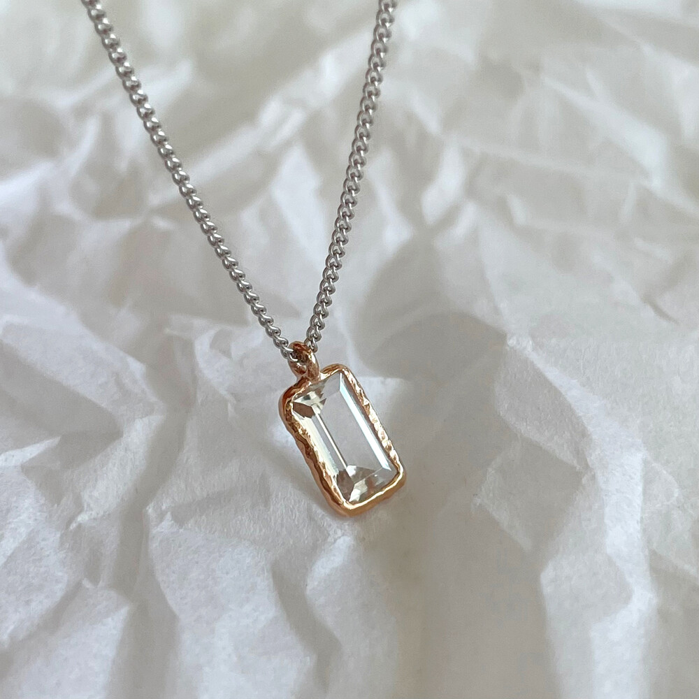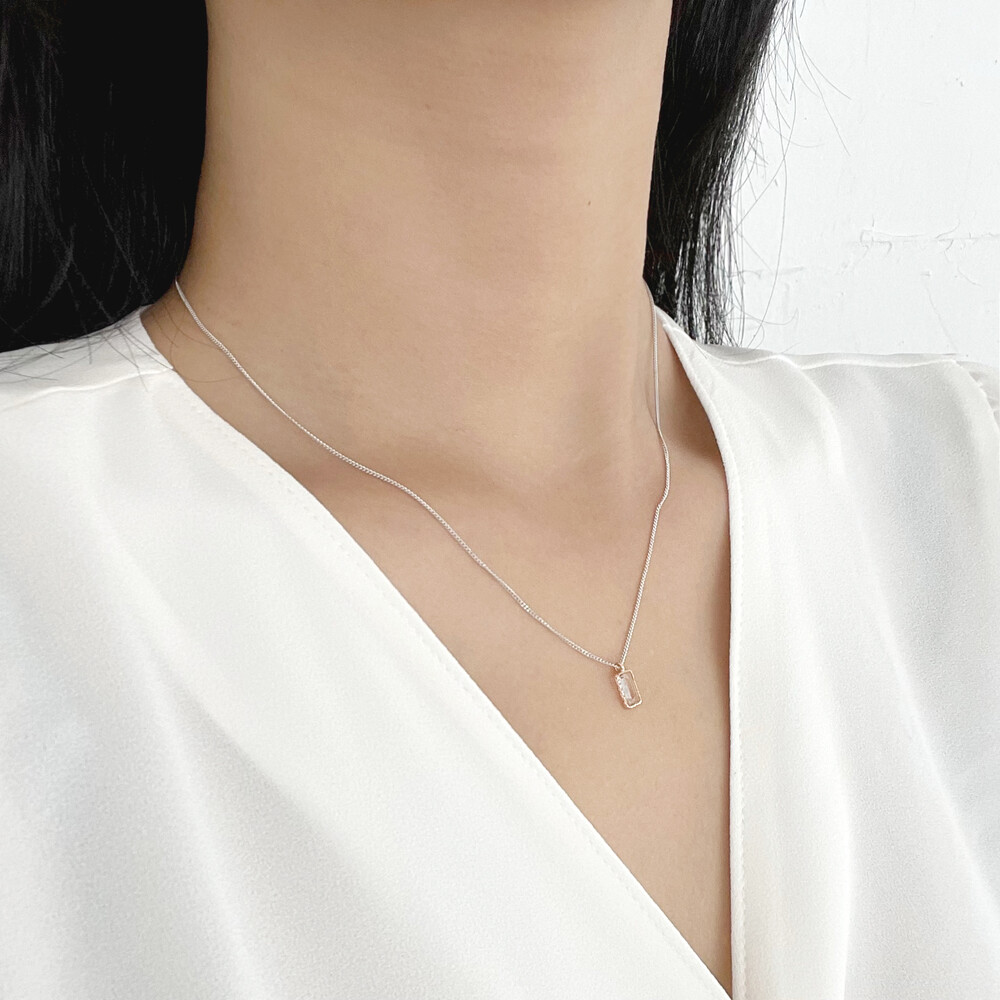 14K 18K 화이트토파즈 민줄 체인 목걸이