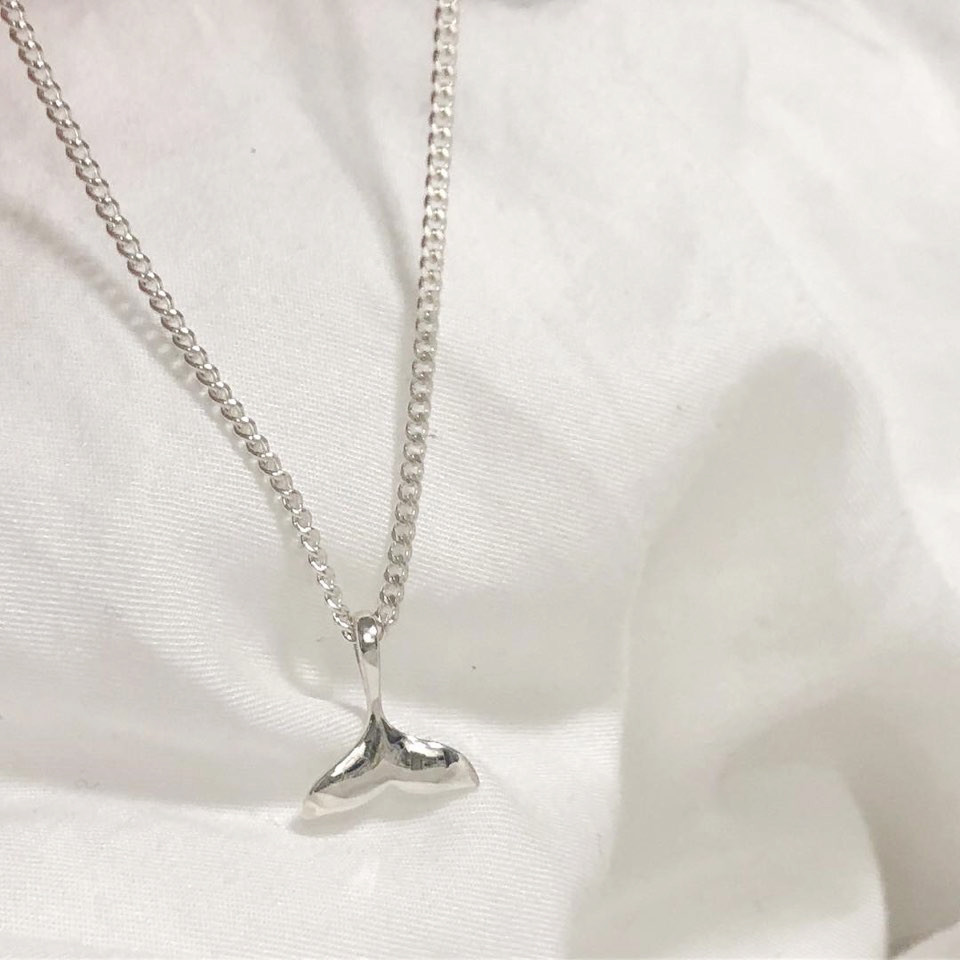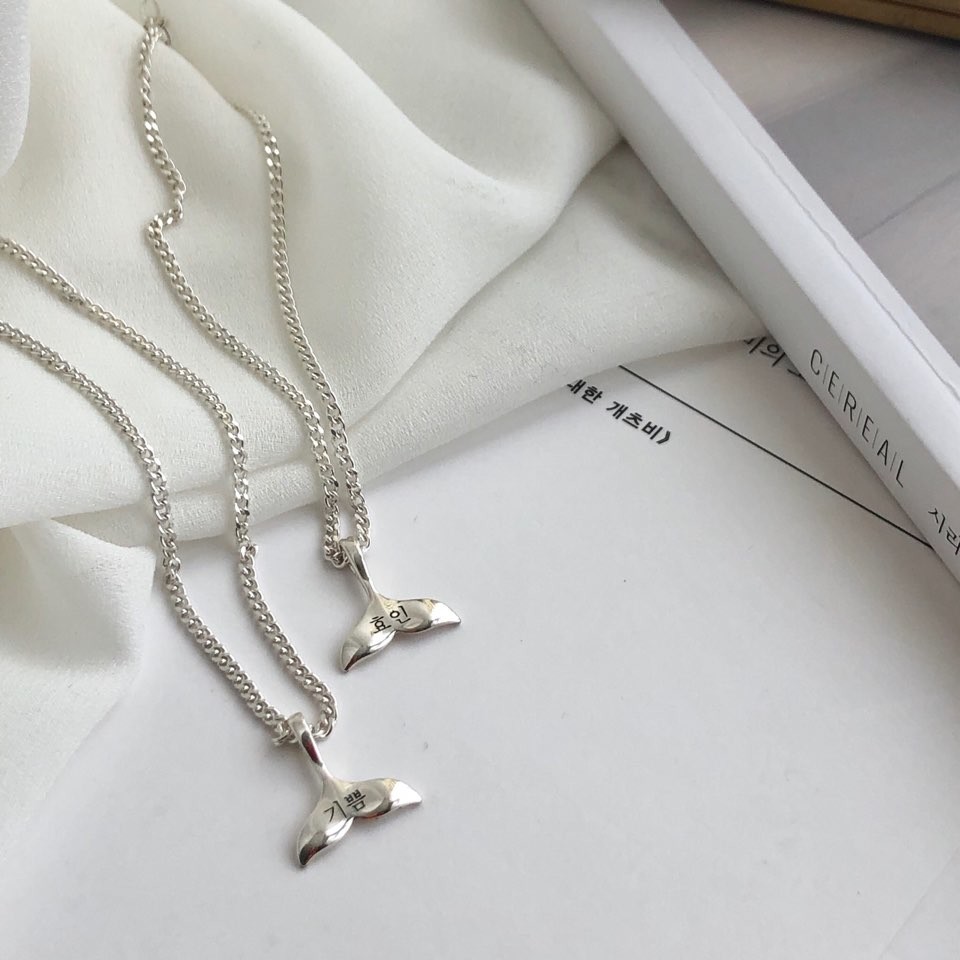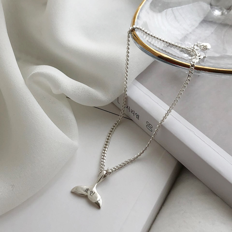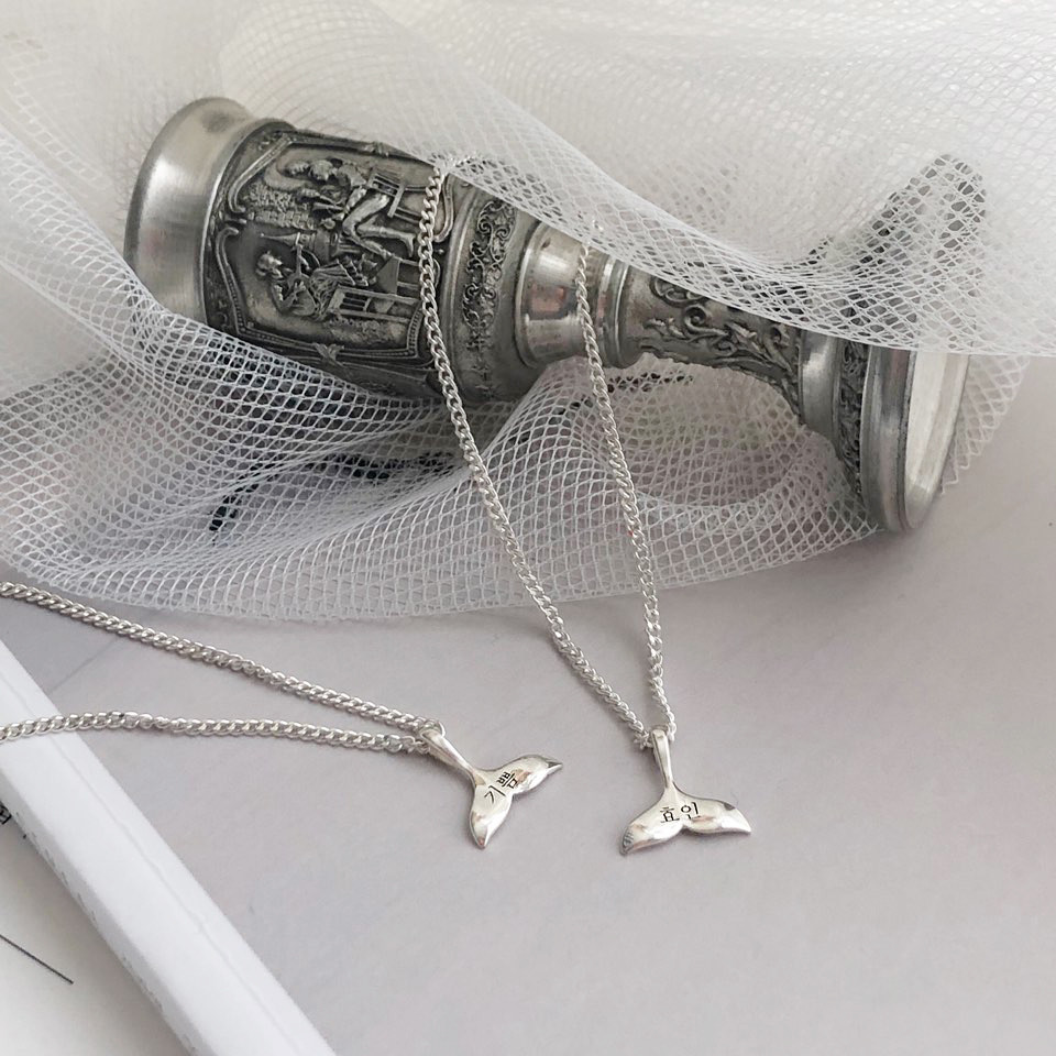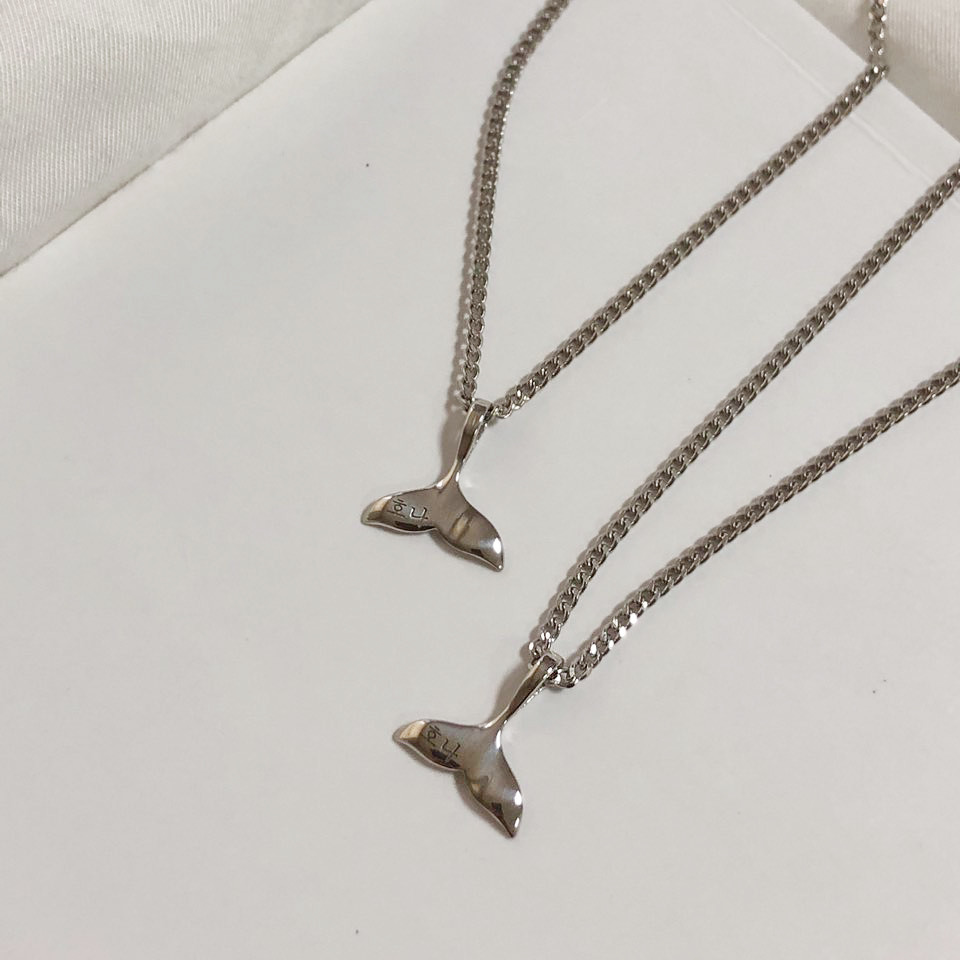 실버 고래 꼬리 목걸이 ( 커브체인 )