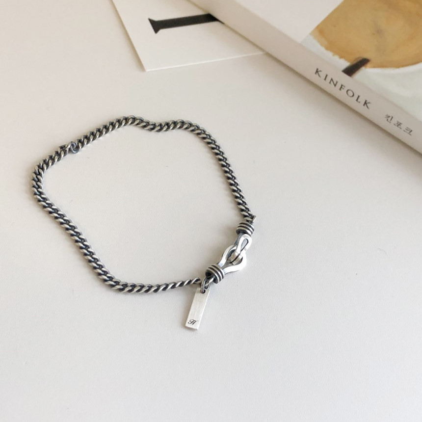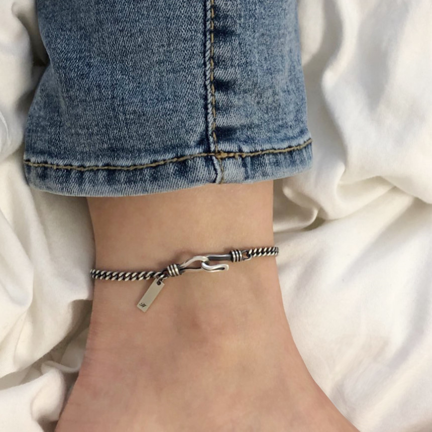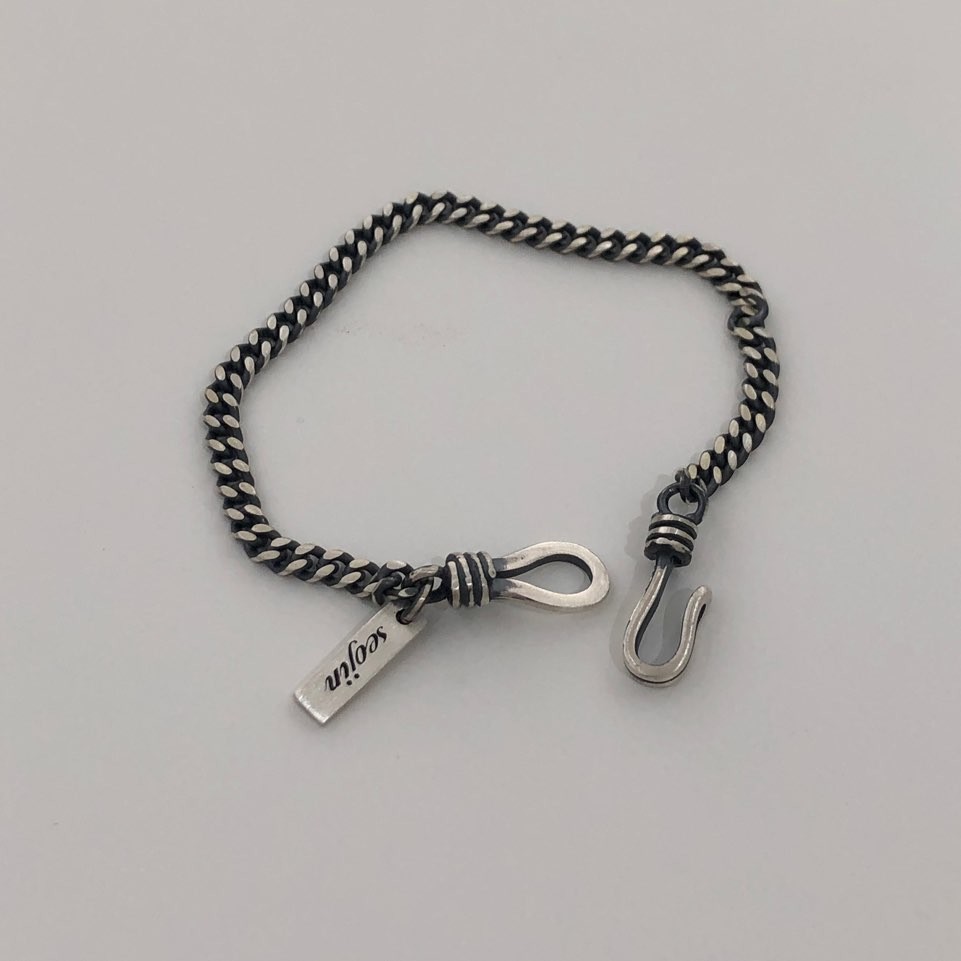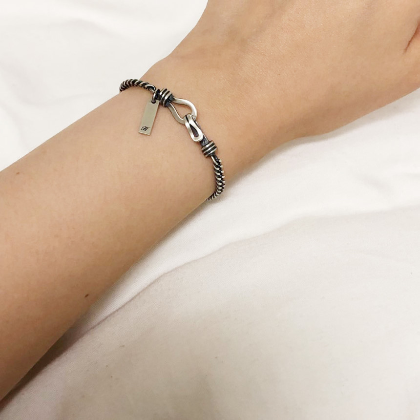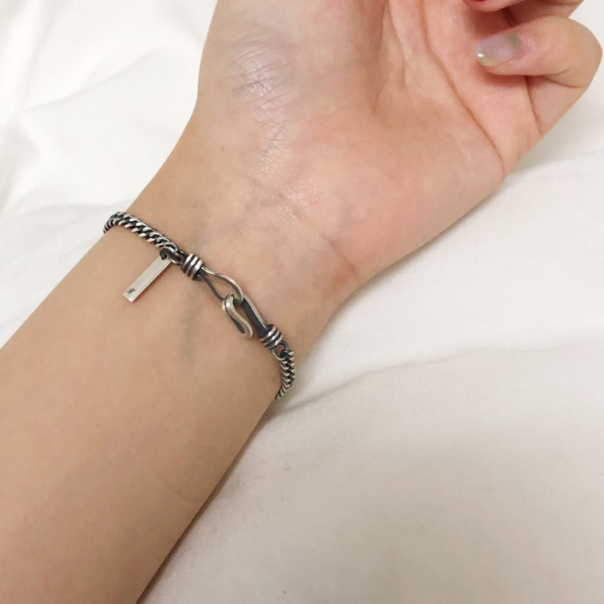 실버 고리형 유화 커브체인 이니셜 각인 발찌 팔찌
