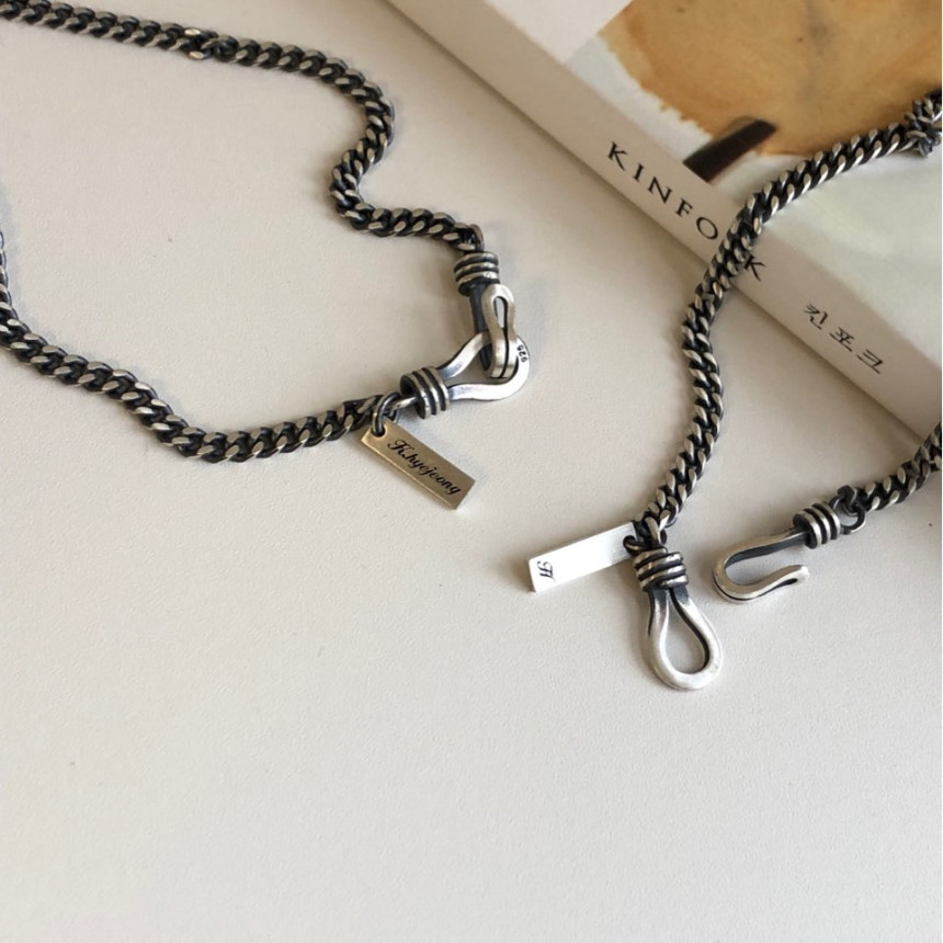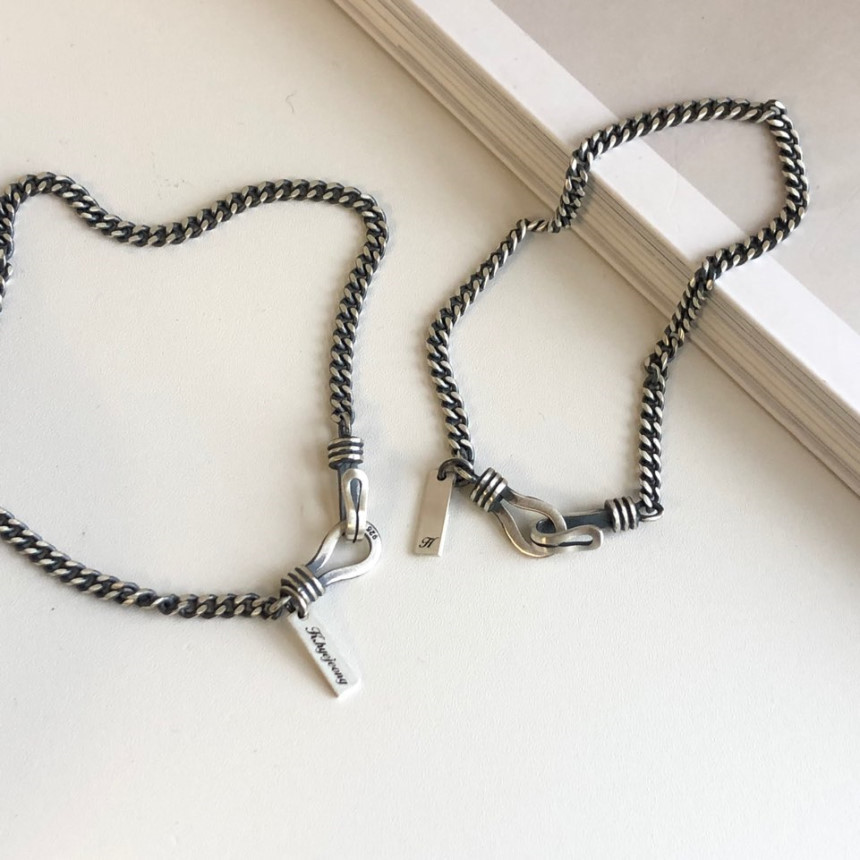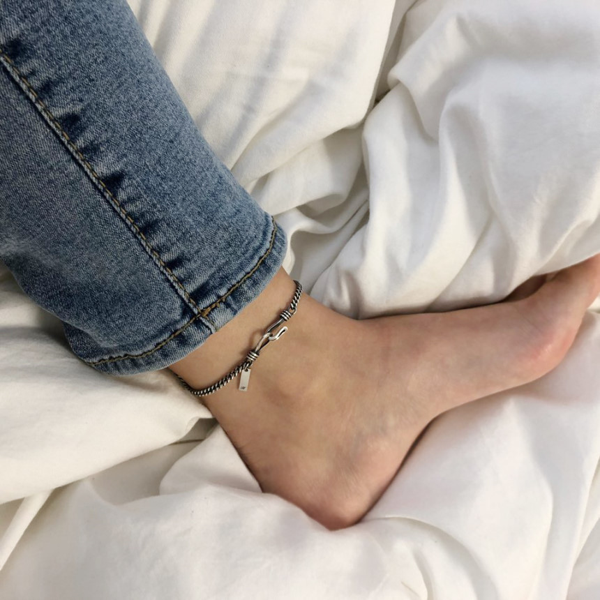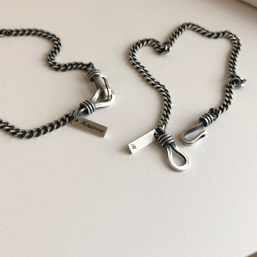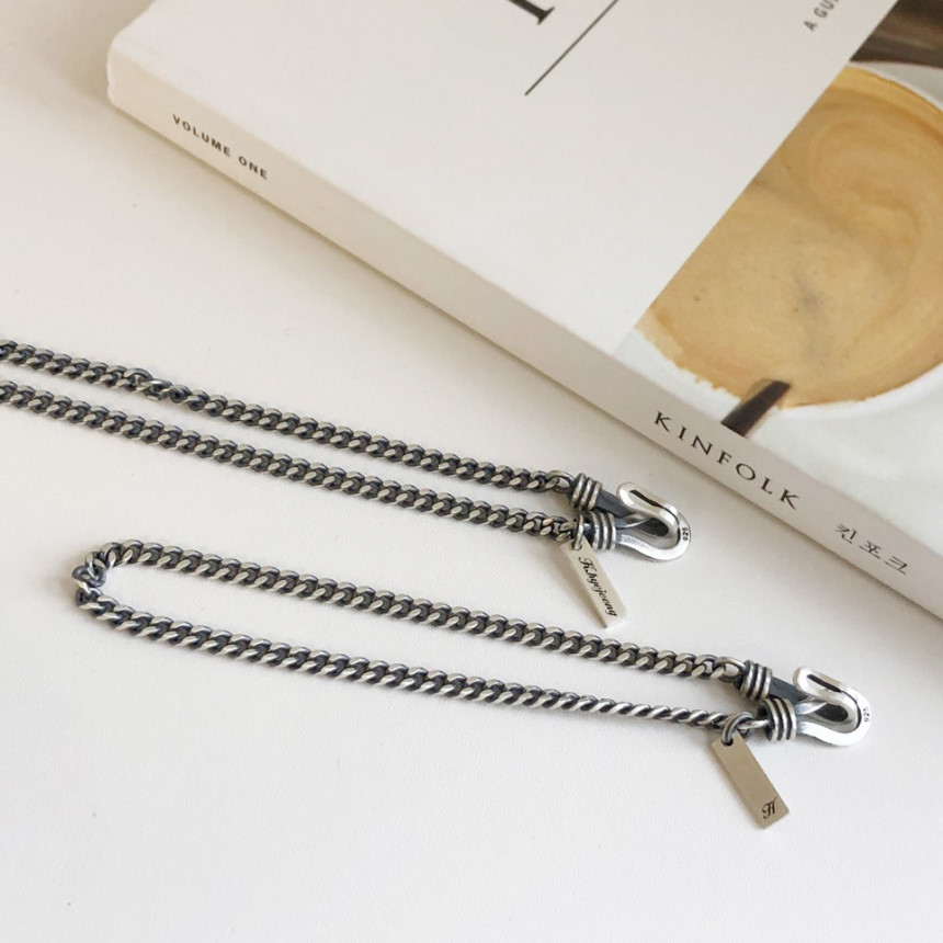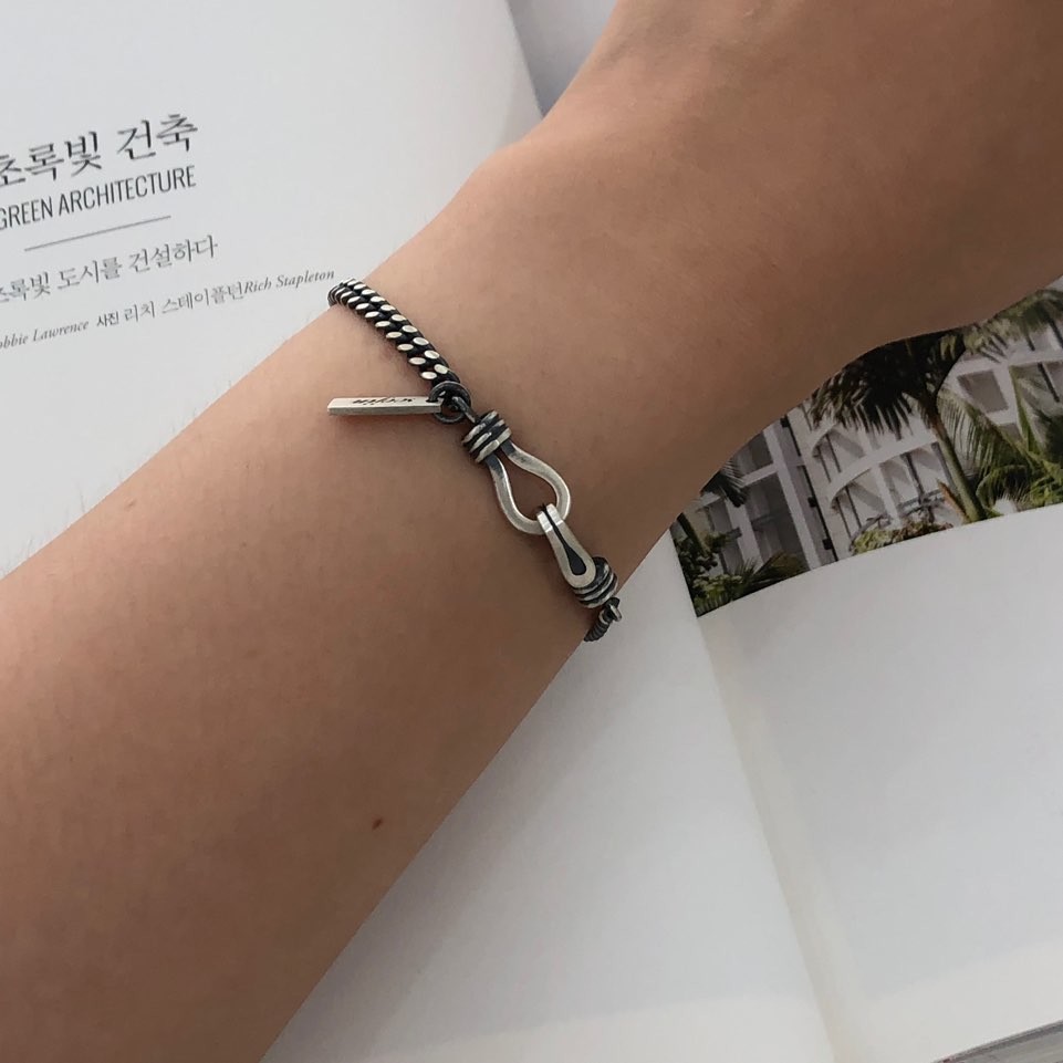 실버 고리형 유화 커브체인 이니셜 각인 발찌 팔찌